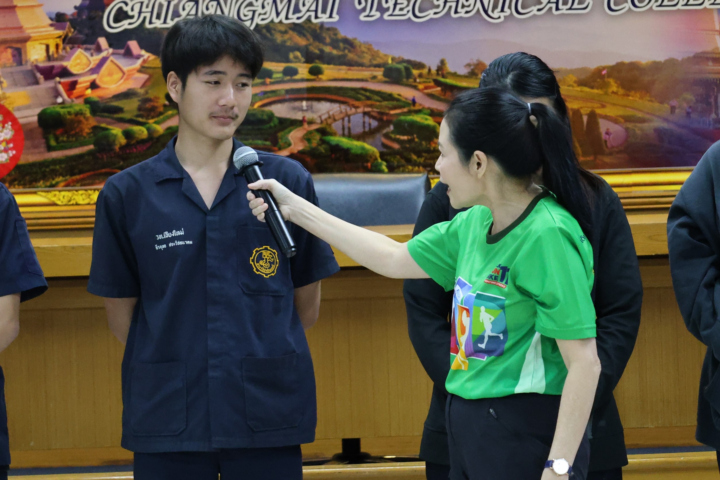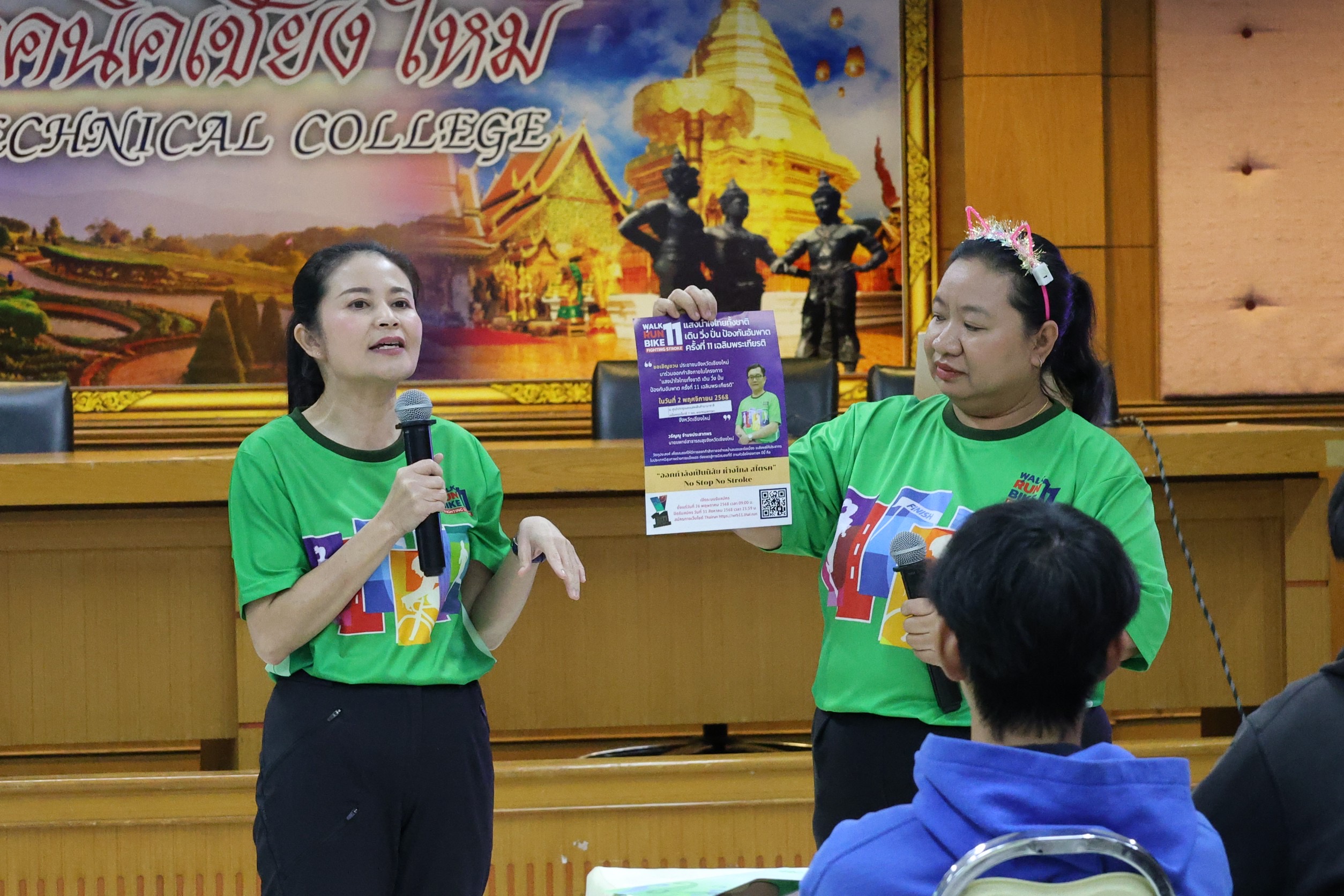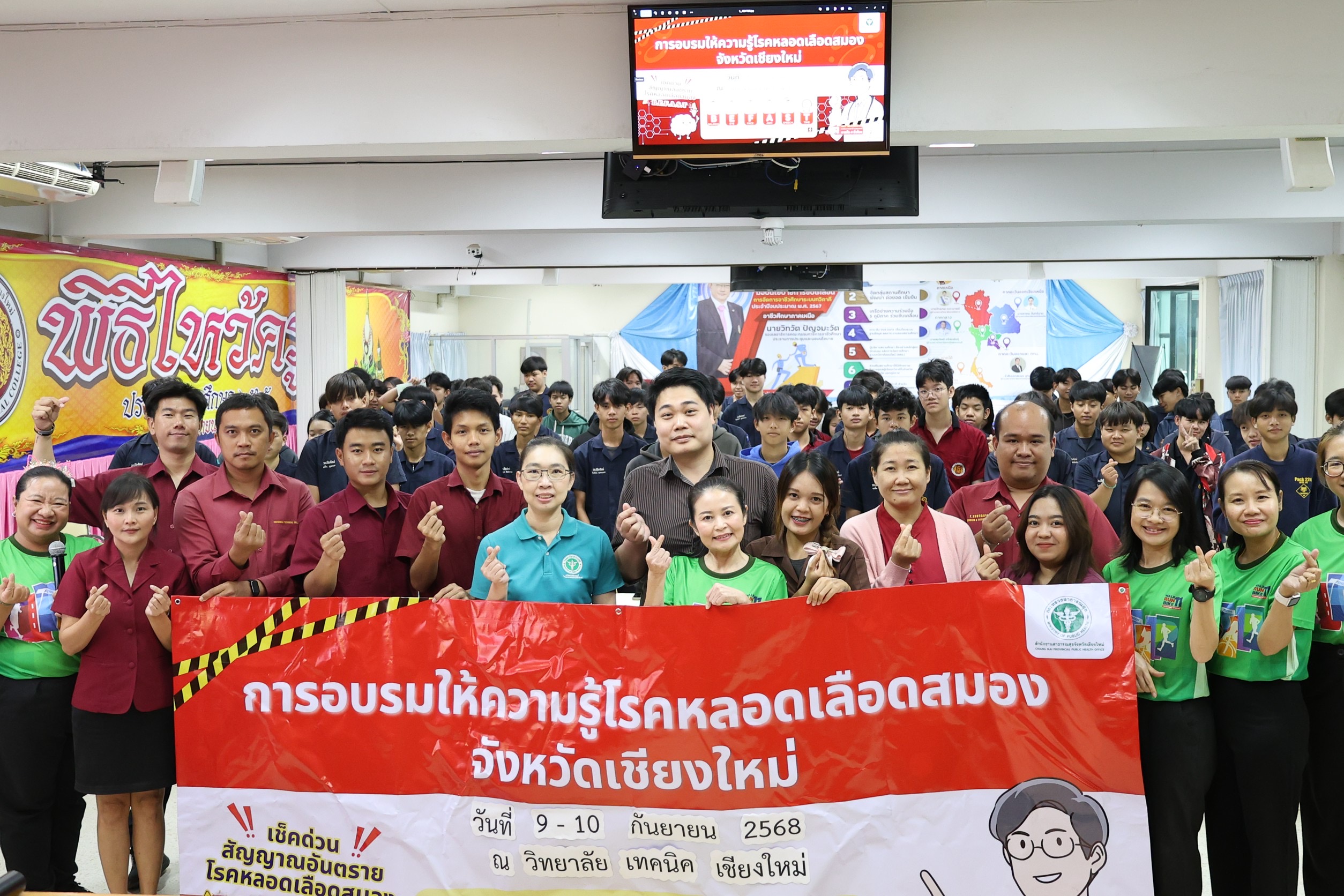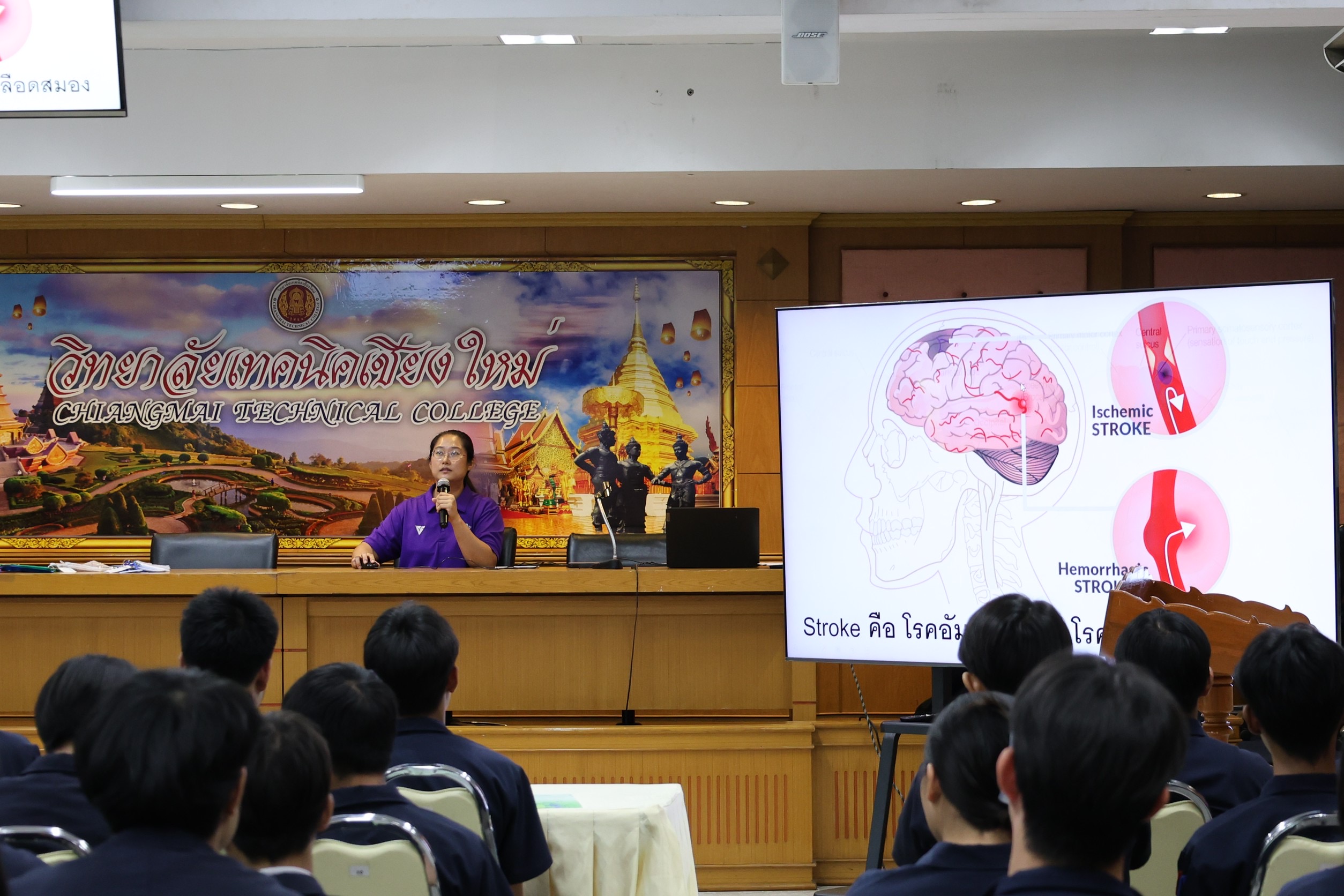 ดร.วัชรพงศ์ ฝั้นติ๊บ ผู้อำนวยการวิทยาลัยเทคนิคเชียงใหม่ ปฏิบัติหน้าที่ผู้อำนวยการสำนักงานอาชีวศึกษาจังหวัดเชียงใหม่ และรักษาการในตำแหน่งที่ปรึกษาด้านนโยบายและแผน สำนักงานคณะกรรมการการอาชีวศึกษา มอบหมายให้นางศศิกาญจน์ เรือนศาสตร์ รองผู้อำนวยการฝ่ายพัฒนากิจการนักเรียน นักศึกษา พร้อมด้วยนายอุกฤษฎ์ สิงห์แก้ว หัวหน้างานสวัสดิการนักเรียน นักศึกษา นำนักเรียน นักศึกษา เข้ารับการอบรมให้ความรู้เกี่ยวกับโรคหลอดเลือดสมอง ภายใต้โครงการ “แสงนำใจไทยทั้งชาติ เดิน วิ่ง ปั่น ป้องกันอัมพาต ครั้งที่ 11 เฉลิมพระเกียรติ” ในหัวข้อ “ออกกำลังเป็นนิสัย ห่างไกลสโตรค (No Stop No STROKE)” ณ ห้องประชุมสุทธาธรรม วิทยาลัยเทคนิคเชียงใหม่