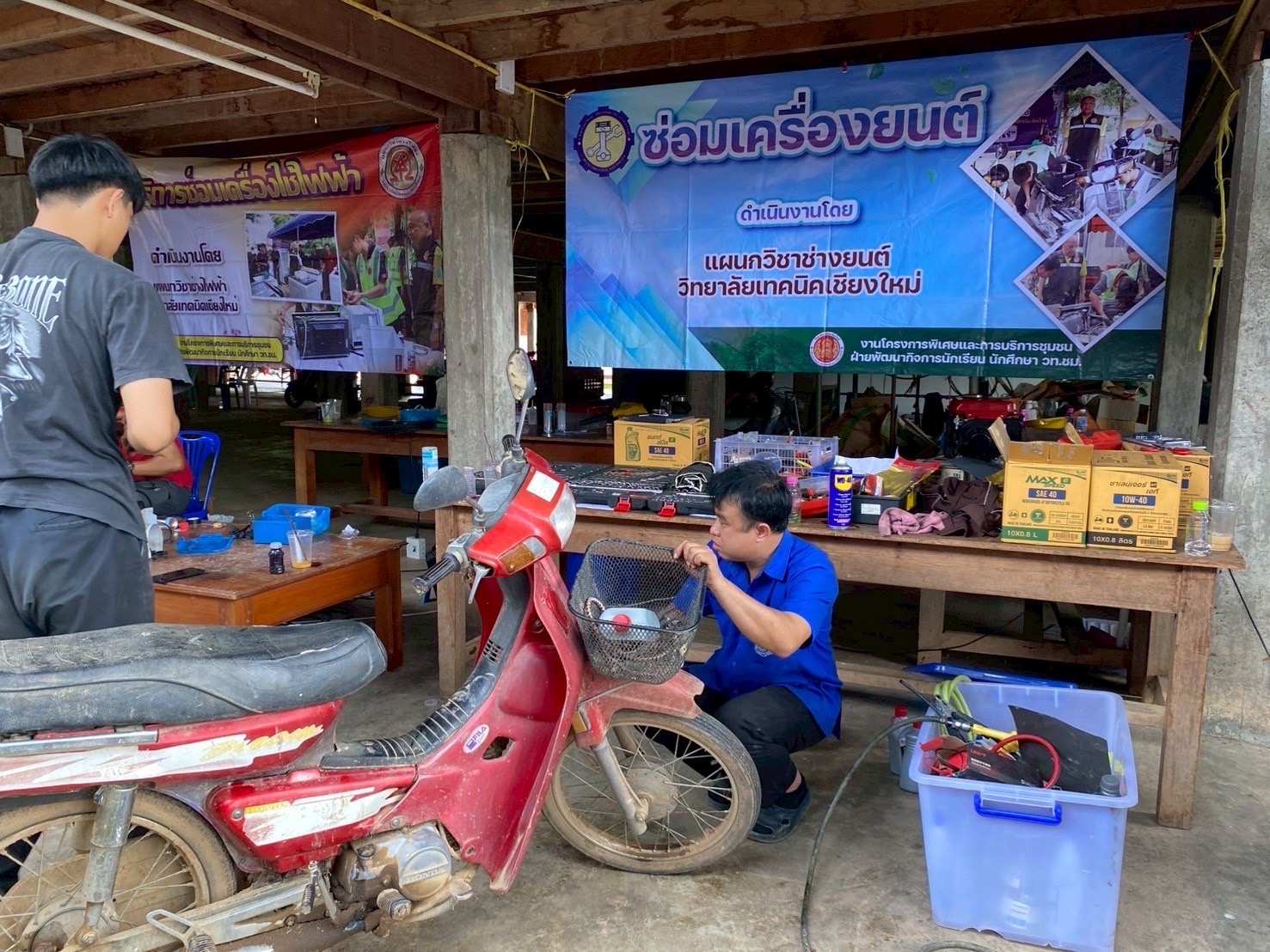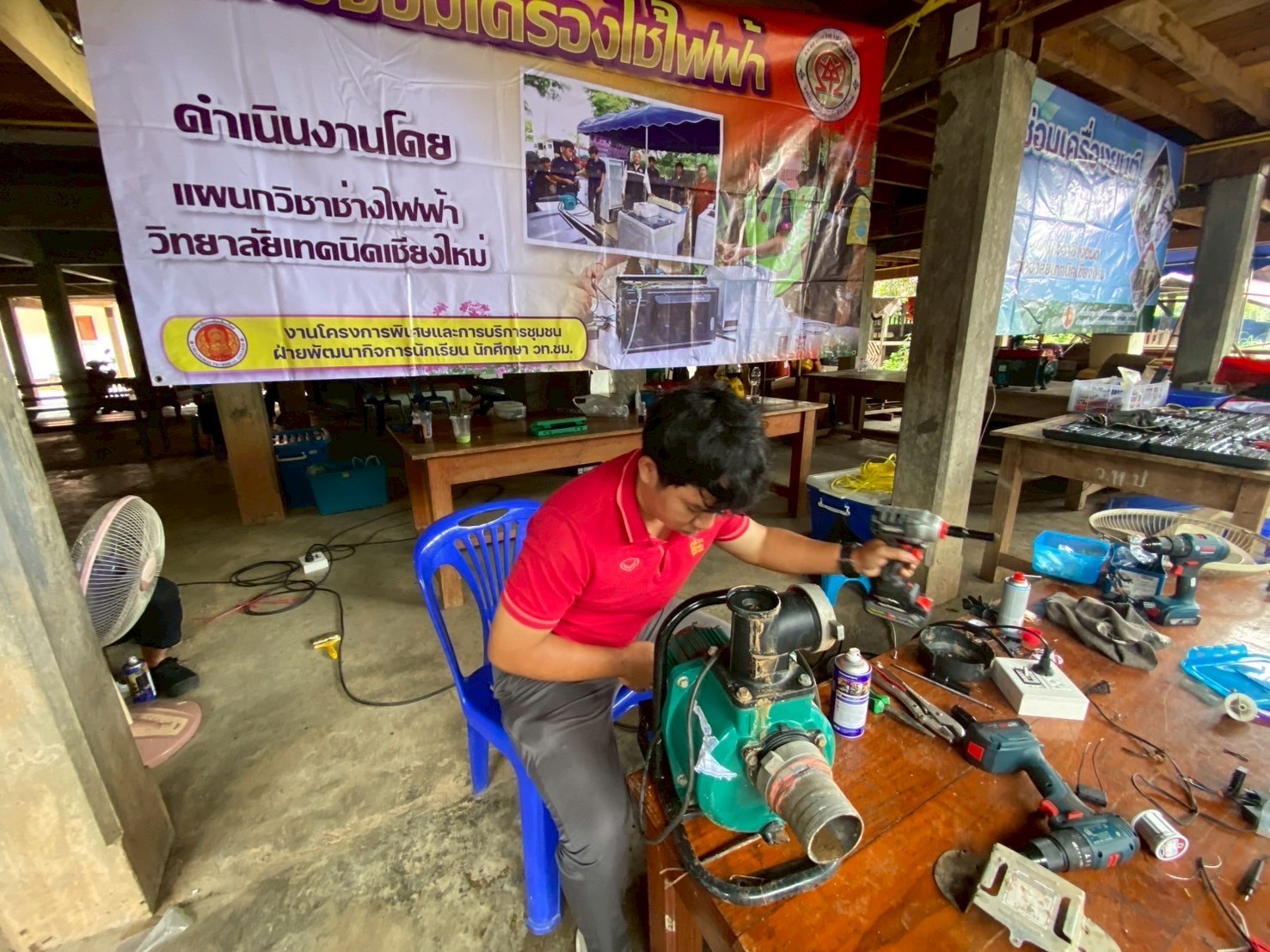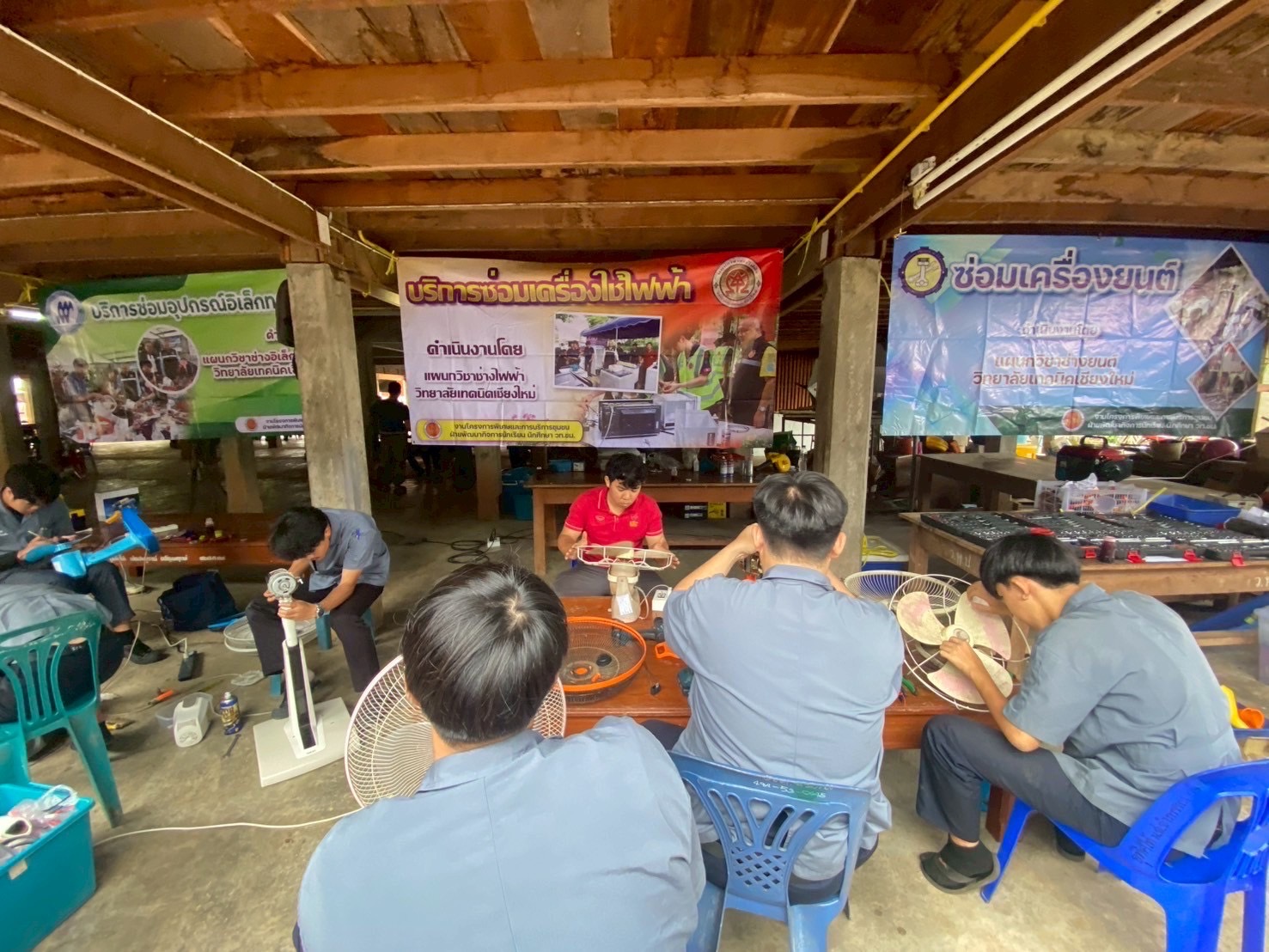 ดร.วัชรพงศ์ ฝั้นติ๊บ ผู้อำนวยการวิทยาลัยเทคนิคเชียงใหม่ ปฏิบัติหน้าที่ผู้อำนวยการสำนักงานอาชีวศึกษาจังหวัดเชียงใหม่ และรักษาการในตำแหน่งที่ปรึกษาด้านนโยบายและแผน สำนักงานคณะกรรมการการอาชีวศึกษา มอบหมาย นายธกฤต ยอดสอน หัวหน้างานโครงการพิเศษและการบริการชุมชน คณะครู และนักเรียน นักศึกษา แผนกวิชาช่างยนต์ แผนกวิชาช่างไฟฟ้า และแผนกวิชาช่างอิเล็กทรอนิกส์ จัดตั้งศูนย์อาชีวะช่วยประชาชน (Fix It Center) เพื่อช่วยเหลือผู้ประสบอุทกภัย ณ วัดห้วยโป่ง ตำบลห้วยโป่ง อำเภอเมือง จังหวัดแม่ฮ่องสอน ซึ่งดำเนินงานโดยคณะผู้บริหาร คณะครู คณะดำเนินงานโครงการพิเศษและการบริการชุมชน และนักเรียน นักศึกษา วิทยาลัยเทคนิคเชียงใหม่