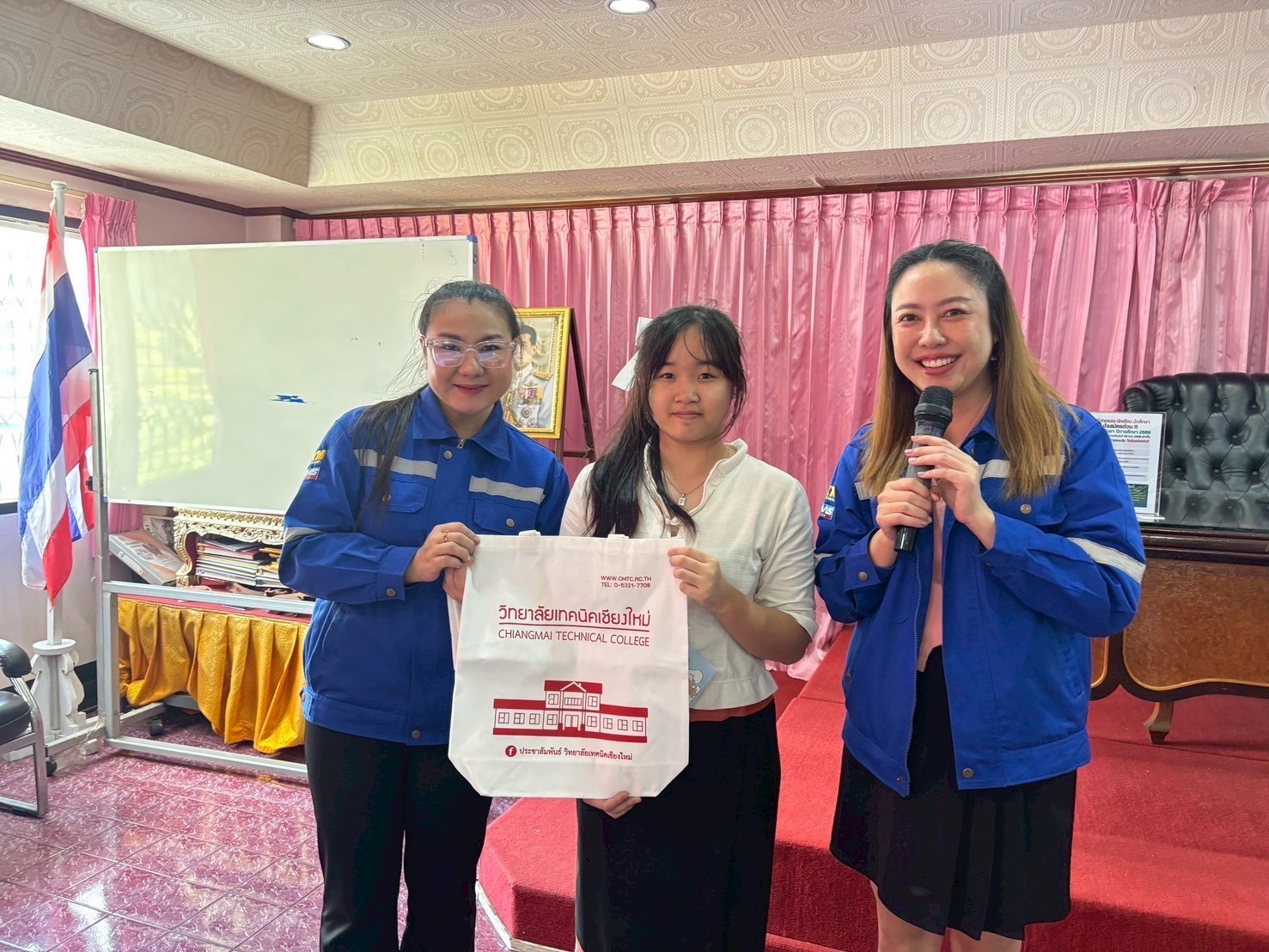 ดร.วัชรพงศ์ ฝั้นติ๊บ ผู้อำนวยการวิทยาลัยเทคนิคเชียงใหม่ ปฏิบัติหน้าที่ผู้อำนวยการสำนักงานอาชีวศึกษาจังหวัดเชียงใหม่ และรักษาการในตำแหน่งที่ปรึกษาด้านนโยบายและแผน สำนักงานคณะกรรมการการอาชีวศึกษา มอบหมายให้ นางสาวปรียานุช คำเย็น และ นางสาวฐิติพร ประกิจ ครูแผนกวิชาช่างเชื่อมโลหะ เข้าแนะแนวการศึกษาต่อนักเรียนชั้นมัธยมศึกษาปีที่ 3 เพื่อแนะนำ และเตรียมความพร้อมในการเป็นนักเรียนสายอาชีพ