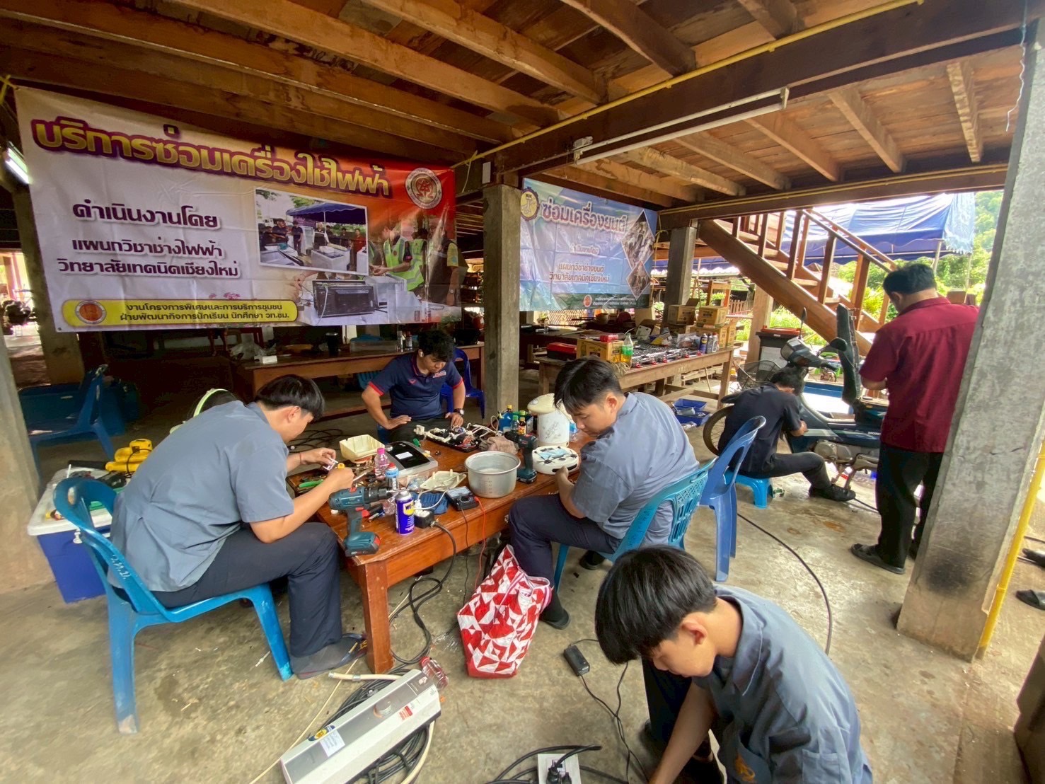 ดร.วัชรพงศ์ ฝั้นติ๊บ ผู้อำนวยการวิทยาลัยเทคนิคเชียงใหม่ ปฏิบัติหน้าที่ผู้อำนวยการสำนักงานอาชีวศึกษาจังหวัดเชียงใหม่ และรักษาการในตำแหน่งที่ปรึกษาด้านนโยบายและแผน สำนักงานคณะกรรมการการอาชีวศึกษา มอบหมาย นายธกฤต ยอดสอน หัวหน้างานโครงการพิเศษและการบริการชุมชน คณะครู และนักเรียน นักศึกษา แผนกวิชาช่างยนต์ แผนกวิชาช่างไฟฟ้า และแผนกวิชาช่างอิเล็กทรอนิกส์ จัดตั้งศูนย์อาชีวะช่วยประชาชน (Fix It Center) เพื่อช่วยเหลือผู้ประสบอุทกภัย ณ วัดห้วยโป่ง ตำบลห้วยโป่ง อำเภอเมือง จังหวัดแม่ฮ่องสอน ซึ่งดำเนินงานโดยคณะผู้บริหาร คณะครู คณะดำเนินงานโครงการพิเศษและการบริการชุมชน และนักเรียน นักศึกษา วิทยาลัยเทคนิคเชียงใหม่