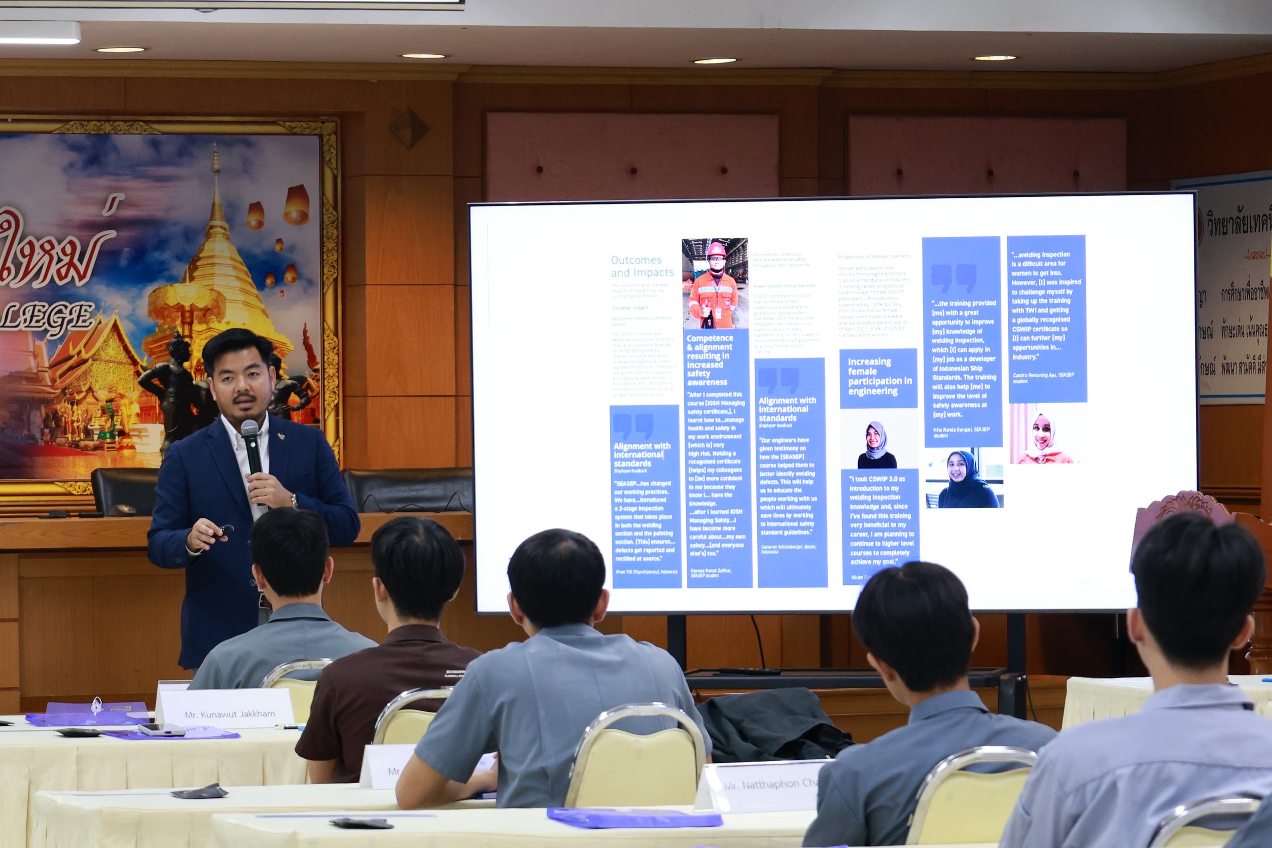 เนื่องในโอกาสเข้าจัดโครงการอบรมและทดสอบตามมาตรฐานสากล “CSWIP 3.0 Visual Welding Inspector” (รุ่นที่ 1-2) ให้กับคณะครู และนักเรียน นักศึกษาแผนกวิชาช่างเชื่อมโลหะ โดยจัดอบรมระหว่างวันที่ 15 – 19 กันยายน 2568 ณ ห้องประชุมสุทธาธรรม วิทยาลัยเทคนิคเชียงใหม่