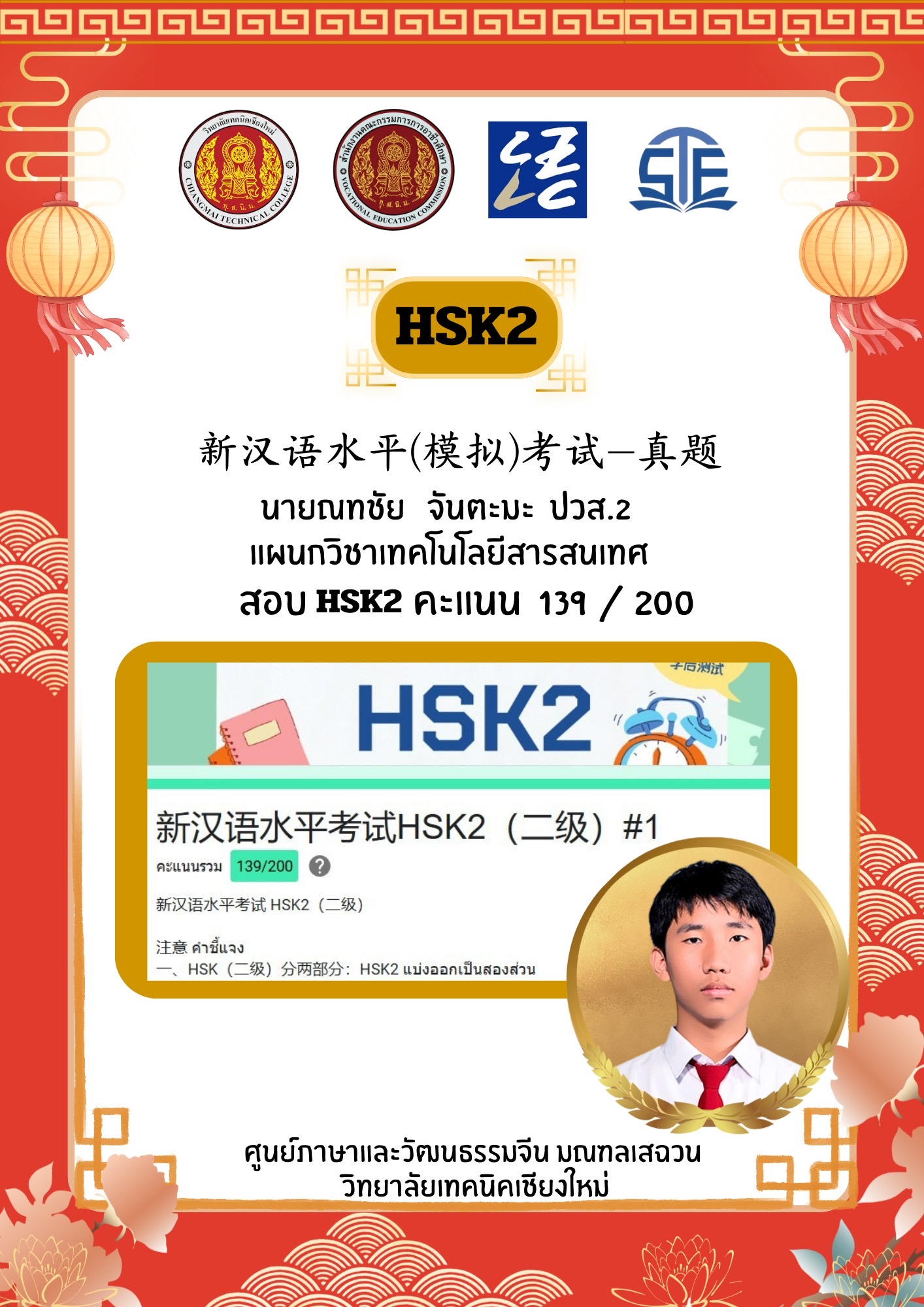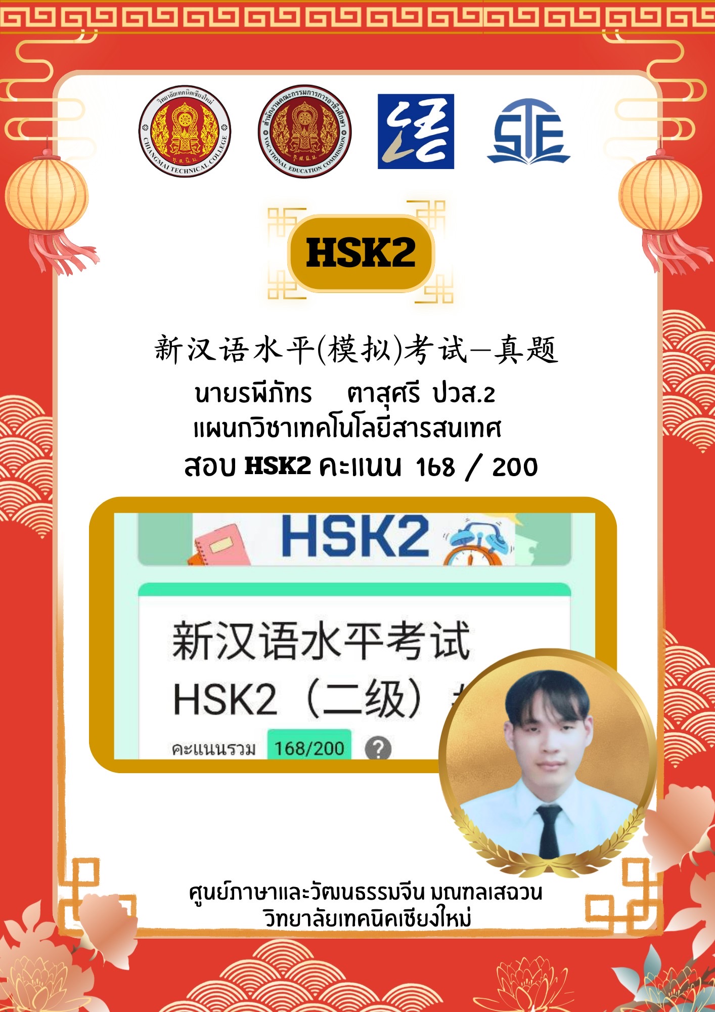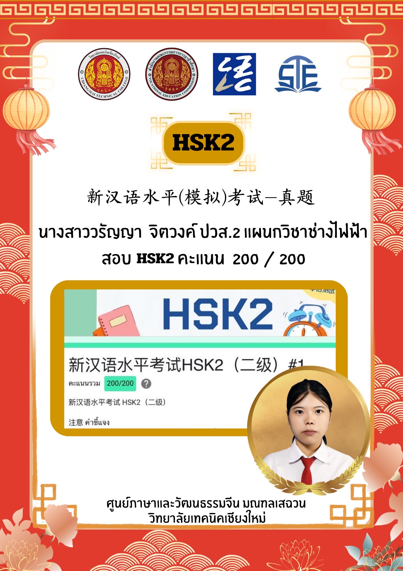 และรักษาการในตำแหน่งที่ปรึกษาด้านนโยบายและแผน สำนักงานคณะกรรมการการอาชีวศึกษา ได้มอบหมายให้งานศูนย์ภาษาและวัฒนธรรมจีนมณฑลเสฉวน วิทยาลัยเทคนิคเชียงใหม่ โดยนายอดิเรก นวลศรี หัวหน้างานศูนย์ภาษาและวัฒนธรรมจีนฯ นำนักศึกษาโครงการความร่วมมือจัดการศึกษาระบบทวิวุฒิ 2+1 เข้าร่วมกิจกรรมโครงการพิชิตข้อสอบ HSK 2025 ผ่านสื่ออิเล็คทรอนิกส์