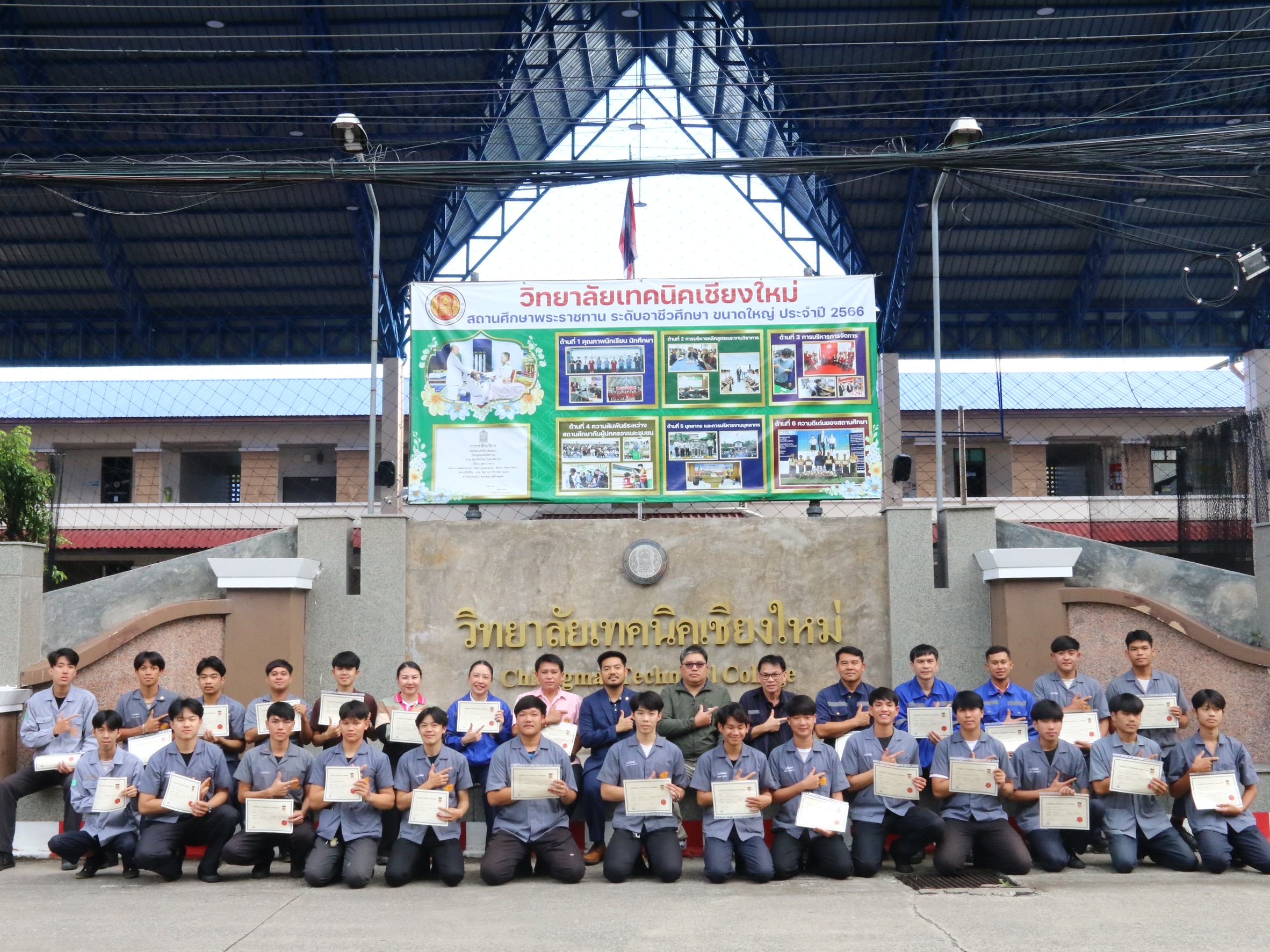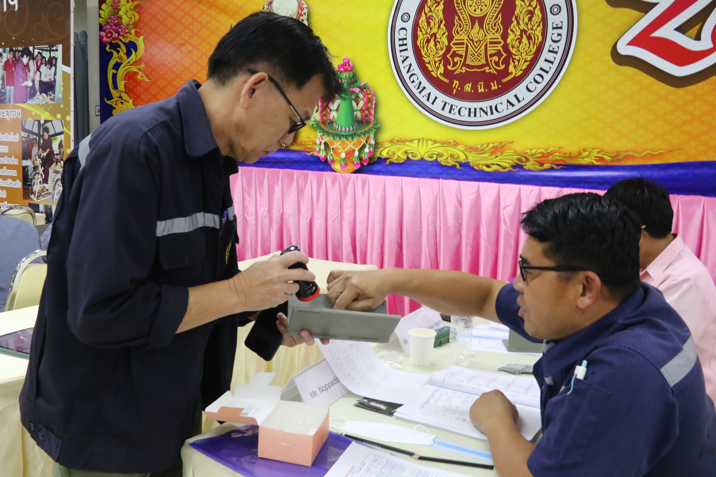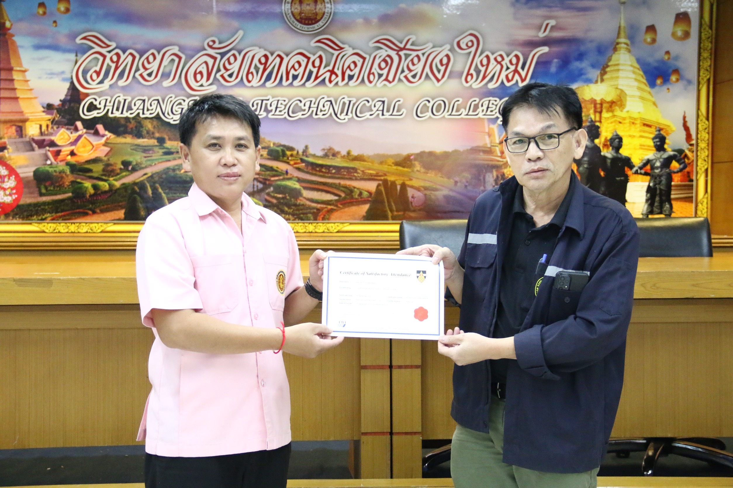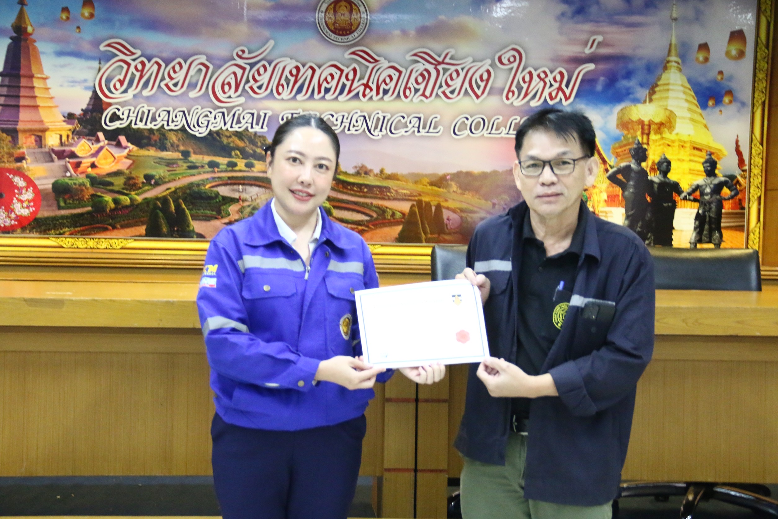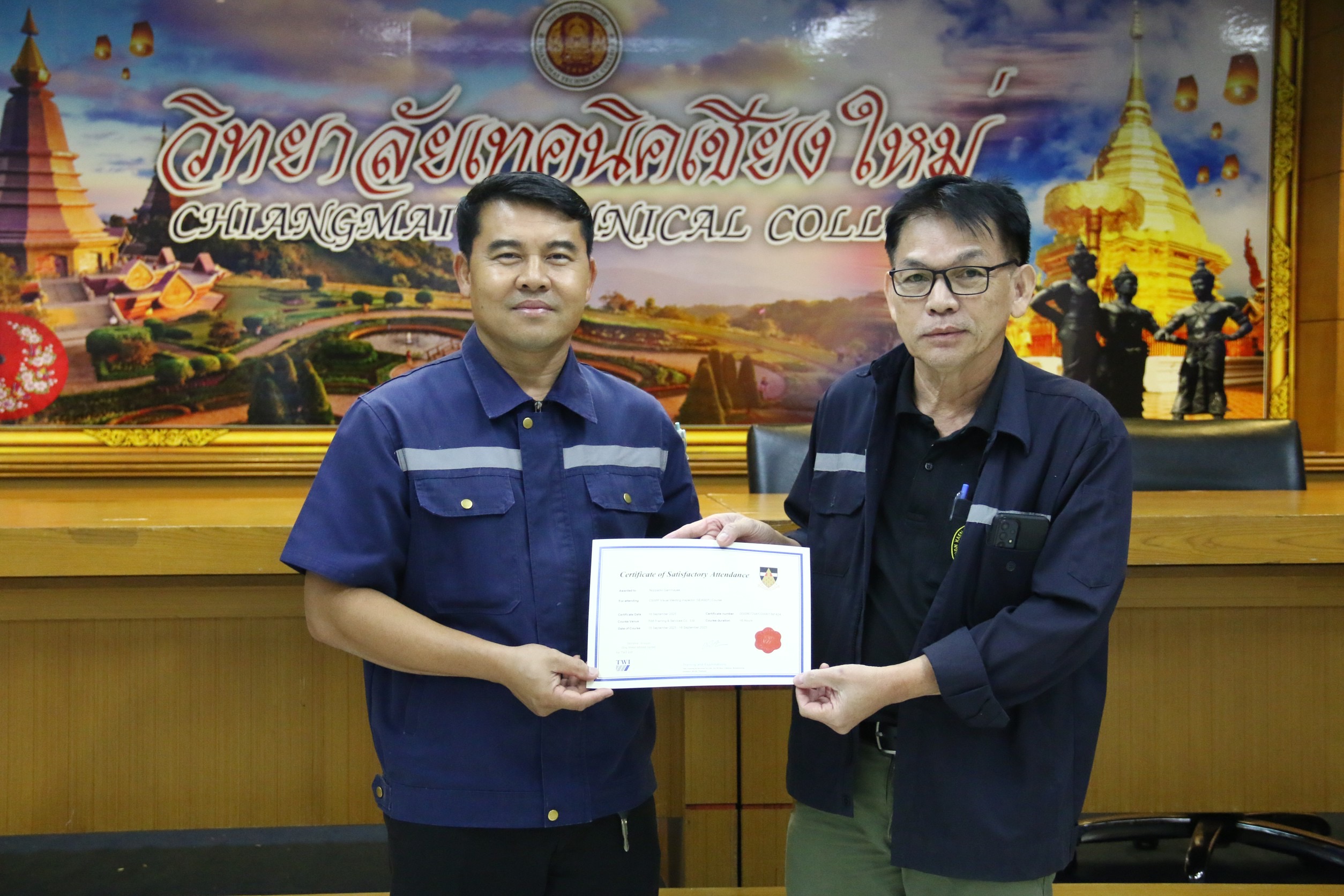 ดร.วัชรพงศ์ ฝั้นติ๊บ ผู้อำนวยการวิทยาลัยเทคนิคเชียงใหม่ ปฏิบัติหน้าที่ผู้อำนวยการสำนักงานอาชีวศึกษาจังหวัดเชียงใหม่ และรักษาการในตำแหน่งที่ปรึกษาด้านนโยบายและแผน สำนักงานคณะกรรมการการอาชีวศึกษา มอบหมายให้ นายชรันต์ยุทธ์ บุญยง พร้อมด้วย นายราชันย์ พรมแก้วงาม หัวหน้าแผนกวิชาช่างเชื่อมโลหะ นำคณะครู และนักเรียน นักศึกษาแผนกวิชาช่างเชื่อมโลหะ เข้าร่วมโครงการอบรมและทดสอบตามมาตรฐานสากล “CSWIP 3.0 Visual Welding Inspector” (รุ่นที่ ๑–๒) โดยมีคณะวิทยากรจากTWI Thailand และคณะวิศวกรรมศาสตร์ มหาวิทยาลัยเทคโนโลยีราชมงคลล้านนา ได้แก่