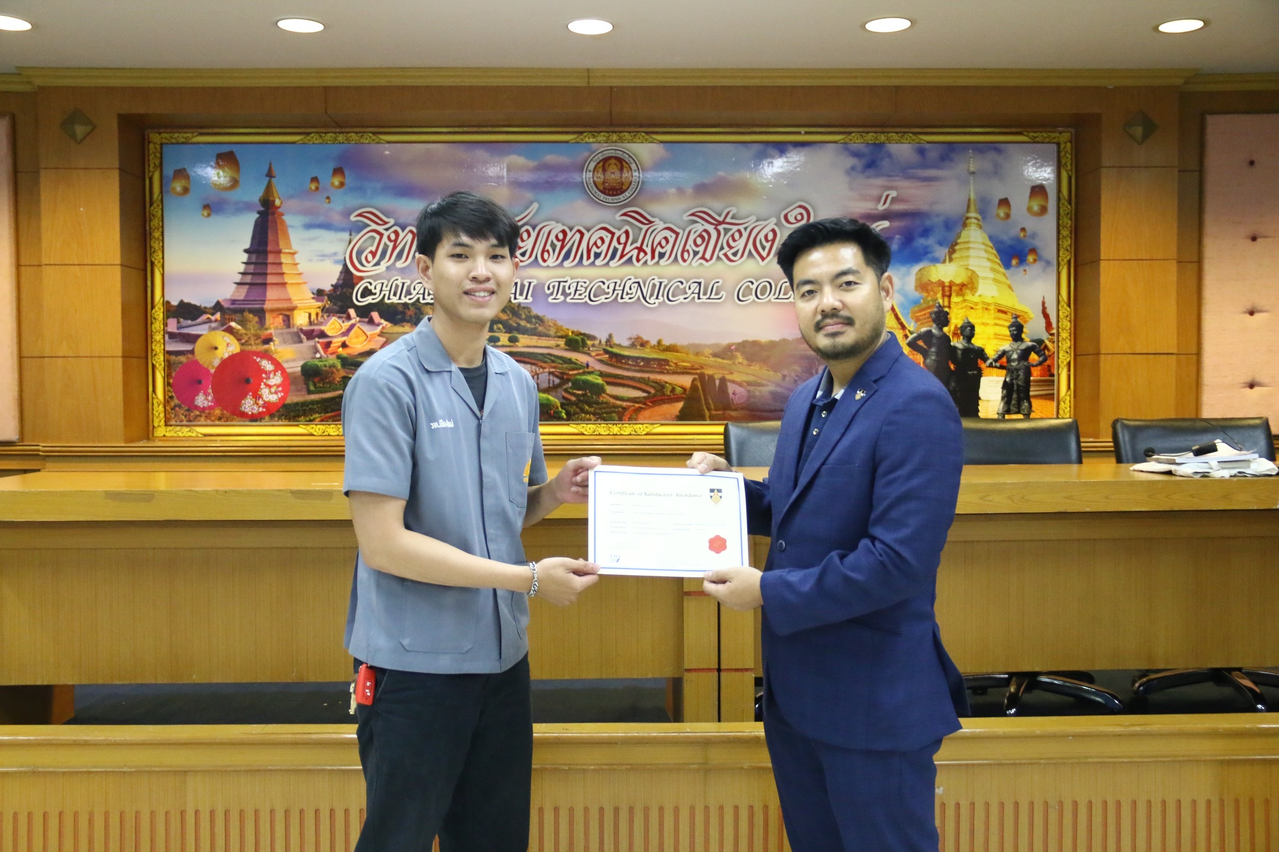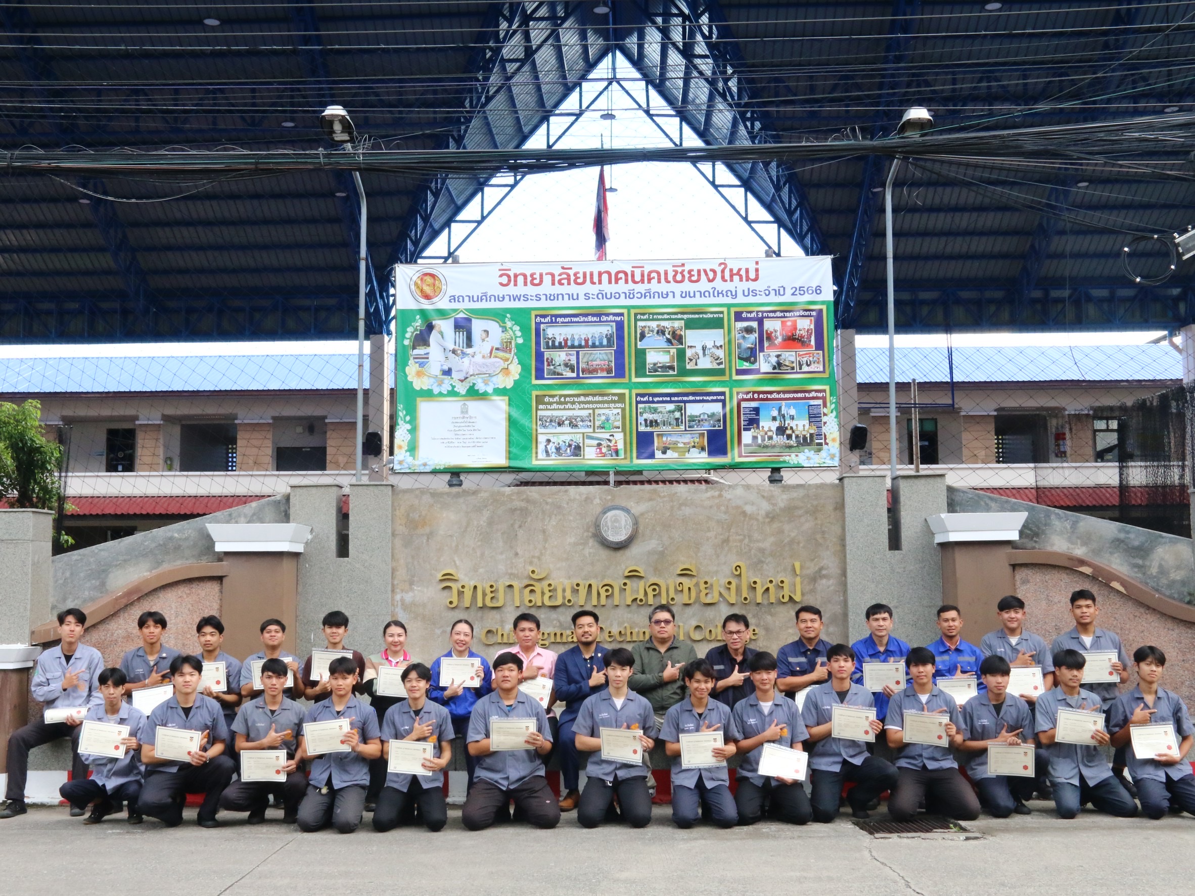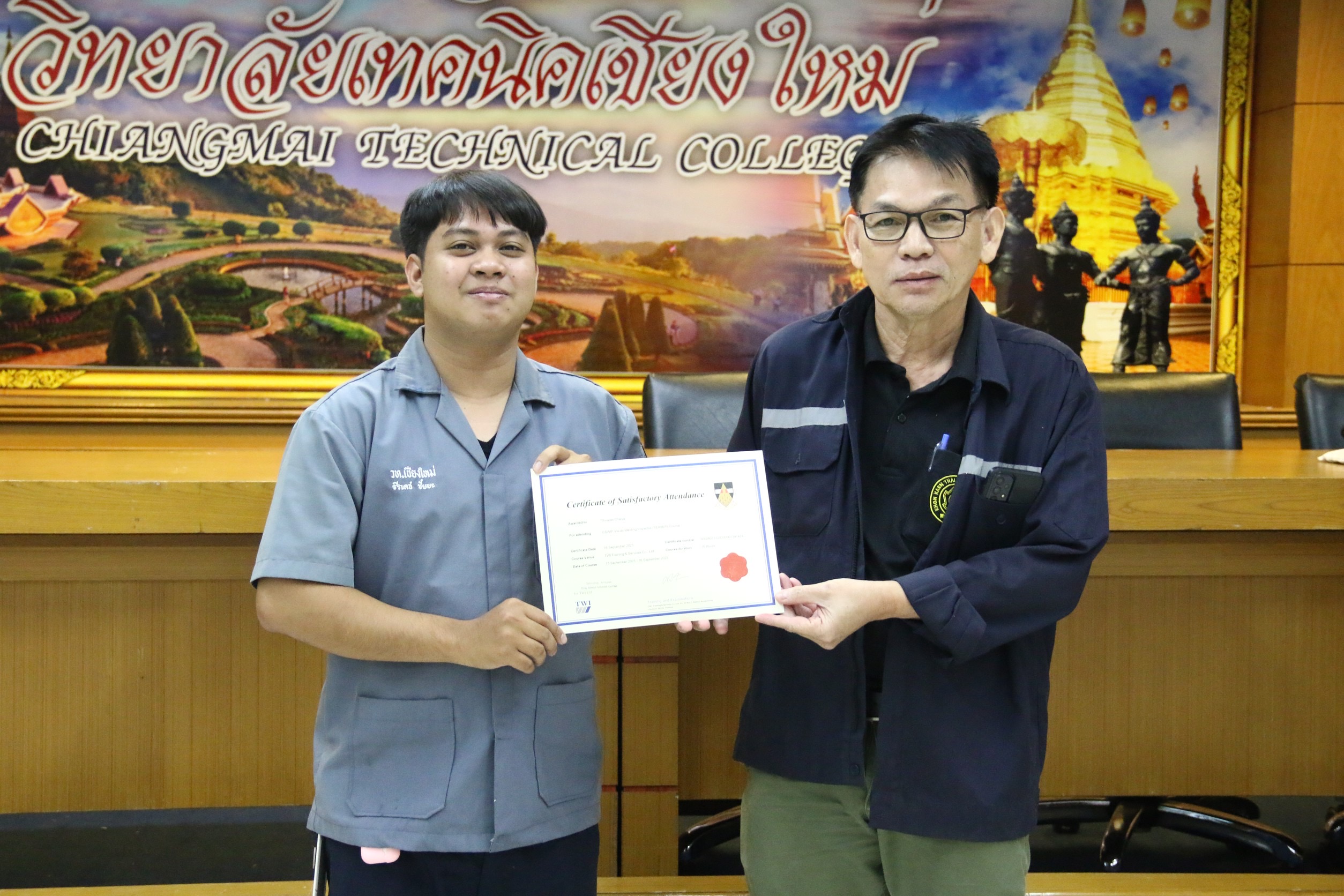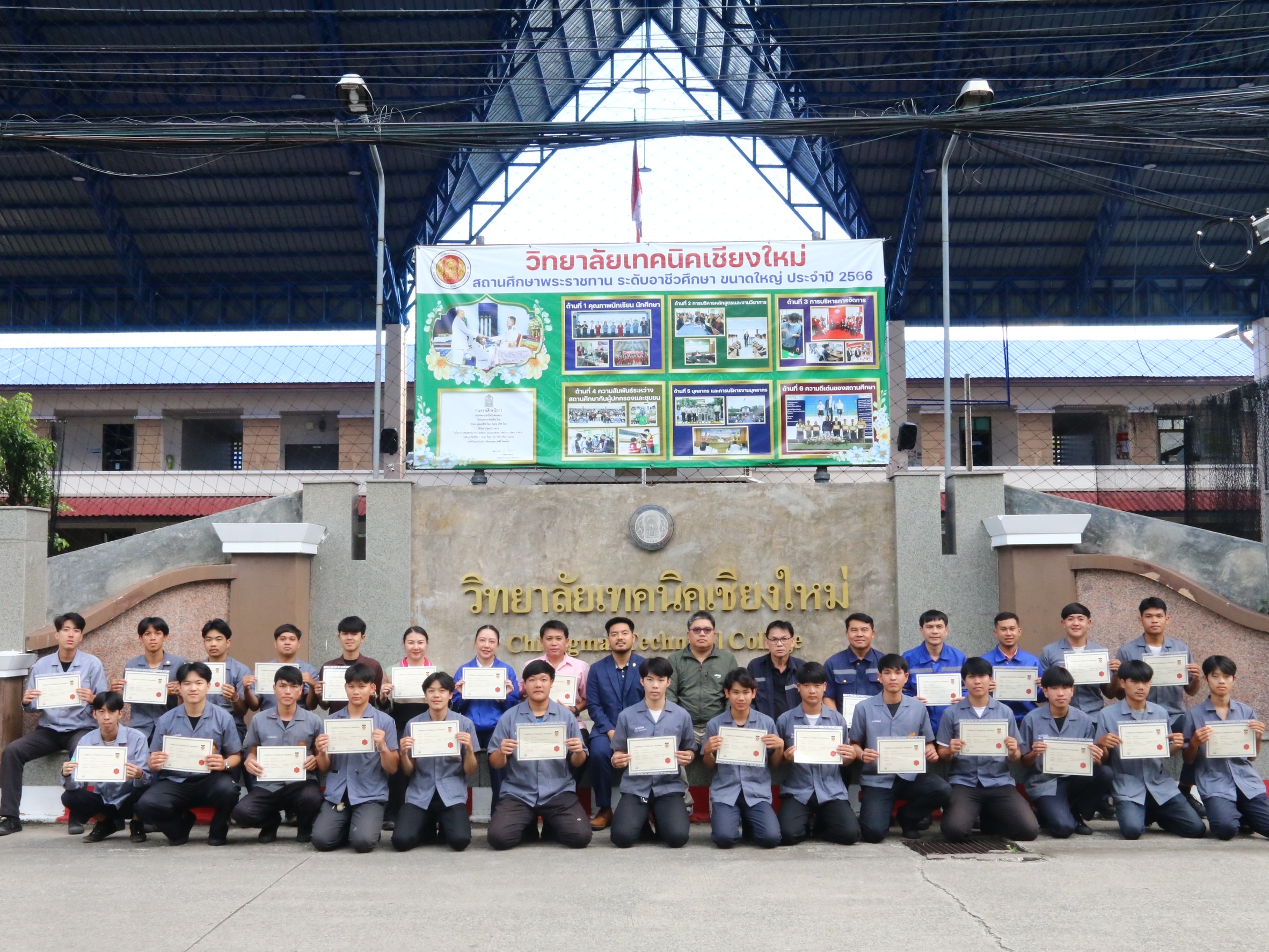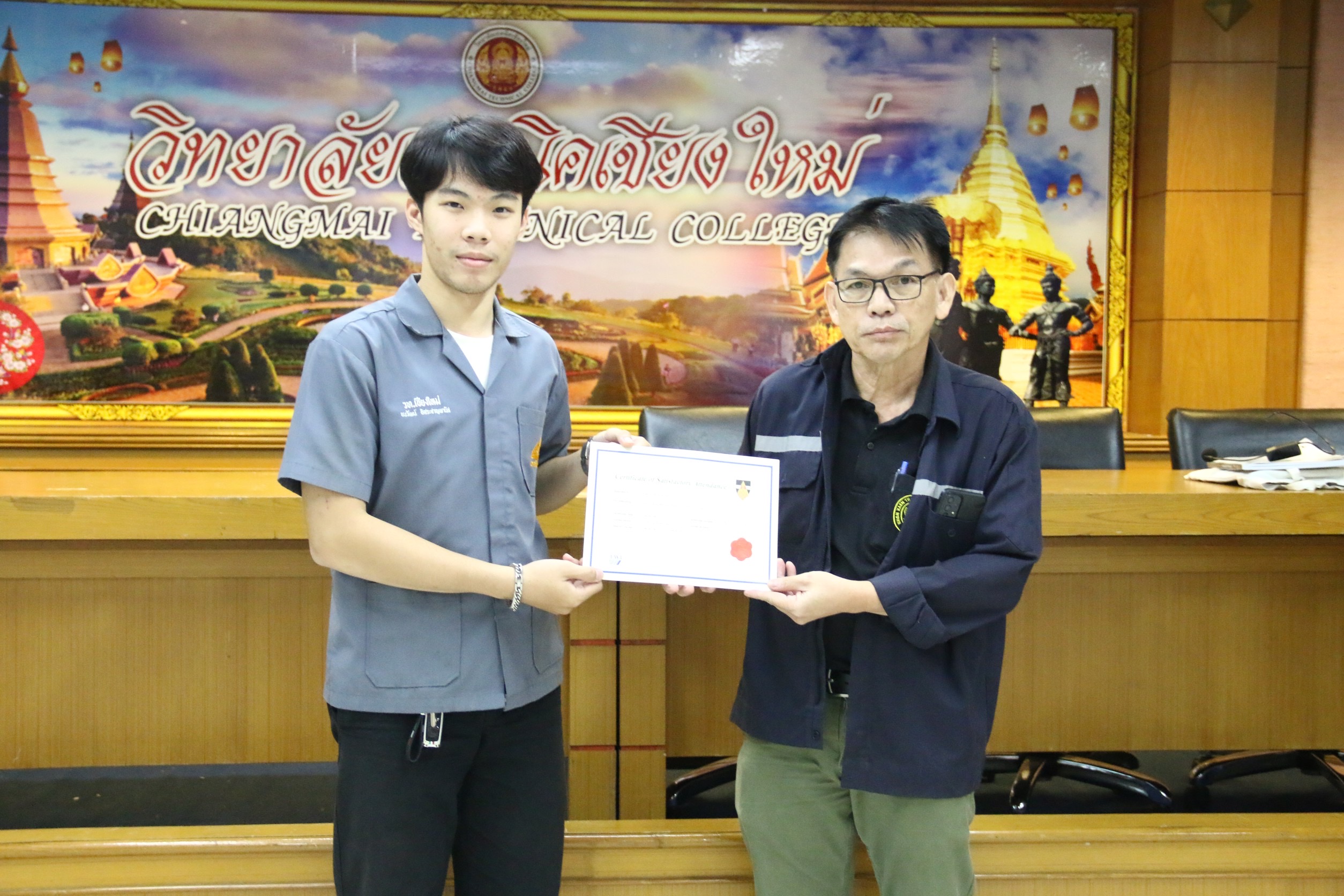 ดร.วัชรพงศ์ ฝั้นติ๊บ ผู้อำนวยการวิทยาลัยเทคนิคเชียงใหม่ ปฏิบัติหน้าที่ผู้อำนวยการสำนักงานอาชีวศึกษาจังหวัดเชียงใหม่ และรักษาการในตำแหน่งที่ปรึกษาด้านนโยบายและแผน สำนักงานคณะกรรมการการอาชีวศึกษา มอบหมายให้ นายชรันต์ยุทธ์ บุญยง พร้อมด้วย นายราชันย์ พรมแก้วงาม หัวหน้าแผนกวิชาช่างเชื่อมโลหะ นำคณะครู และนักเรียน นักศึกษาแผนกวิชาช่างเชื่อมโลหะ เข้าร่วมโครงการอบรมและทดสอบตามมาตรฐานสากล “CSWIP 3.0 Visual Welding Inspector” (รุ่นที่ ๑–๒) โดยมีคณะวิทยากรจากTWI Thailand และคณะวิศวกรรมศาสตร์ มหาวิทยาลัยเทคโนโลยีราชมงคลล้านนา ได้แก่