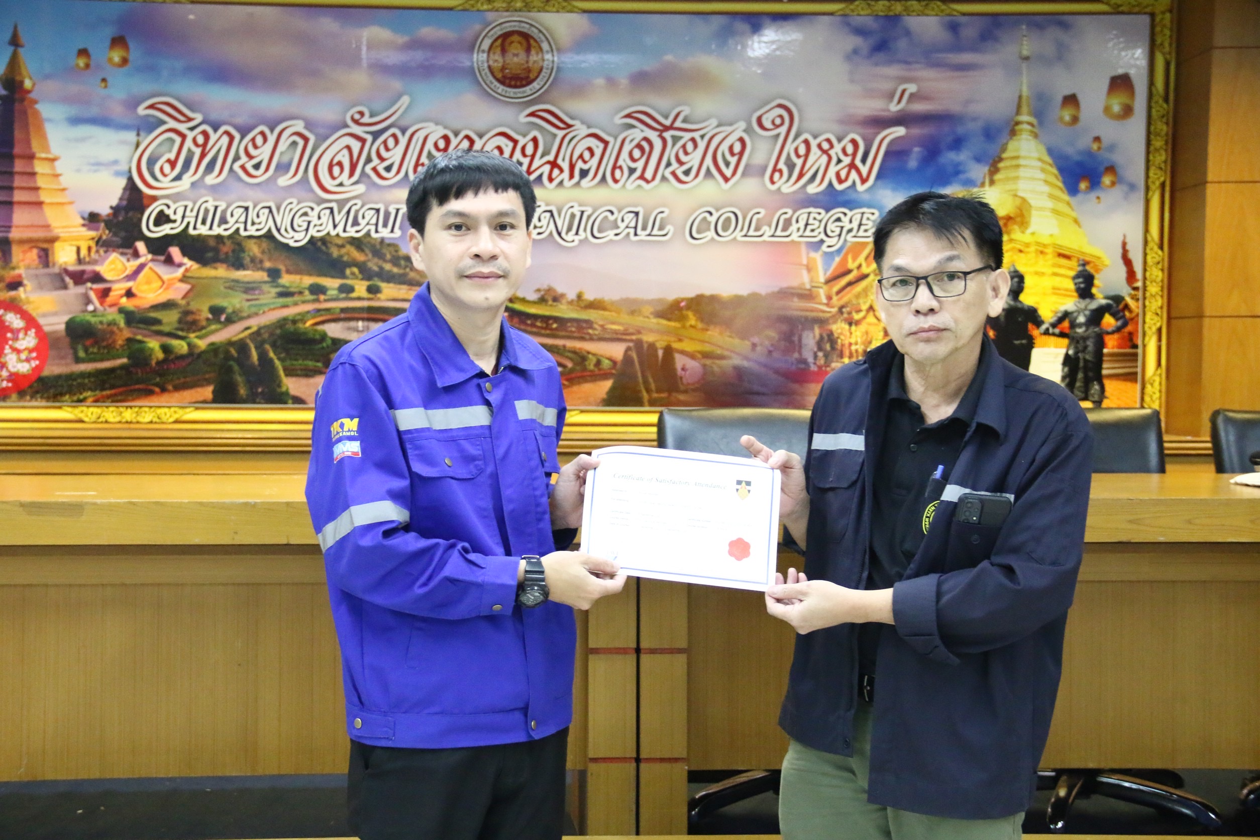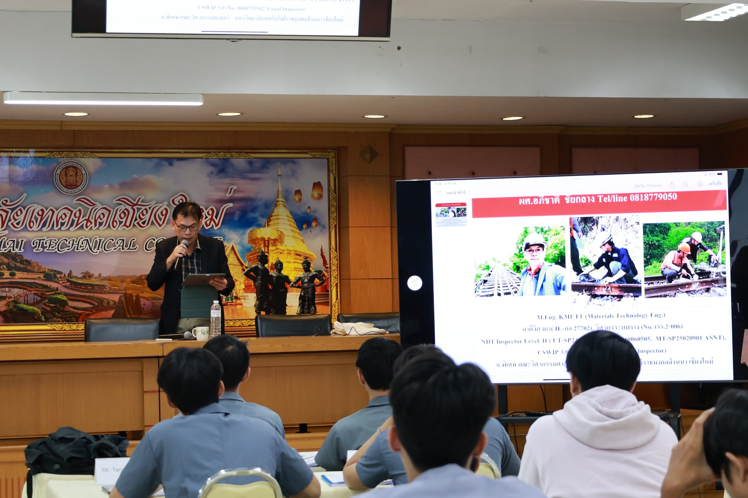 เนื่องในโอกาสเข้าจัดโครงการอบรมและทดสอบตามมาตรฐานสากล “CSWIP 3.0 Visual Welding Inspector” (รุ่นที่ ๑–๒) ให้กับคณะครู และนักเรียน นักศึกษาแผนกวิชาช่างเชื่อมโลหะ โดยจัดอบรมระหว่างวันที่ 15 – 19 กันยายน 2568 ณ ห้องประชุมสุทธาธรรม วิทยาลัยเทคนิคเชียงใหม่