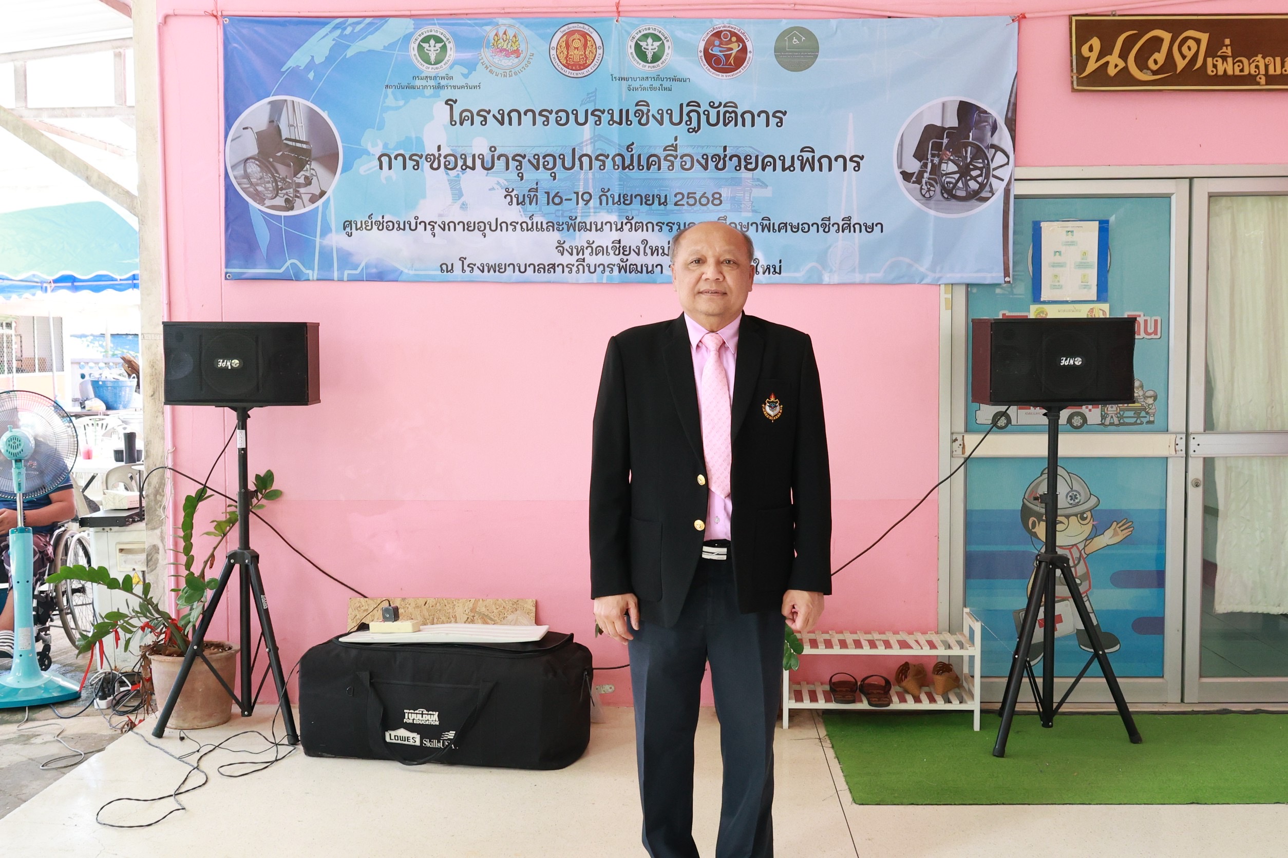 ดร.วัชรพงศ์ ฝั้นติ๊บ ผู้อำนวยการวิทยาลัยเทคนิคเชียงใหม่ ปฏิบัติหน้าที่ผู้อำนวยการสำนักงานอาชีวศึกษาจังหวัดเชียงใหม่ และรักษาการในตำแหน่งที่ปรึกษาด้านนโยบายและแผน สำนักงานคณะกรรมการการอาชีวศึกษาเป็นประธานเปิดโครงการอบรมเชิงปฏิบัติการซ่อมบำรุงอุปกรณ์เครื่องช่วยคนพิการ ณ โรงพยาบาลส่งเสริมสุขภาพตำบลบ้านพญาชมภู อำเภอสารภี จังหวัดเชียงใหม่