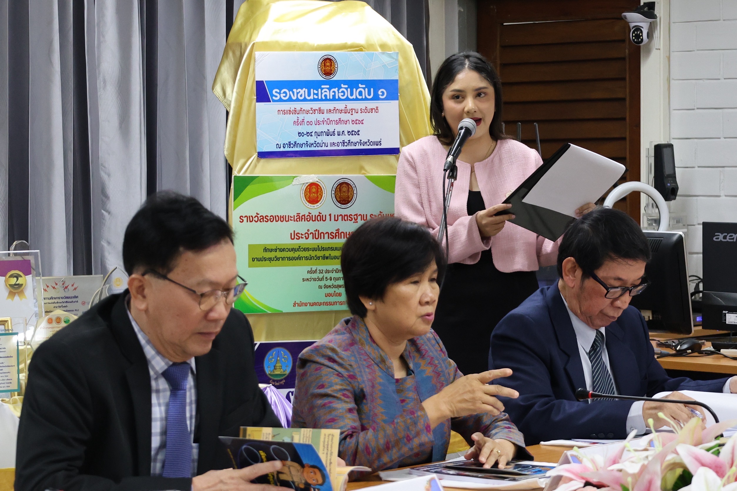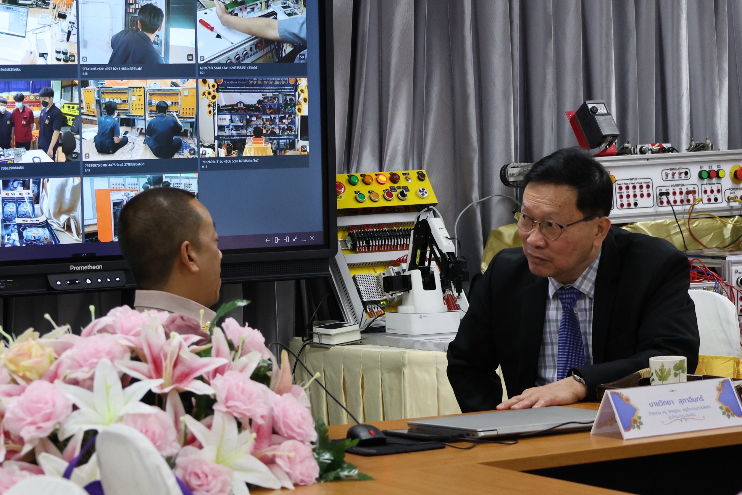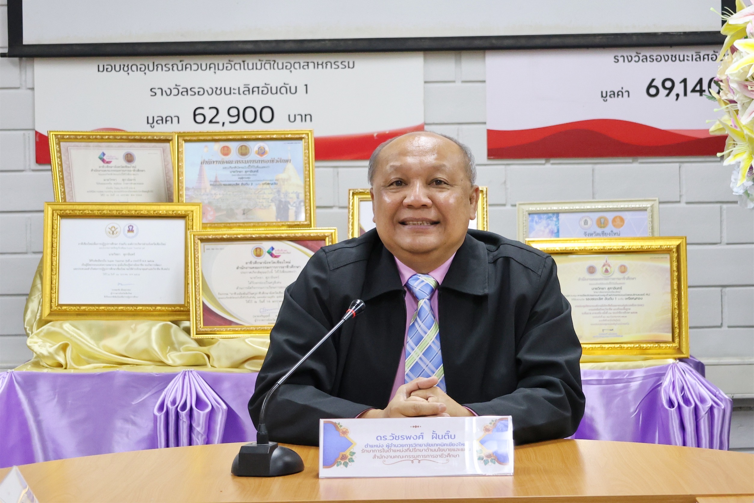ดร.วัชรพงศ์ ฝั้นติ๊บ ผู้อำนวยการวิทยาลัยเทคนิคเชียงใหม่ ปฏิบัติหน้าที่ผู้อำนวยการสำนักงานอาชีวศึกษาจังหวัดเชียงใหม่ และรักษาการในตำแหน่งที่ปรึกษาด้านนโยบายและแผน สำนักงานคณะกรรมการการอาชีวศึกษา ได้ทำหน้าที่เป็นประธานการประเมินกล่าวต้อนรับ คณะอนุกรรมการ จากสำนักงานคุรุสภาจังหวัดเชียงใหม่ ในการประเมินผู้ประกอบวิชาชีพทางการศึกษาเพื่อรับรางวัลคุรุสภา โดยมีคณะกรรมการผู้ทรงคุณวุฒิจากสำนักงานคุรุสภาจังหวัดเชียงใหม่ร่วมทำการประเมินในครั้งนี้