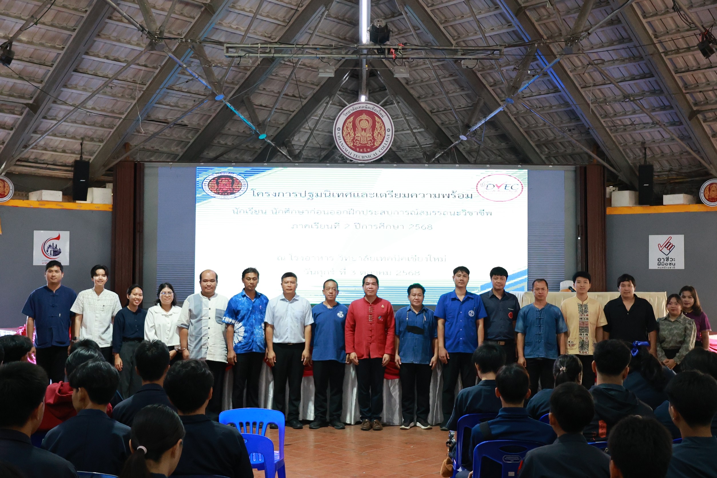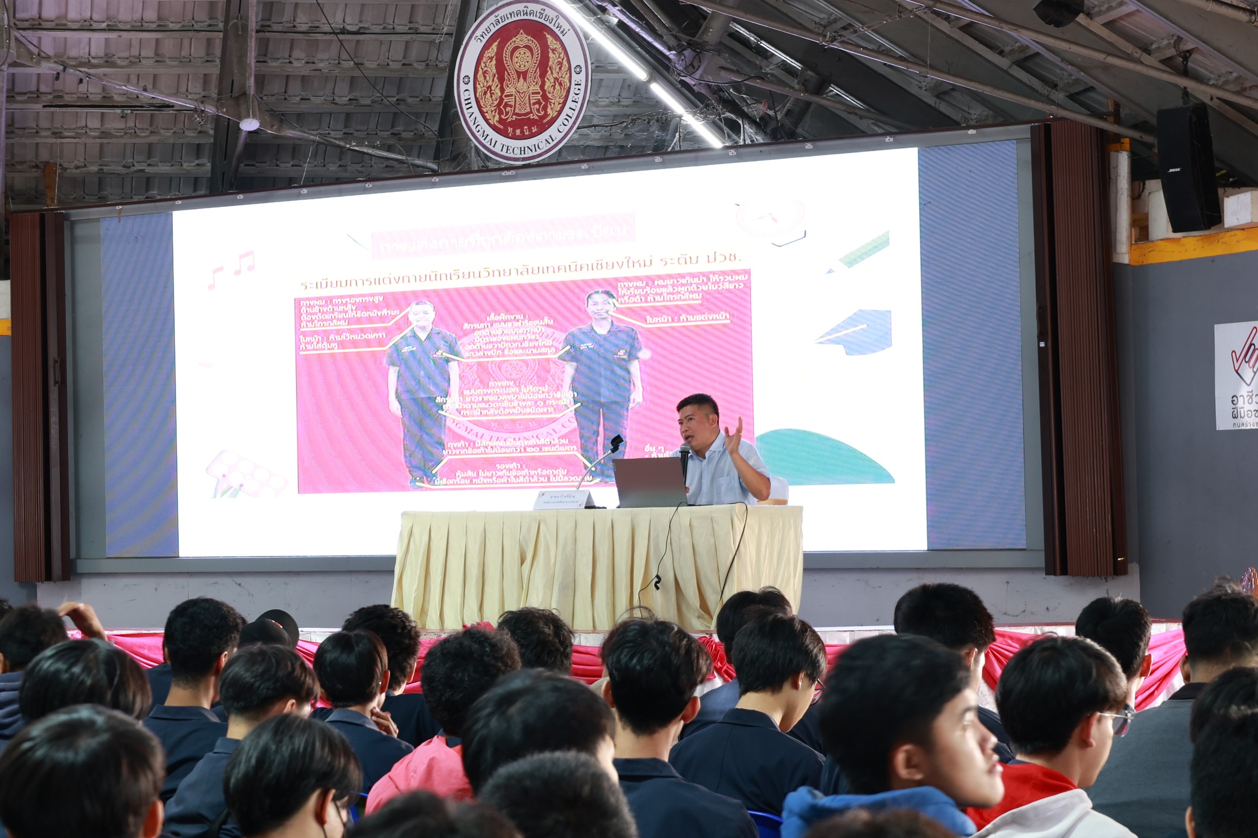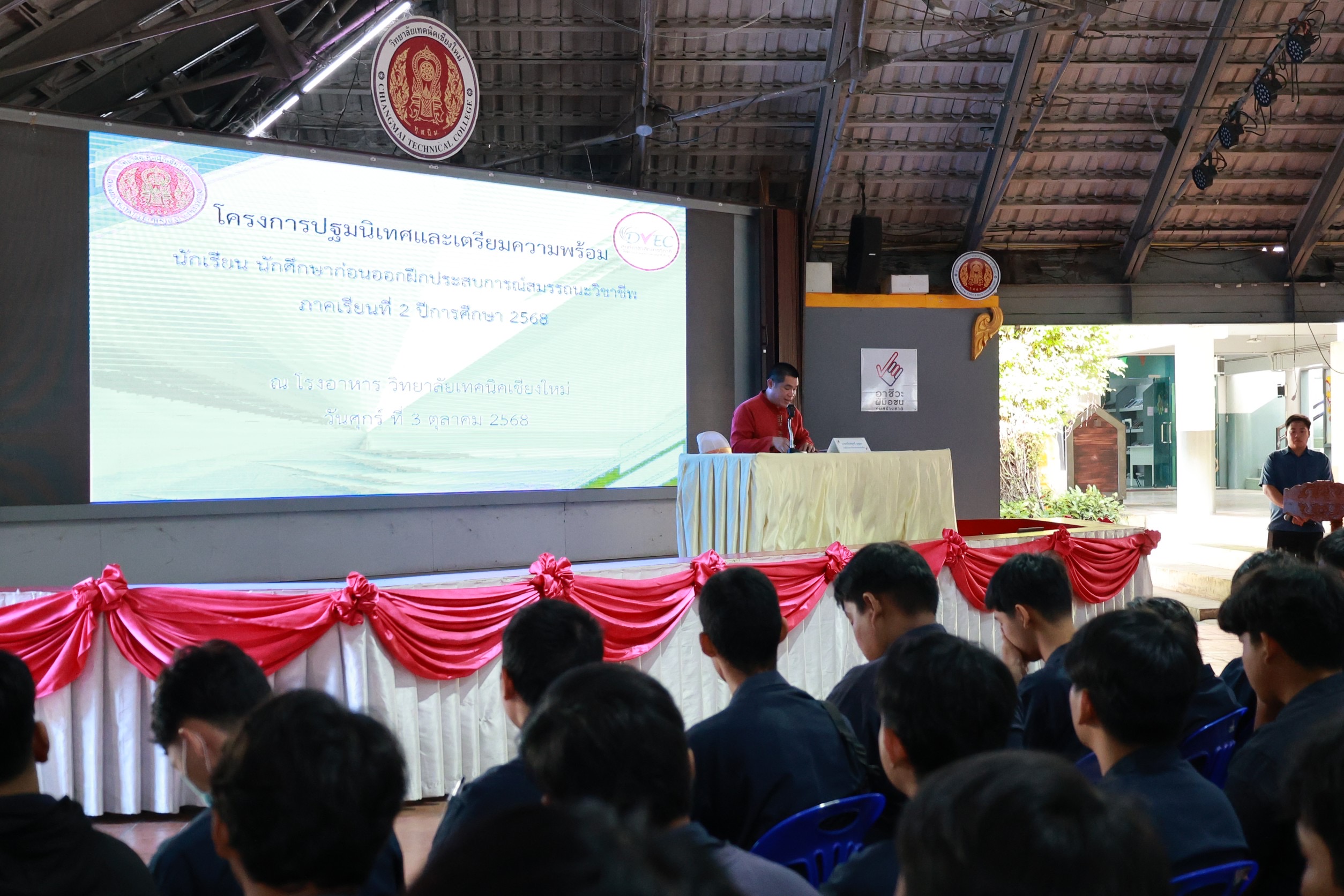 ดร.วัชรพงศ์ ฝั้นติ๊บ ผู้อำนวยการวิทยาลัยเทคนิคเชียงใหม่ ปฏิบัติหน้าที่ผู้อำนวยการสำนักงานอาชีวศึกษาจังหวัดเชียงใหม่ และรักษาการในตำแหน่งที่ปรึกษาด้านนโยบายและแผน สำนักงานคณะกรรมการการอาชีวศึกษา มอบหมายให้ นายชรันต์ยุทธ์ บุญยง รองผู้อำนวยการฝ่ายบริหารทรัพยากร เป็นประธานเปิดโครงการปฐมนิเทศและเตรียมความพร้อม นักเรียน นักศึกษา ก่อนฝึกประสบการณ์สมรรถนะวิชาชีพ ภาคเรียนที่ 2 ปีการศึกษา 2568 โดยมี นายนาวี ศรีอ้าย หัวหน้างานอาชีวศึกษาระบบทวิภาคี ให้การบรรยายและแนะนำเกี่ยวกับการเตรียมตัวก่อนออกฝึกประสบการณ์สมรรถนะวิชาชีพ ซึ่งมีคณะครูที่ปรึกษาแต่ละแผนกวิชาเข้าร่วมฯ