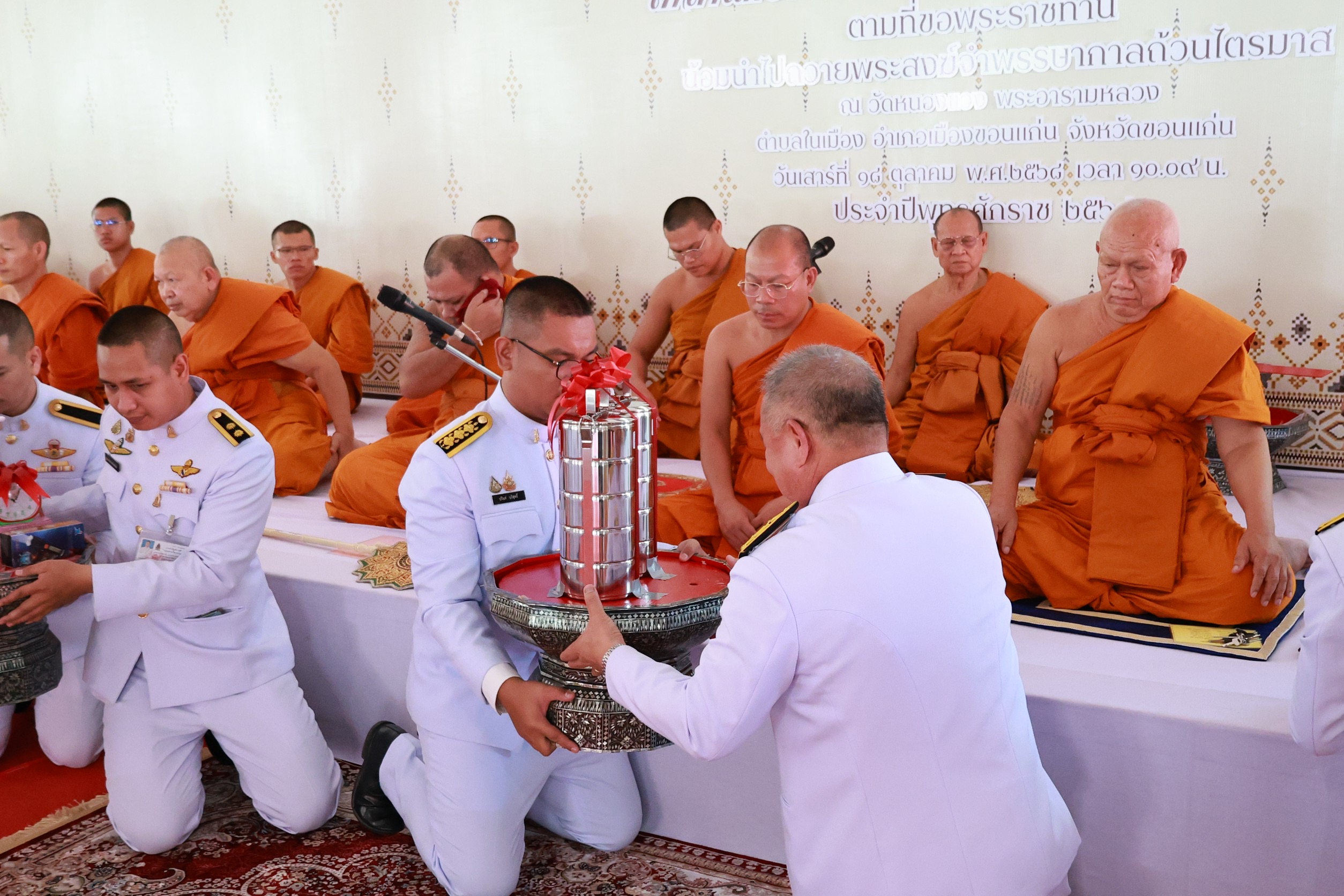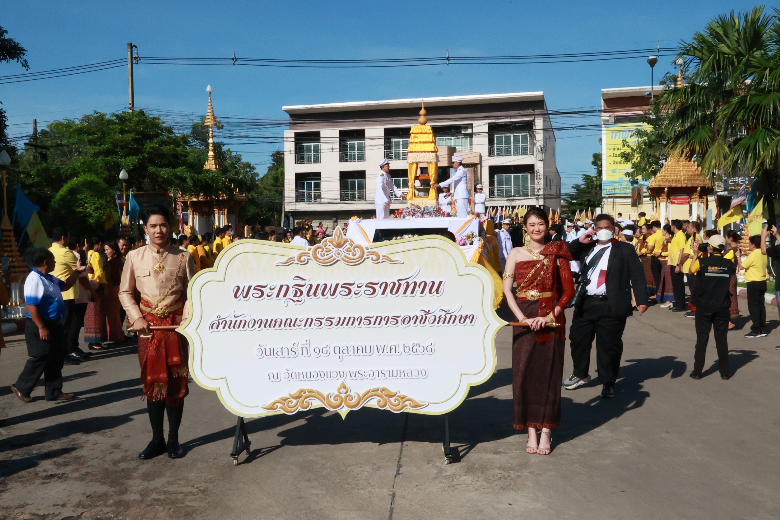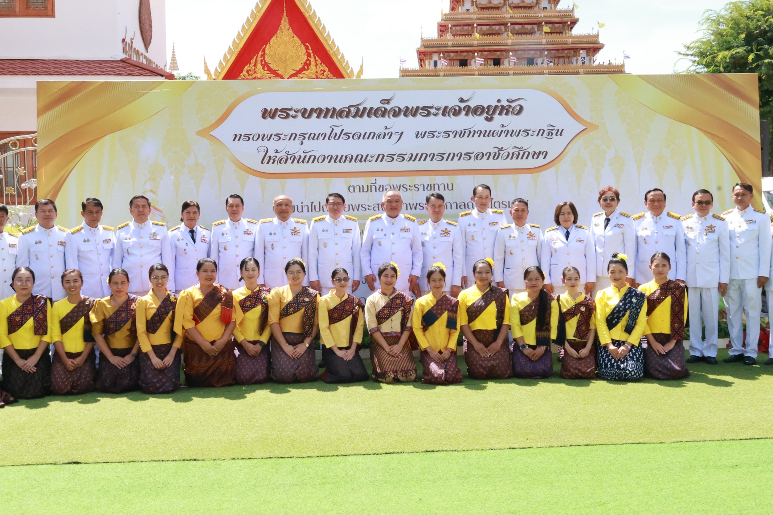 นายยศพล เวณุโกเศศ เลขาธิการคณะกรรมการการอาชีวศึกษา เป็นประธานพิธีถวายผ้าพระกฐินพระราชทาน ของสำนักงานคณะกรรมการการอาชีวศึกษา ประจำปี พ.ศ. 2568 พร้อมด้วย นายวิทวัต ปัญจมะวัต นายสง่า แต่เชื้อสาย นายณรงค์ชัย เจริญรุจิทรัพย์ รองเลขาธิการคณะกรรมการการอาชีวศึกษา ผู้บริหารส่วนกลาง ดร.วัชรพงศ์ ฝั้นติ๊บ ผู้อำนวยการวิทยาลัยเทคนิคเชียงใหม่ ปฏิบัติหน้าที่ผู้อำนวยการสำนักงานอาชีวศึกษาจังหวัดเชียงใหม่ และรักษาการในตำแหน่งที่ปรึกษาด้านนโยบายและแผน สำนักงานคณะกรรมการการอาชีวศึกษา ผู้บริหารสถานศึกษา ครูและบุคลากรทางการศึกษา คณะดำเนินงาน และประชาชน เข้าร่วมพิธี ณ วัดหนองแวง ตำบลในเมือง อำเภอเมืองขอนแก่น จังหวัดขอนแก่น
