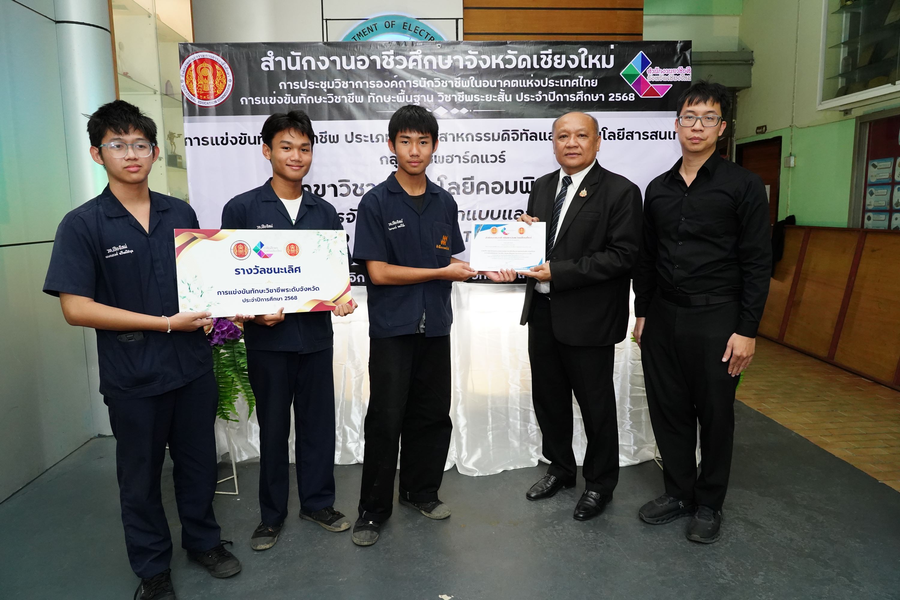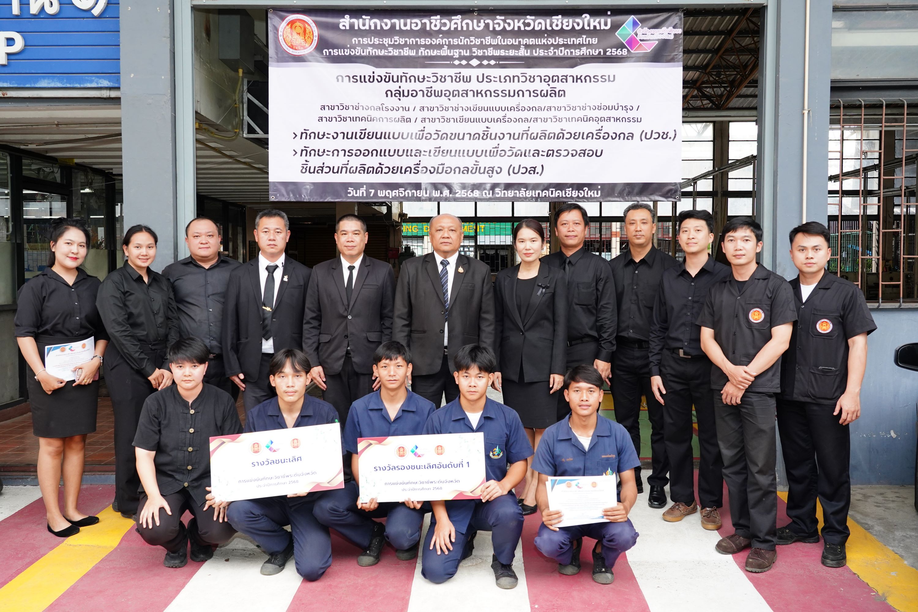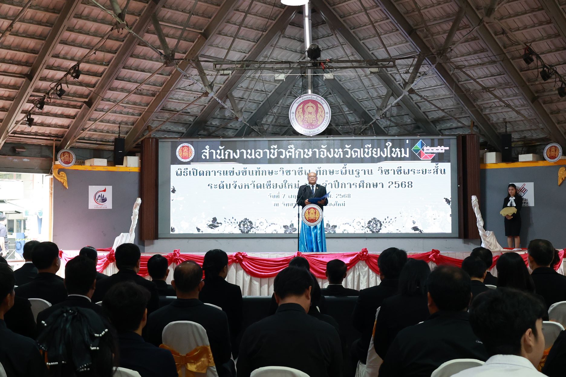วันศุกร์ที่ 7 พฤศจิกายน พ.ศ. 2568 ดร.วัชรพงศ์ ฝั้นติ๊บ ผู้อำนวยการวิทยาลัยเทคนิคเชียงใหม่ ปฏิบัติหน้าที่ผู้อำนวยการสำนักงานอาชีวศึกษาจังหวัดเชียงใหม่ และรักษาการในตำแหน่งที่ปรึกษาด้านนโยบายและแผน สำนักงานคณะกรรมการการอาชีวศึกษา เป็นประธานในพิธีเปิดงาน การแข่งขันทักษะวิชาชีพ ทักษะพื้นฐาน และทักษะวิชาชีพระยะสั้น ระดับอาชีวศึกษาจังหวัดเชียงใหม่ ประจำปีการศึกษา 2568 ณ สนามการแข่งขันวิทยาลัยเทคนิคเชียงใหม่ และสนามการแข่งขันวิทยาลัยอาชีวศึกษาเชียงใหม่ โดยมีคณะผู้บริหาร คณะครู บุคลากรทางการศึกษา ตลอดจนนักเรียน นักศึกษา ในสังกัดสำนักงานอาชีวศึกษาจังหวัดเชียงใหม่ เข้าร่วมพิธีเปิดงานในครั้งนี้ เพื่อร่วมการแข่งขันในแต่ละทักษะ เพื่อคัดเลือกตัวแทนระดับจังหวัดเข้าร่วมการแข่งขันทักษะระดับภาคเหนือ ครั้งที่ 37 ซึ่งมีกำหนดจัดขึ้นระหว่างวันที่ 8–12 ธันวาคม 2568 ณ จังหวัดพิษณุโลก สำนักงานอาชีวศึกษาจังหวัดเชียงใหม่ ได้ดำเนินการจัดประชุมวิชาการองค์การนักวิชาชีพในอนาคตแห่งประเทศไทย และการแข่งขันทักษะวิชาชีพ ทักษะพื้นฐาน และทักษะวิชาชีพระยะสั้น ประจำปีการศึกษา 2568 เพื่อดำเนินกิจกรรมหลักตามแนวทางปฏิบัติขององค์การนักวิชาชีพในอนาคตแห่งประเทศไทย อีกทั้งเป็นการส่งเสริมให้นักเรียน นักศึกษา ได้พัฒนาและฝึกฝนทักษะฝีมือ พร้อมทั้งเข้ารับการคัดเลือกเป็นตัวแทนระดับจังหวัดเชียงใหม่ เข้าร่วมการแข่งขันทักษะวิชาชีพ ทักษะพื้นฐาน และทักษะวิชาชีพระยะสั้น ในระดับภาคเหนือต่อไป ทั้งนี้ มีสถานศึกษาในสังกัดสำนักงานอาชีวศึกษาจังหวัดเชียงใหม่ ทั้งภาครัฐและเอกชนเข้าร่วมการแข่งขัน จำนวน 15 แห่ง แบ่งเป็นการแข่งขันทักษะวิชาชีพ จำนวน 58 ทักษะ ทักษะพื้นฐาน จำนวน 18 ทักษะ และทักษะวิชาชีพระยะสั้น จำนวน 4 ทักษะ รวมทั้งสิ้น 80 ทักษะ เพื่อเปิดโอกาสให้นักเรียน นักศึกษา ได้พัฒนาความรู้ ความสามารถ และนำไปประยุกต์ใช้ในการศึกษาต่อหรือการประกอบอาชีพในอนาคต นอกจากนี้ คณะผู้บริหารและคณะดำเนินงาน ได้ลงพื้นที่ตรวจเยี่ยมและให้กำลังใจนักเรียน นักศึกษาที่เข้าร่วมการแข่งขันทักษะวิชาชีพ ทักษะพื้นฐาน และทักษะวิชาชีพระยะสั้น ณ สนามการแข่งขันทั้ง 2 แห่ง ได้แก่ วิทยาลัยเทคนิคเชียงใหม่ และวิทยาลัยอาชีวศึกษาเชียงใหม่ ดาวน์โหลดรูปภาพเพิ่มเติมได้ที่ : https://drive.google.com/drive/folders/12F6Gim_RBfUkzoaVfoNsYWCe1IvmuCPA