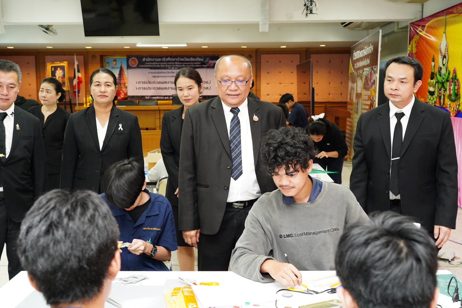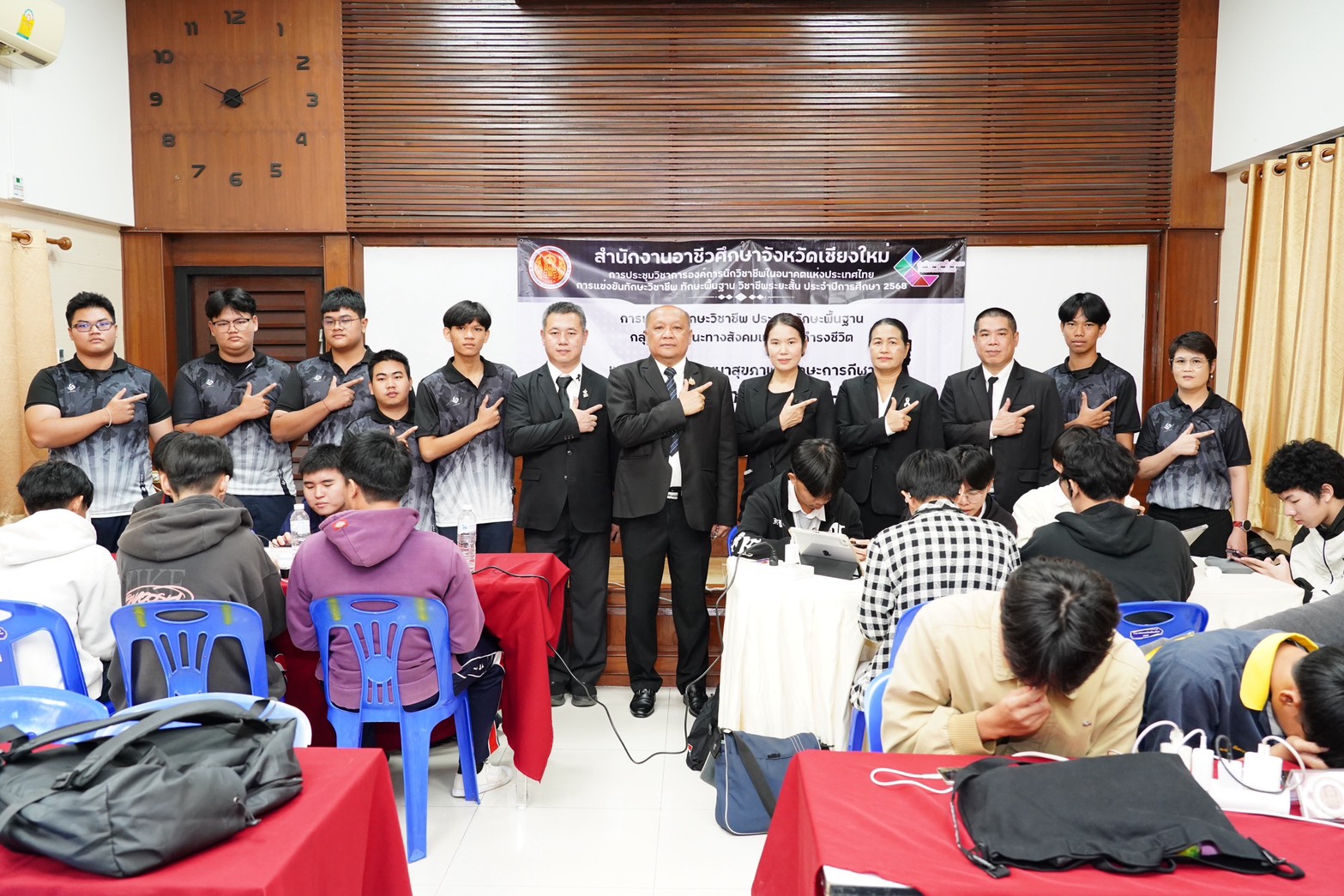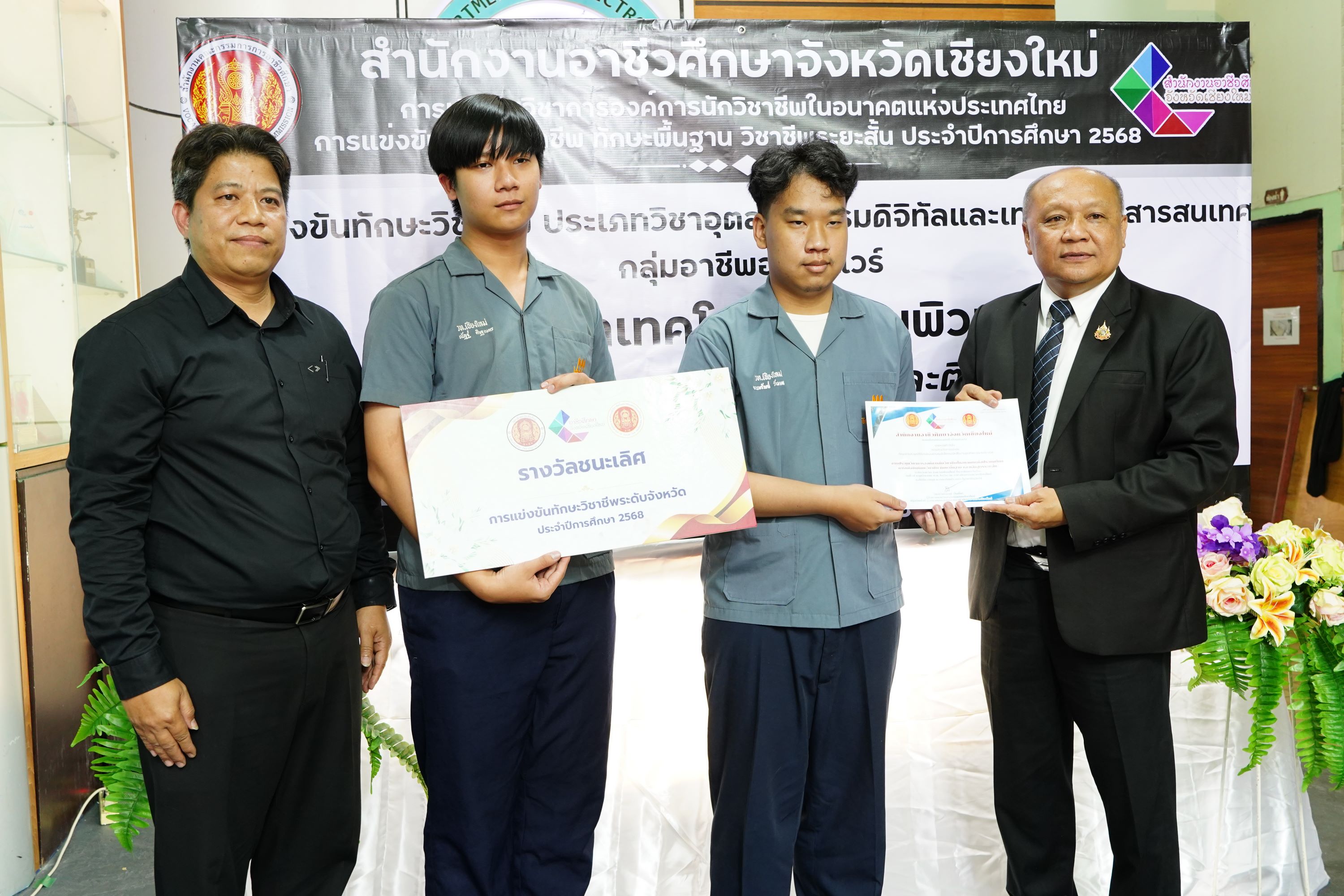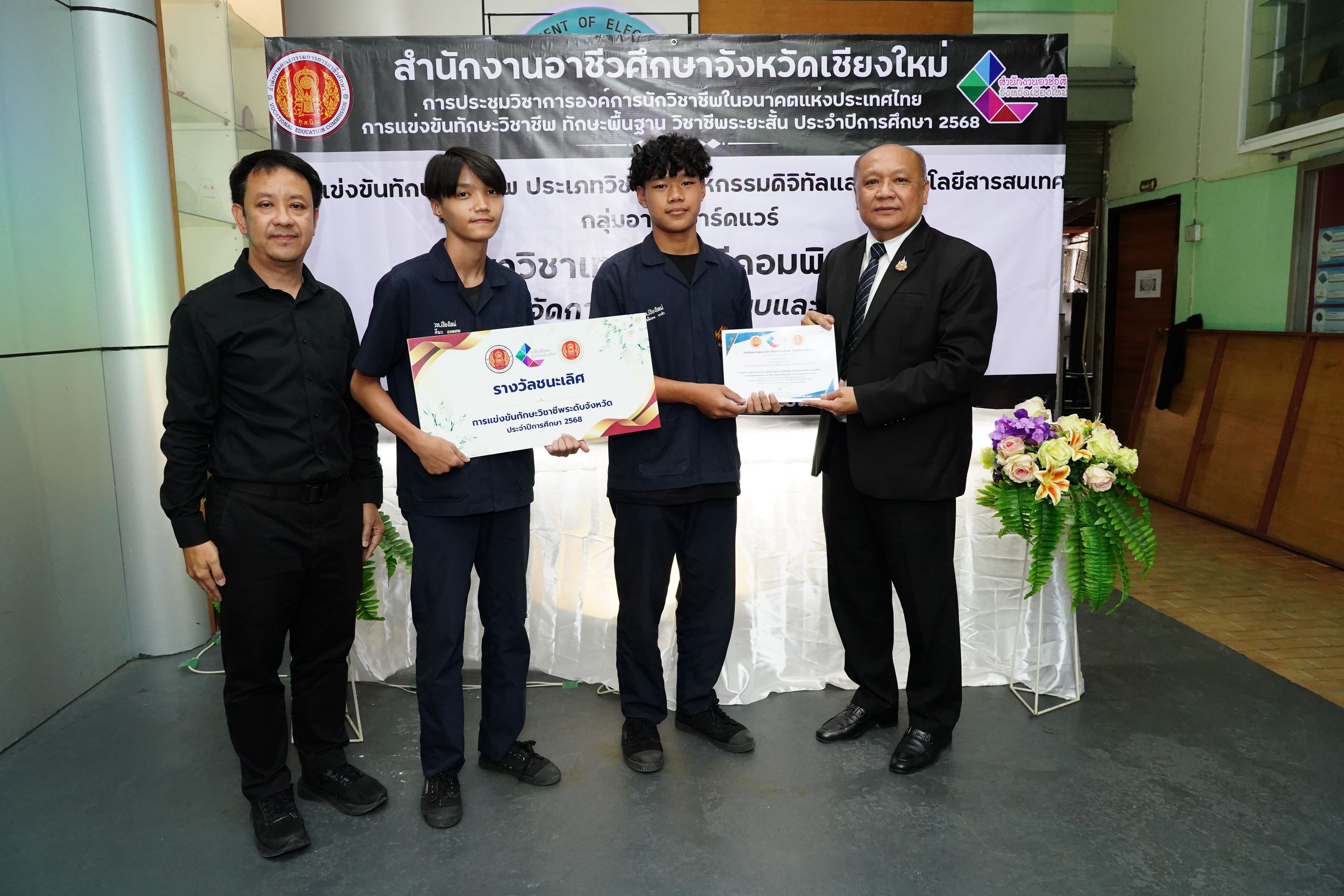 วันศุกร์ที่ 7 พฤศจิกายน พ.ศ. 2568 ดร.วัชรพงศ์ ฝั้นติ๊บ ผู้อำนวยการวิทยาลัยเทคนิคเชียงใหม่ ปฏิบัติหน้าที่ผู้อำนวยการสำนักงานอาชีวศึกษาจังหวัดเชียงใหม่ และรักษาการในตำแหน่งที่ปรึกษาด้านนโยบายและแผน สำนักงานคณะกรรมการการอาชีวศึกษา เป็นประธานในพิธีเปิดงาน การแข่งขันทักษะวิชาชีพ ทักษะพื้นฐาน และทักษะวิชาชีพระยะสั้น ระดับอาชีวศึกษาจังหวัดเชียงใหม่ ประจำปีการศึกษา 2568 ณ สนามการแข่งขันวิทยาลัยเทคนิคเชียงใหม่ และสนามการแข่งขันวิทยาลัยอาชีวศึกษาเชียงใหม่ โดยมีคณะผู้บริหาร คณะครู บุคลากรทางการศึกษา ตลอดจนนักเรียน นักศึกษา ในสังกัดสำนักงานอาชีวศึกษาจังหวัดเชียงใหม่ เข้าร่วมพิธีเปิดงานในครั้งนี้ เพื่อร่วมการแข่งขันในแต่ละทักษะ เพื่อคัดเลือกตัวแทนระดับจังหวัดเข้าร่วมการแข่งขันทักษะระดับภาคเหนือ ครั้งที่ 37 ซึ่งมีกำหนดจัดขึ้นระหว่างวันที่ 8–12 ธันวาคม 2568 ณ จังหวัดพิษณุโลก สำนักงานอาชีวศึกษาจังหวัดเชียงใหม่ ได้ดำเนินการจัดประชุมวิชาการองค์การนักวิชาชีพในอนาคตแห่งประเทศไทย และการแข่งขันทักษะวิชาชีพ ทักษะพื้นฐาน และทักษะวิชาชีพระยะสั้น ประจำปีการศึกษา 2568 เพื่อดำเนินกิจกรรมหลักตามแนวทางปฏิบัติขององค์การนักวิชาชีพในอนาคตแห่งประเทศไทย อีกทั้งเป็นการส่งเสริมให้นักเรียน นักศึกษา ได้พัฒนาและฝึกฝนทักษะฝีมือ พร้อมทั้งเข้ารับการคัดเลือกเป็นตัวแทนระดับจังหวัดเชียงใหม่ เข้าร่วมการแข่งขันทักษะวิชาชีพ ทักษะพื้นฐาน และทักษะวิชาชีพระยะสั้น ในระดับภาคเหนือต่อไป ทั้งนี้ มีสถานศึกษาในสังกัดสำนักงานอาชีวศึกษาจังหวัดเชียงใหม่ ทั้งภาครัฐและเอกชนเข้าร่วมการแข่งขัน จำนวน 15 แห่ง แบ่งเป็นการแข่งขันทักษะวิชาชีพ จำนวน 58 ทักษะ ทักษะพื้นฐาน จำนวน 18 ทักษะ และทักษะวิชาชีพระยะสั้น จำนวน 4 ทักษะ รวมทั้งสิ้น 80 ทักษะ เพื่อเปิดโอกาสให้นักเรียน นักศึกษา ได้พัฒนาความรู้ ความสามารถ และนำไปประยุกต์ใช้ในการศึกษาต่อหรือการประกอบอาชีพในอนาคต นอกจากนี้ คณะผู้บริหารและคณะดำเนินงาน ได้ลงพื้นที่ตรวจเยี่ยมและให้กำลังใจนักเรียน นักศึกษาที่เข้าร่วมการแข่งขันทักษะวิชาชีพ ทักษะพื้นฐาน และทักษะวิชาชีพระยะสั้น ณ สนามการแข่งขันทั้ง 2 แห่ง ได้แก่ วิทยาลัยเทคนิคเชียงใหม่ และวิทยาลัยอาชีวศึกษาเชียงใหม่ ดาวน์โหลดรูปภาพเพิ่มเติมได้ที่ : https://drive.google.com/drive/folders/12F6Gim_RBfUkzoaVfoNsYWCe1IvmuCPA