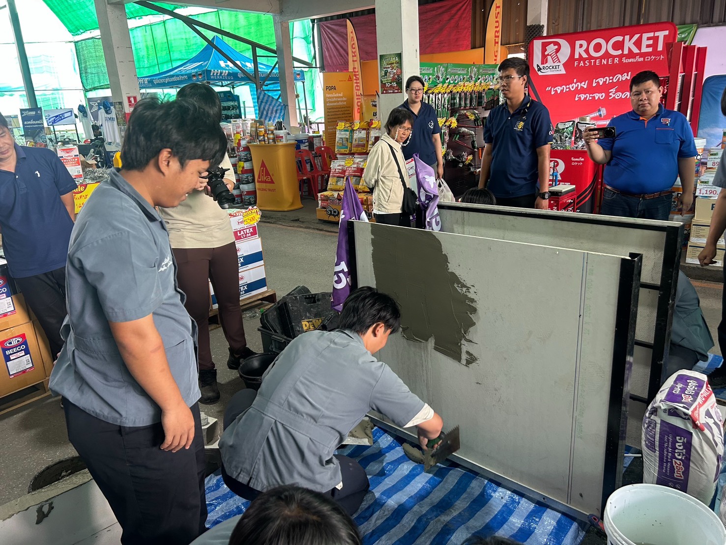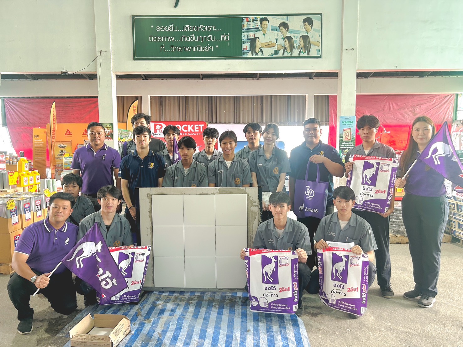 ดร.วัชรพงศ์ ฝั้นติ๊บ ผู้อำนวยการวิทยาลัยเทคนิคเชียงใหม่ ปฏิบัติหน้าที่ผู้อำนวยการสำนักงานอาชีวศึกษาจังหวัดเชียงใหม่ และรักษาการในตำแหน่งที่ปรึกษาด้านนโยบายและแผน สำนักงานคณะกรรมการการอาชีวศึกษา มอบหมายให้คณะครูและนักศึกษา แผนกวิชาช่างก่อสร้าง วิทยาลัยเทคนิคเชียงใหม่ เข้าร่วมโครงการ Work Shop ปูนก่อและกาวจิงโจ้ม่วง ณ บริษัทเชียงใหม่วิทยาพาณิชย์ (1997) จำกัด จังหวัดเชียงใหม่ เพื่อพัฒนาทักษะเชิงปฏิบัติการแก่นักศึกษา และสร้างความเข้าใจในการใช้ปูนซีเมนต์และกาวอย่างถูกวิธี โดยกิจกรรมได้ดำเนินการให้นักศึกษาแผนกวิชาช่างก่อสร้าง ได้ทำการ workshop เพื่อแข่งขันการปูกระเบื้องผนังจริง โดยมีการแบ่งทีมออกเป็น 3 ทีม แต่ละทีมมีผู้เข้าแข่งขัน4 คนเพื่อให้นักศึกษาได้แข่งขันภายในงานฯ โดยมีวัตถุประสงค์เพื่อให้นักศึกษาเกิดความชำนาญในการใช้ความรู้เกี่ยวกับงานปูนก่อด้วยทักษาะวิชาชีพที่มีความเรียบร้อย สวยงาม และเป็นไปตามที่เกณฑ์การแข่งขันกำหนด
