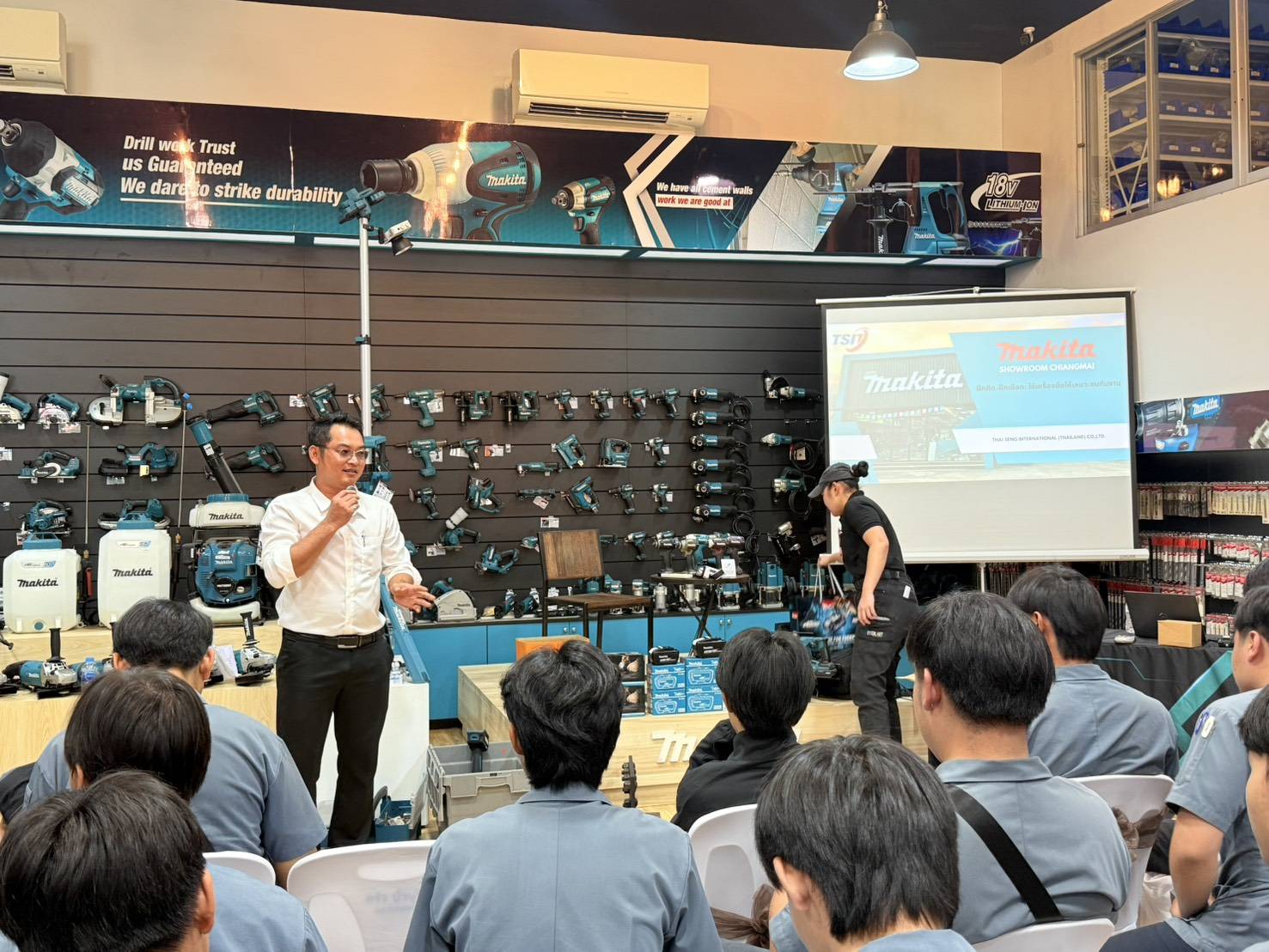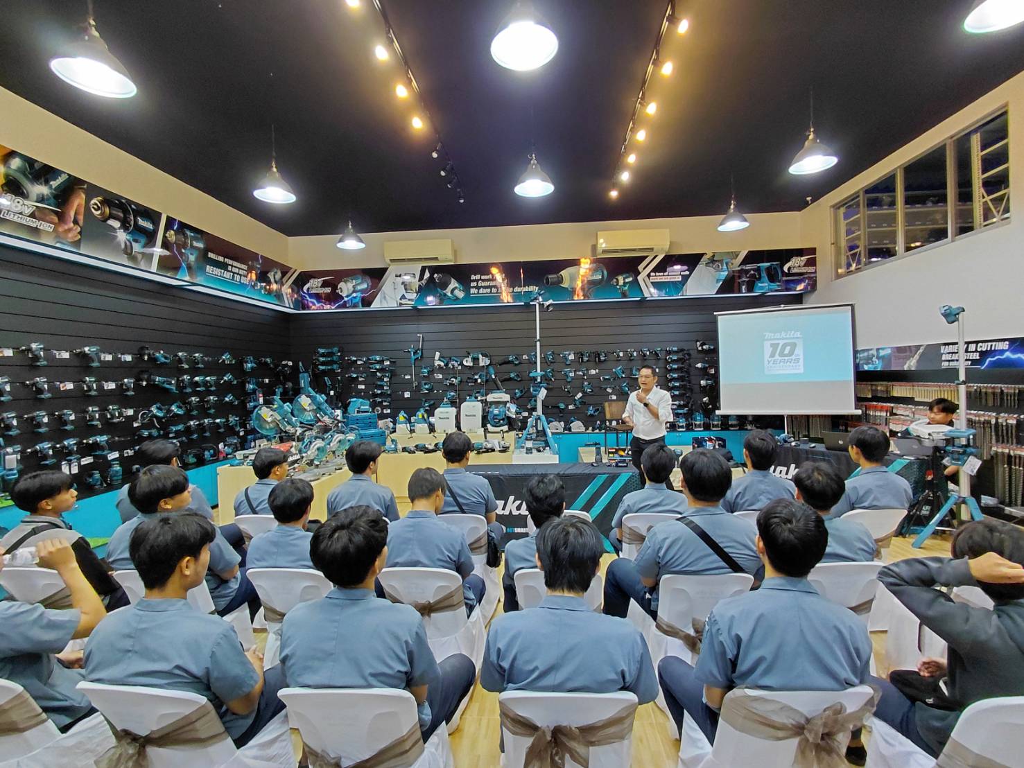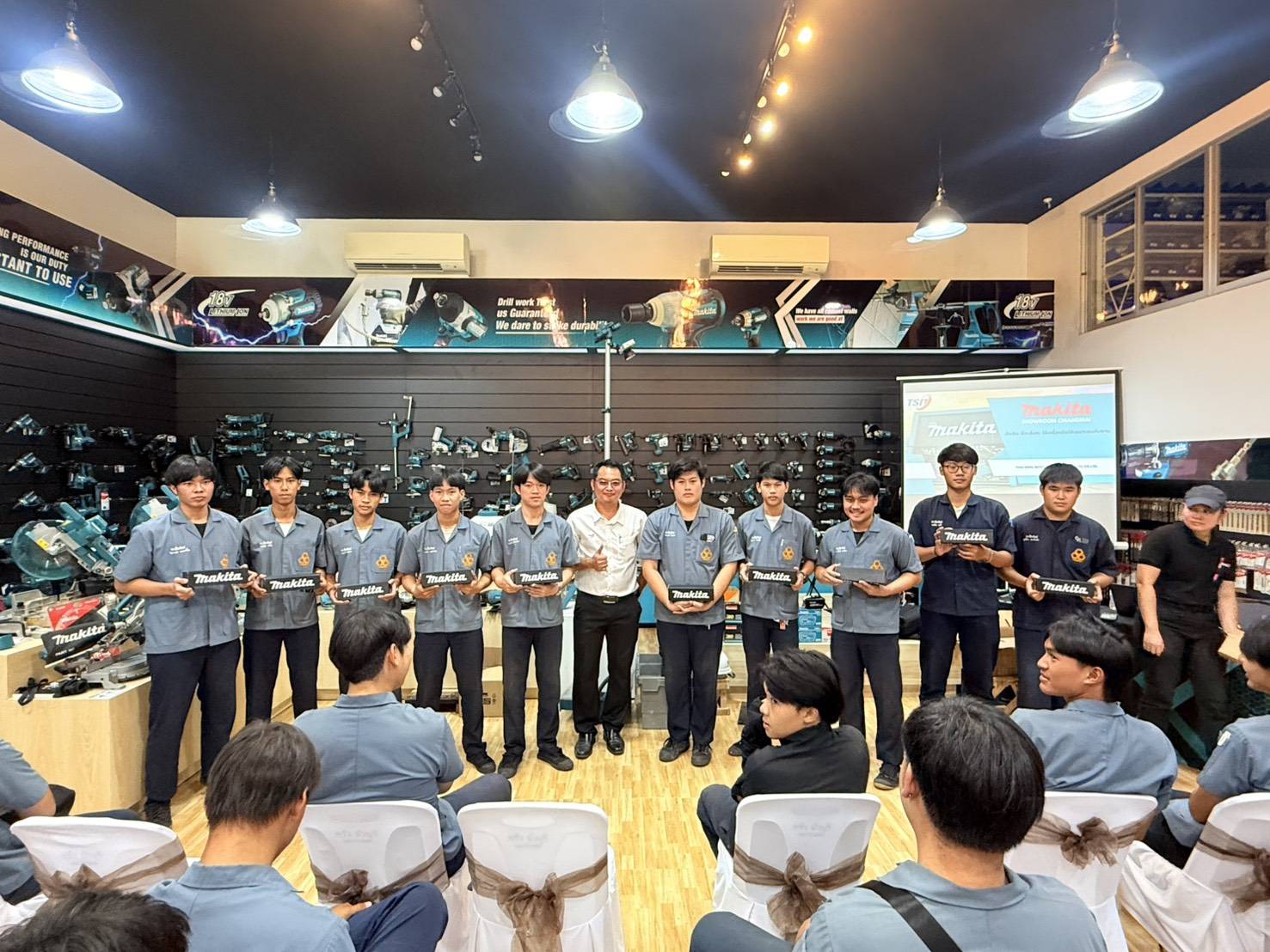 วันพฤหัสบดี ที่ 13 พฤศจิกายน พ.ศ.2568 ดร.วัชรพงศ์ ฝั้นติ๊บ ผู้อำนวยการวิทยาลัยเทคนิคเชียงใหม่ ปฏิบัติหน้าที่ผู้อำนวยการสำนักงานอาชีวศึกษาจังหวัดเชียงใหม่ และรักษาการในตำแหน่งที่ปรึกษาด้านนโยบายและแผน สำนักงานคณะกรรมการการอาชีวศึกษา มอบหมายให้คณะครูและนักเรียนนักศึกษา แผนกวิชาช่างก่อสร้าง วิทยาลัยเทคนิคเชียงใหม่ เข้าร่วมกิจกรรมครบรอบ 10 ปี ของโชว์รูม Makita เพื่อให้นักเรียน นักศึกษาได้ ความรู้เกี่ยวกับการพัฒนานวัตกรรมเทคโนโลยีของเครื่องมือ Makita และทดลองการใช้งานเครื่องมือจริง ในวันที่ 13 พฤศจิกายน 2568 ณ Makita Showroom Chiang Mai จังหวัดเชียงใหม่