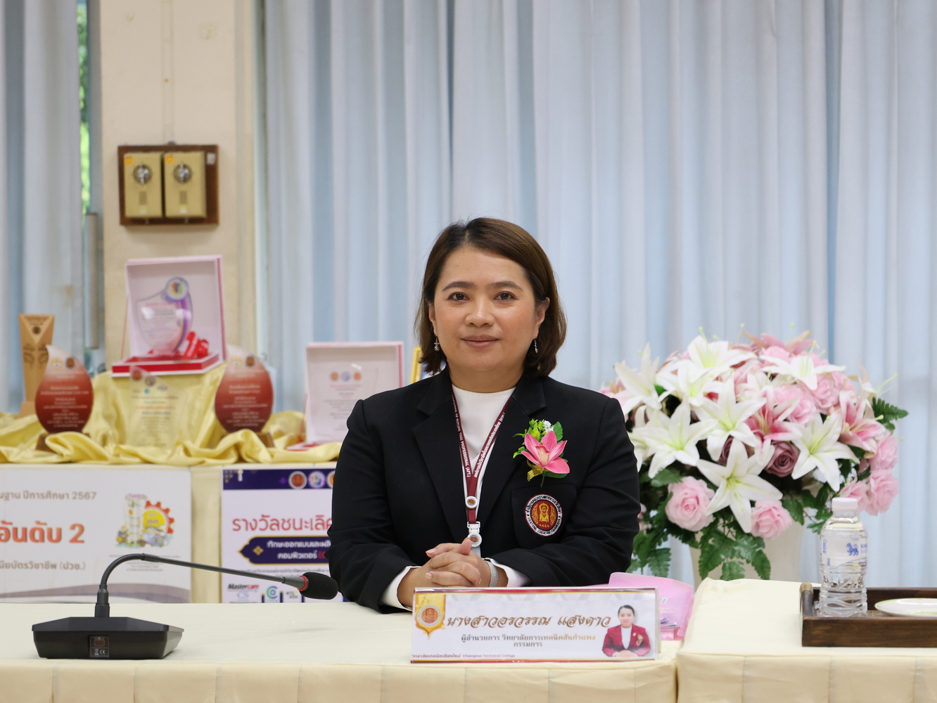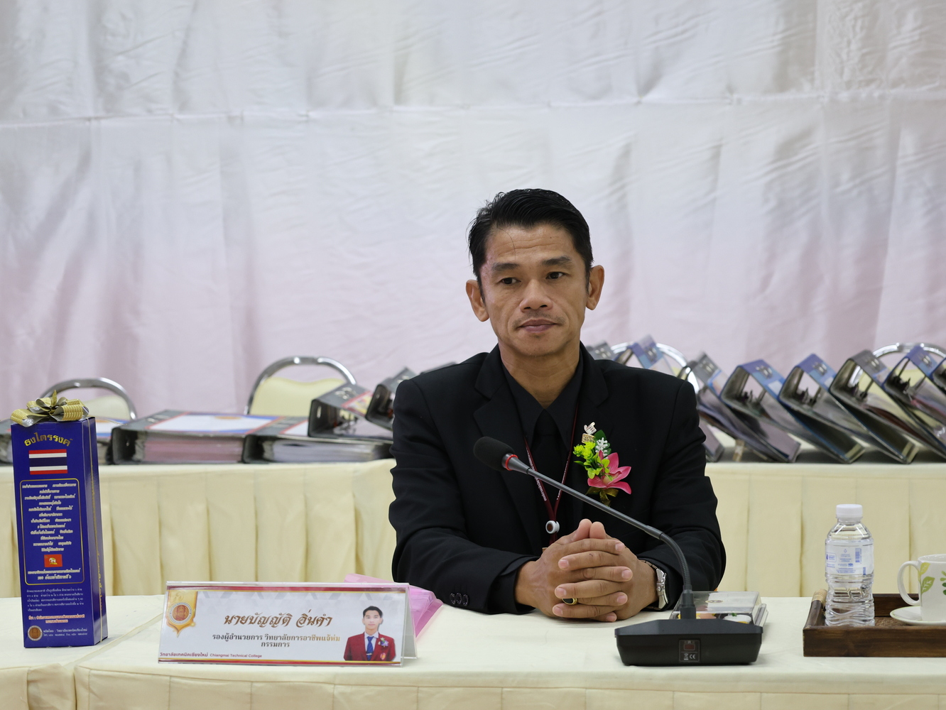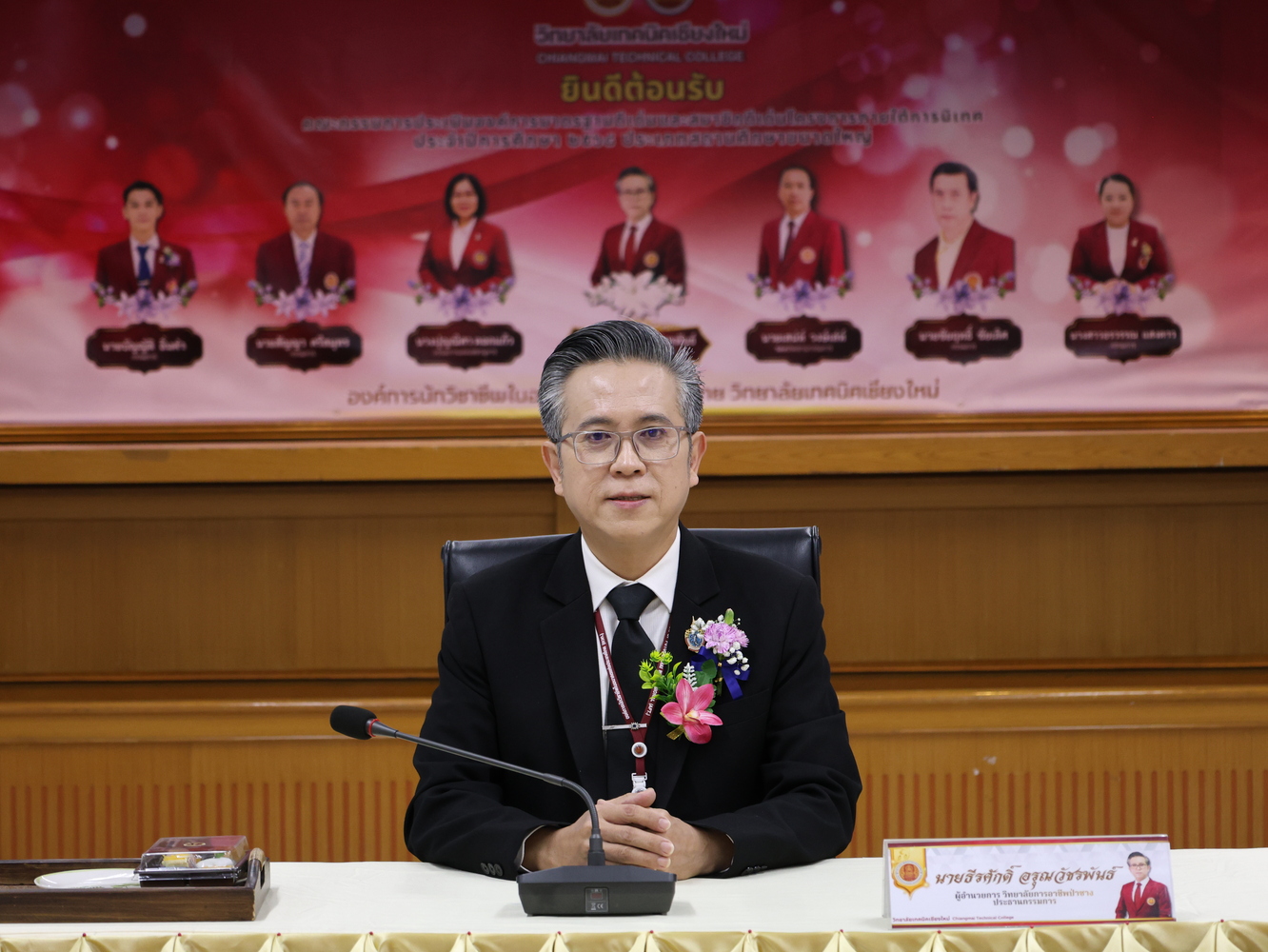 วันพุธที่ 19 พฤศจิกายน พ.ศ. 2568 ดร.วัชรพงศ์ ฝั้นติ๊บ ผู้อำนวยการวิทยาลัยเทคนิคเชียงใหม่ ปฏิบัติหน้าที่ผู้อำนวยการสำนักงานอาชีวศึกษาจังหวัดเชียงใหม่ และรักษาการในตำแหน่งที่ปรึกษาด้านนโยบายและแผน สำนักงานคณะกรรมการการอาชีวศึกษา มอบหมายให้ นายสุจินต์ วังใหม่ รองผู้อำนวยการฝ่ายพัฒนากิจการนักเรียน นักศึกษา และ นางเสาวคนธ์ บุญญประภา รองผู้อำนวยการฝ่ายวิชาการ