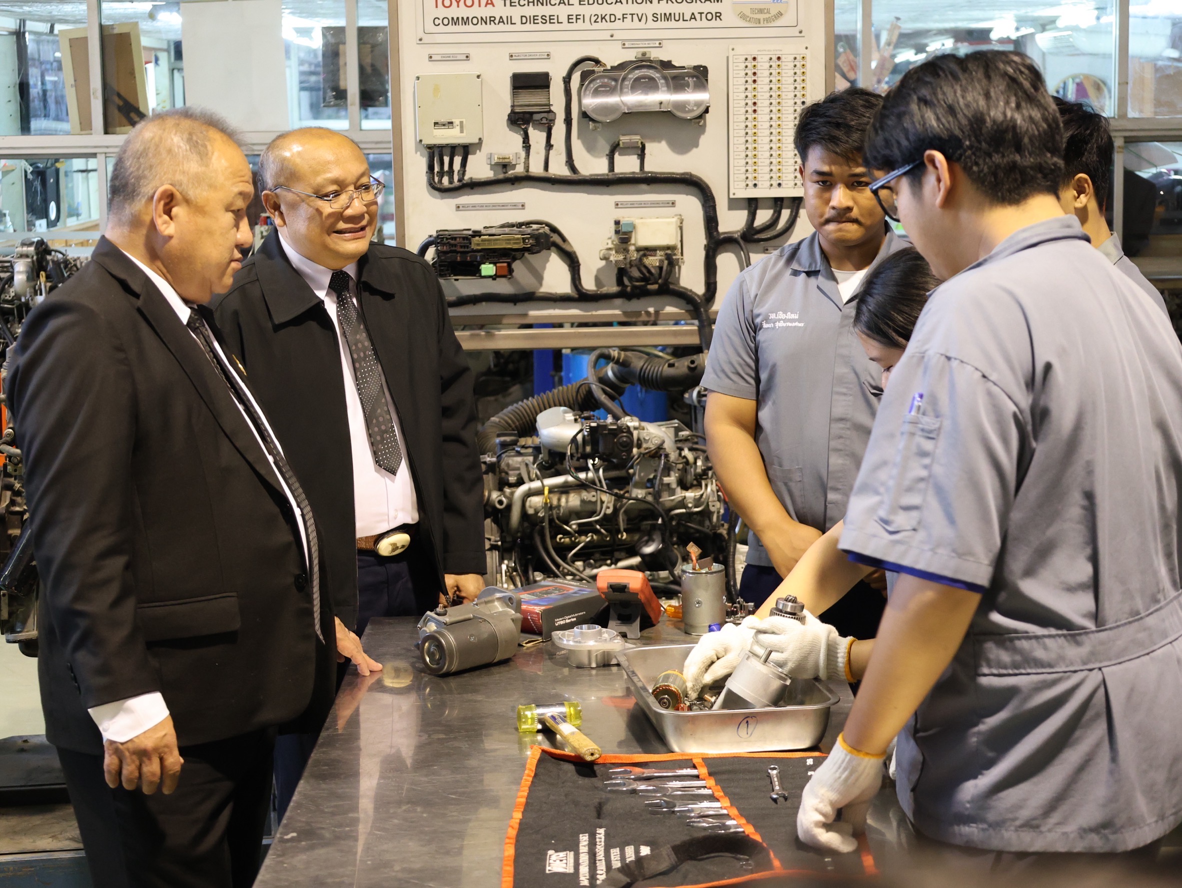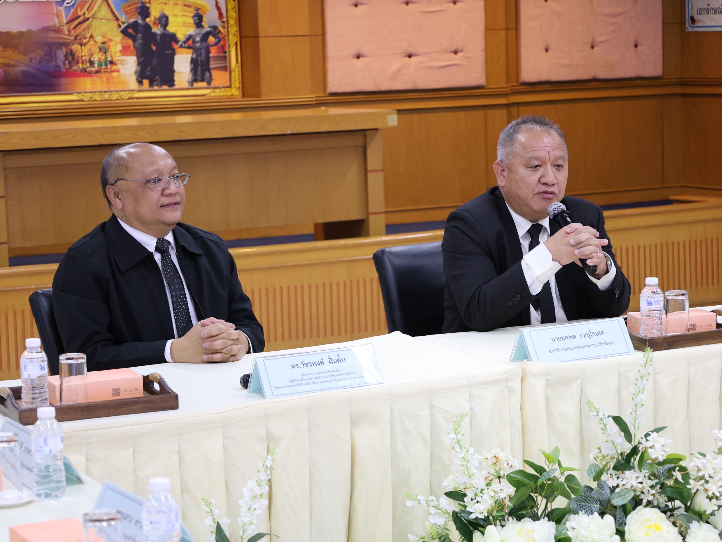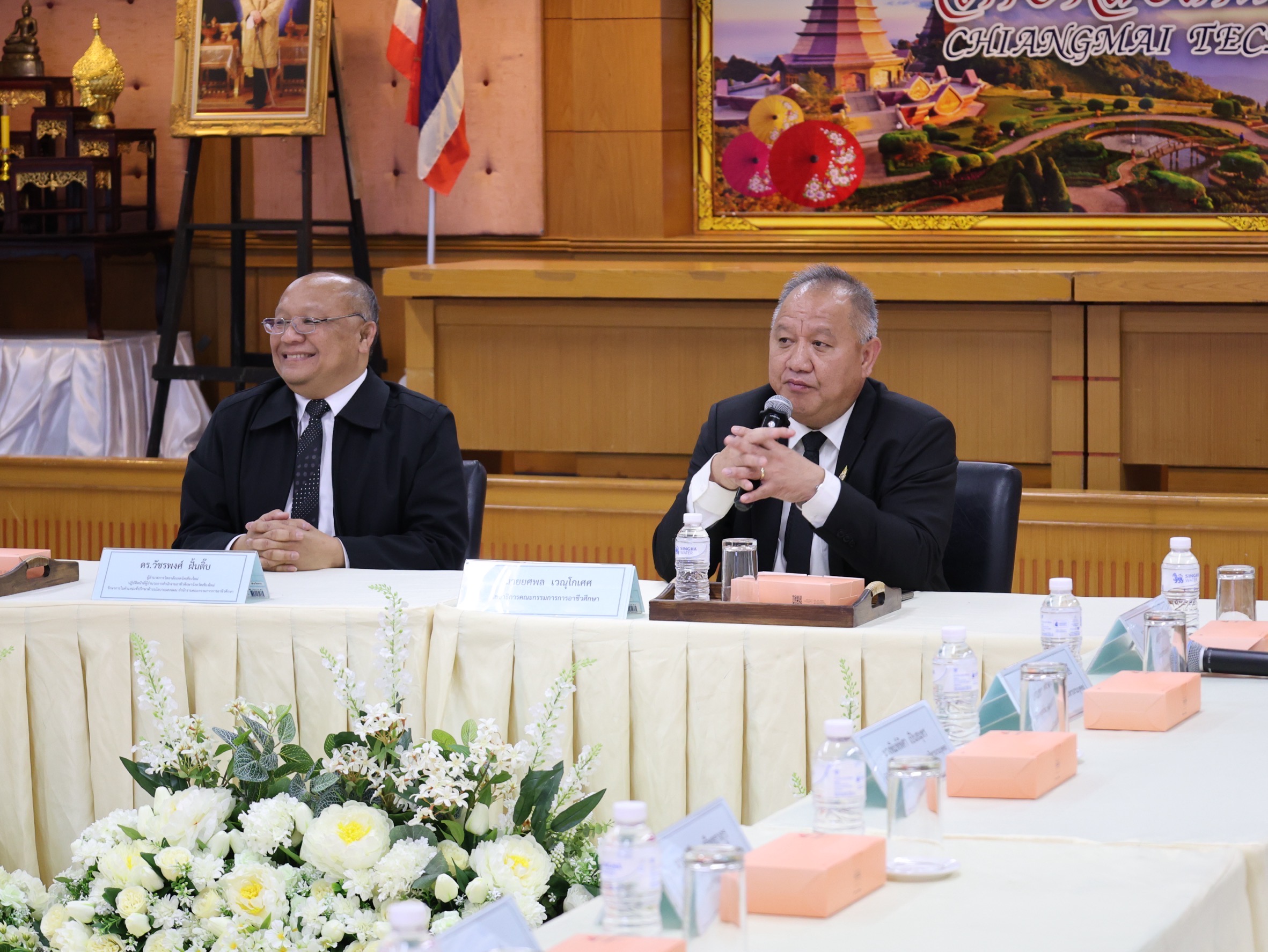 วันศุกร์ ที่ 21 พฤศจิกายน พ.ศ. 2568 นายยศพล เวณุโกเศศ เลขาธิการคณะกรรมการการอาชีวศึกษา พร้อมด้วย ดร.วัชรพงศ์ ฝั้นติ๊บ ผู้อำนวยการวิทยาลัยเทคนิคเชียงใหม่ ปฏิบัติหน้าที่ผู้อำนวยการสำนักงานอาชีวศึกษาจังหวัดเชียงใหม่ และรักษาการในตำแหน่งที่ปรึกษาด้านนโยบายและแผน สำนักงานคณะกรรมการการอาชีวศึกษา ลงพื้นที่ตรวจเยี่ยมการจัดการเรียนการสอนสถานศึกษาในสังกัดสำนักงานอาชีวศึกษาจังหวัดเชียงใหม่ และร่วมรับฟังข้อเสนอแนะพร้อมกับแลกเปลี่ยนความคิดเห็น และสะท้อนผลลัพธ์สำหรับจาก การลงพื้นที่เพื่อศึกษาข้อมูลเชิงพื้นที่การปฏิบัติงาน ของข้าราชการครูและบุคลากรทางการศึกษา โดยคณะกรรมการข้าราชการครูและบุคลากรทางการศึกษา(ก.ค.ศ.)กระทรวงศึกษาธิการ ในการตรวจเยี่ยมครั้งนี้ นายยศพลได้กล่าวทักทาย มอบนโยบาย และให้โอวาทแก่ผู้บริหาร ครู และนักศึกษา โดยเน้นการพัฒนาสมรรถนะผู้เรียนให้สอดคล้องกับอุตสาหกรรมยุคใหม่ การส่งเสริมทักษะที่จำเป็นในตลาดแรงงาน และการยกระดับคุณภาพการจัดการเรียนการสอนของอาชีวศึกษาให้มีความทันสมัยและตอบโจทย์ความต้องการของประเทศ ดร.วัชรพงศ์ ฝั้นติ๊บ กล่าวไว้ว่า “การลงพื้นที่ตรวจเยี่ยมในครั้งนี้ เป็นโอกาสสำคัญในการรับฟังข้อมูลจริงจากสถานศึกษา ทั้งในด้านการจัดการเรียนการสอน ความพร้อมของครูผู้สอน และศักยภาพของผู้เรียน ซึ่งข้อมูลทั้งหมดจะเป็นประโยชน์ต่อการพัฒนาคุณภาพอาชีวศึกษาในจังหวัดเชียงใหม่ให้ก้าวหน้าอย่างเป็นรูปธรรม ในโอกาสนี้ได้รับเกียรติจากคณะกรรมการข้าราชการครูและบุคลากรทางการศึกษา (ก.ค.ศ.) กระทรวงศึกษาธิการ นำโดย นางเบญจวรรณ ปกป้อง ผู้อำนวยการสำนักอำนวยการ พร้อมคณะ ได้กล่าวถึงหลักเกณฑ์และแนวทางการรับครูผู้สอนวุฒิปริญญาตรีในสาขาที่ตรงกับความต้องการของสถานศึกษา เพื่อให้การคัดเลือกบุคลากรเป็นไปตามมาตรฐานวิชาชีพและสามารถรองรับภารกิจการจัดการเรียนการสอนอย่างมีประสิทธิภาพ ดาวน์โหลดรูปภาพเพิ่มเติมได้ที่ https://drive.google.com/drive/folders/1KtB1LeO0ruH1hAMzMHCd7Xolhh9SfKUh และดาวน์โหลดวิดิโอ HD ได้ที่ https://drive.google.com/drive/folders/19fvMQuPdv7SqTbzlDPpR7TsjayodAdDD