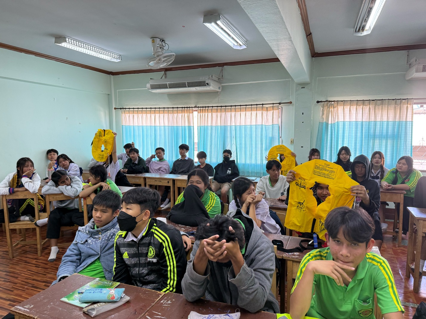 2.โรงเรียนเทศบาลวัดศรีดอนไชย(แผนกวิชาธุรกิจการบิน) รายวิชา การใช้อุปกรณ์ safety บนเครื่องบิน