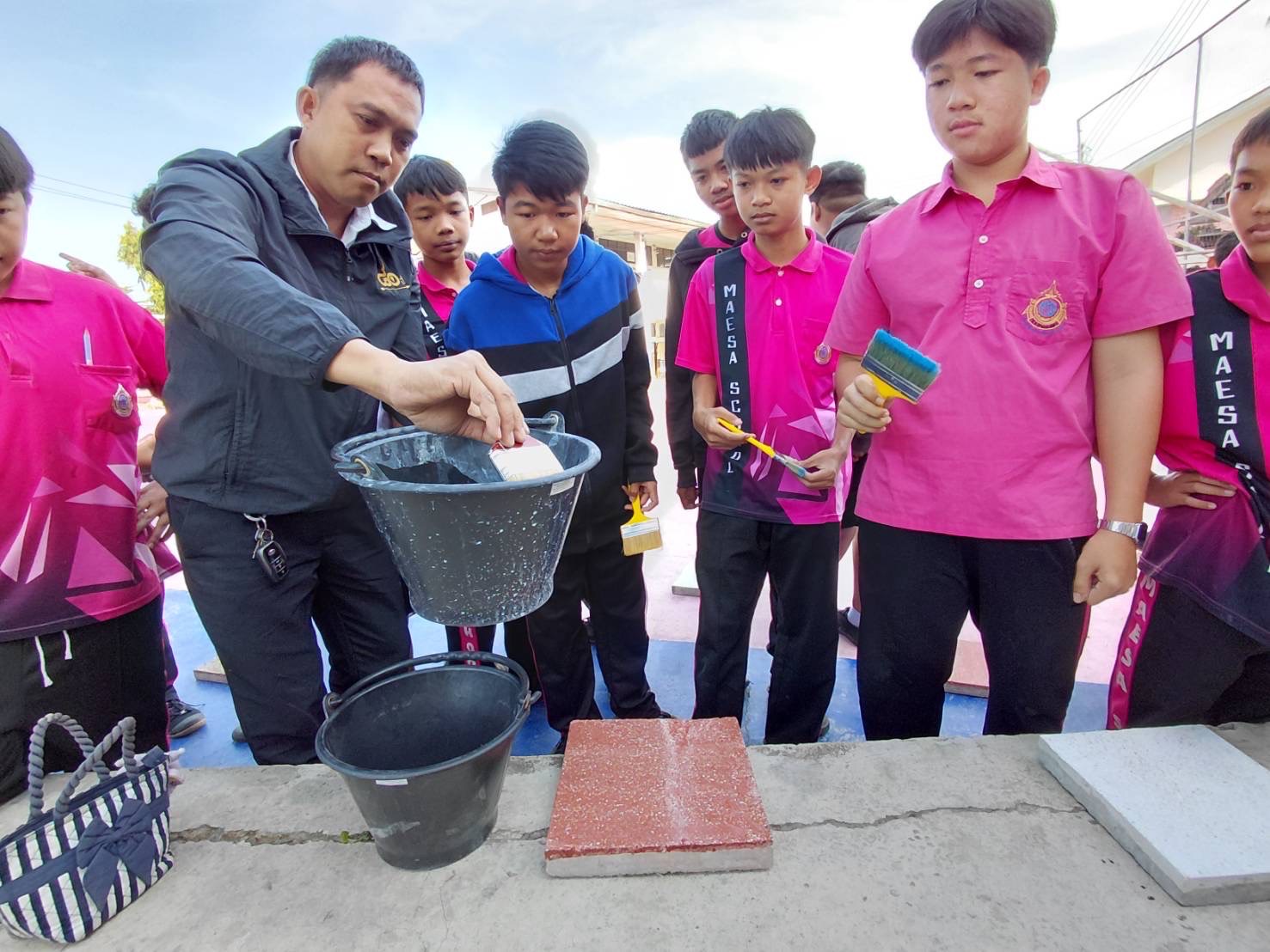 3.โรงเรียนบ้านแม่สา ตำบลแม่สา อำเภอแม่ริม จังหวัดเชียงใหม่ (แผนกวิชาช่างก่อสร้าง) รายวิชา งานปูน เรื่องการทำแผ่นพื้นทางเดิน