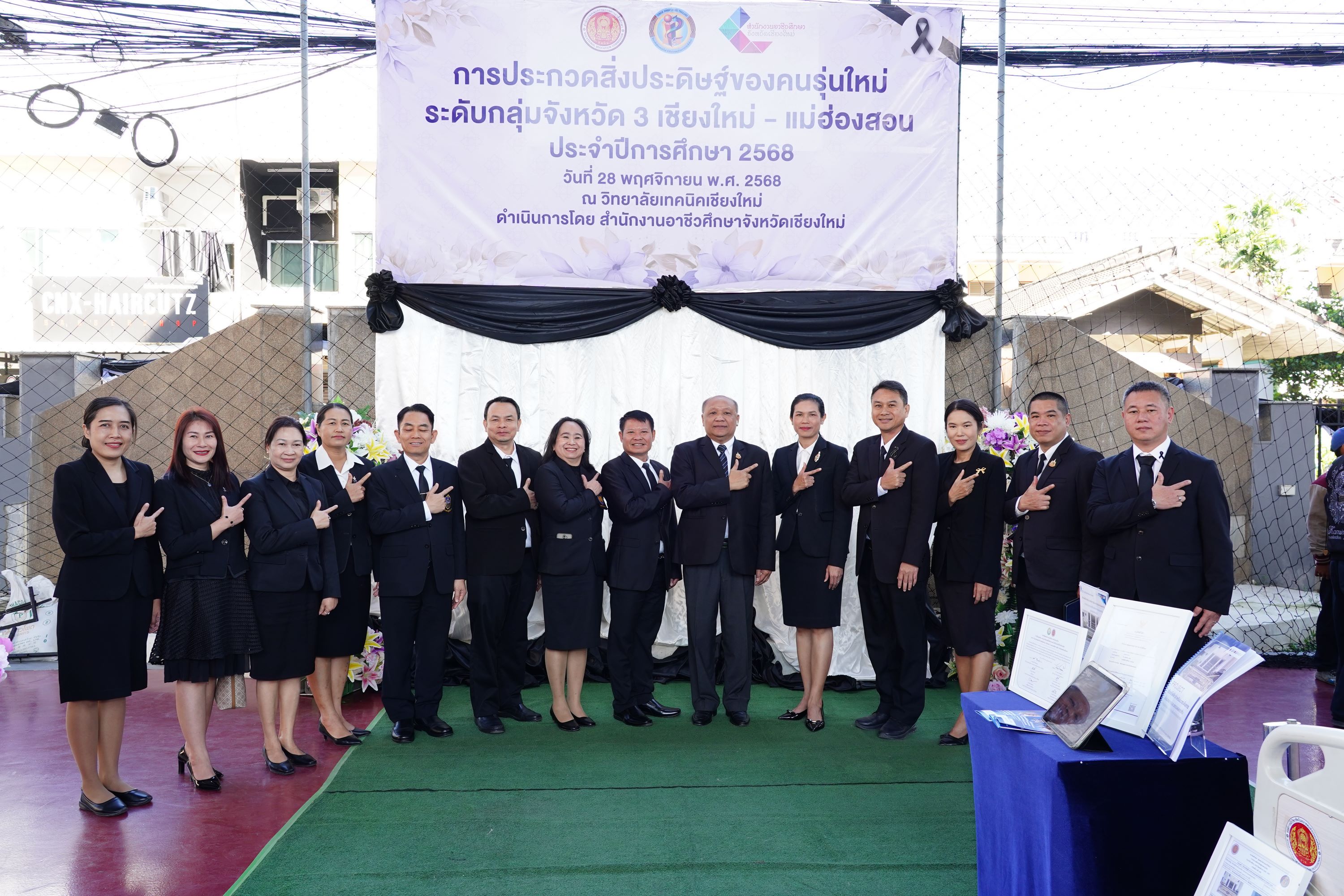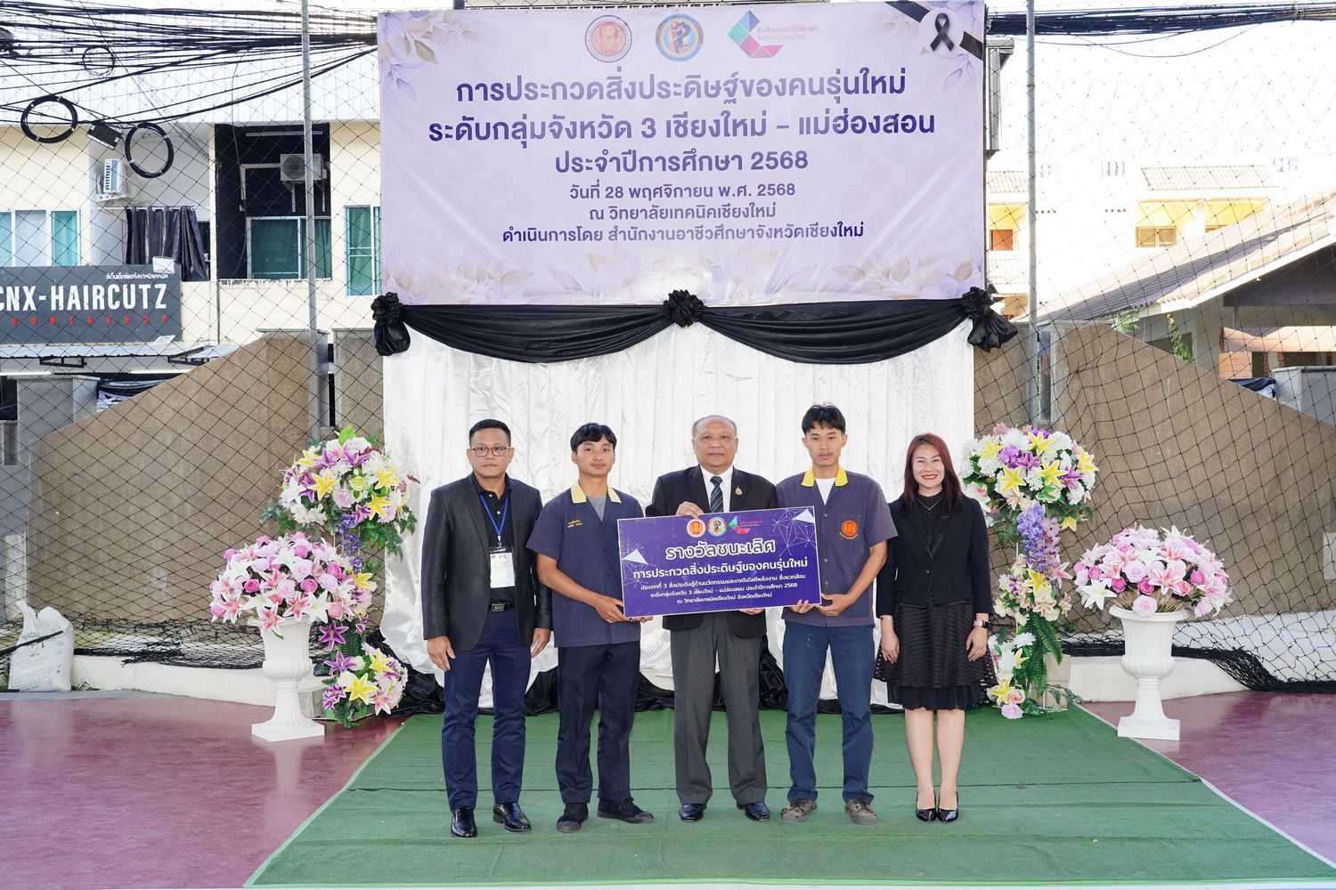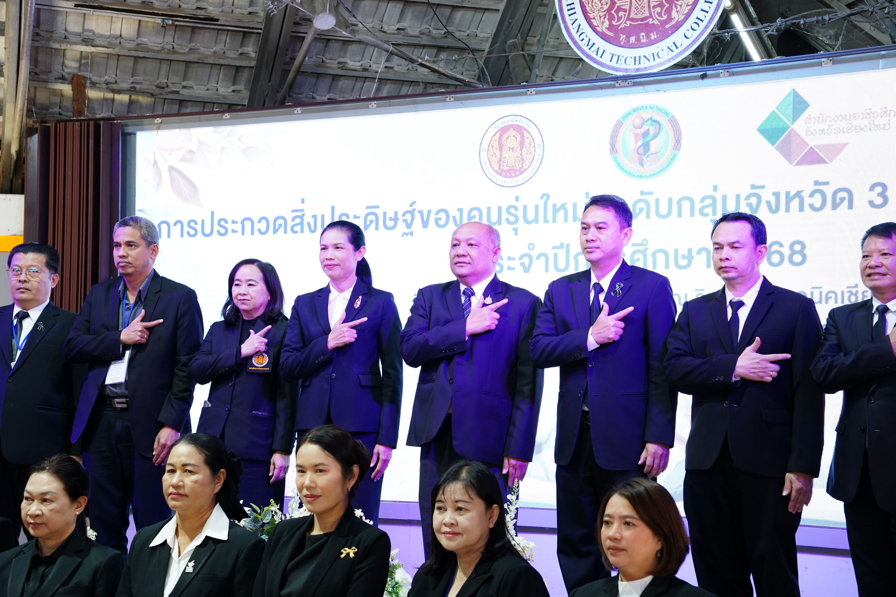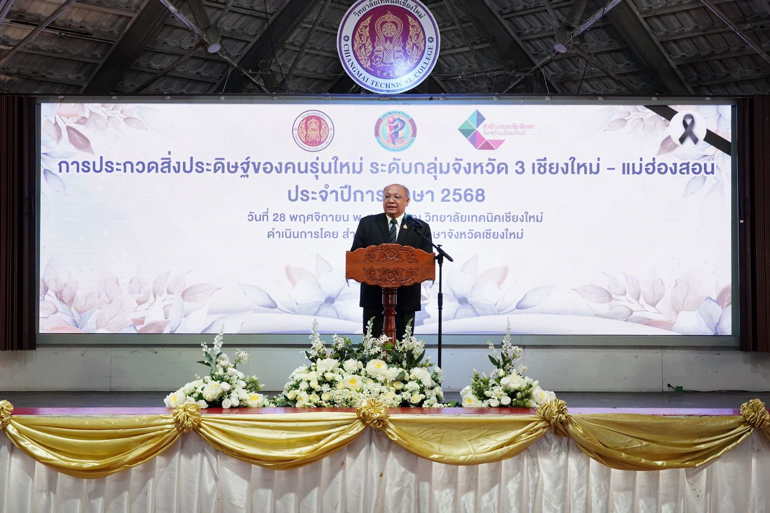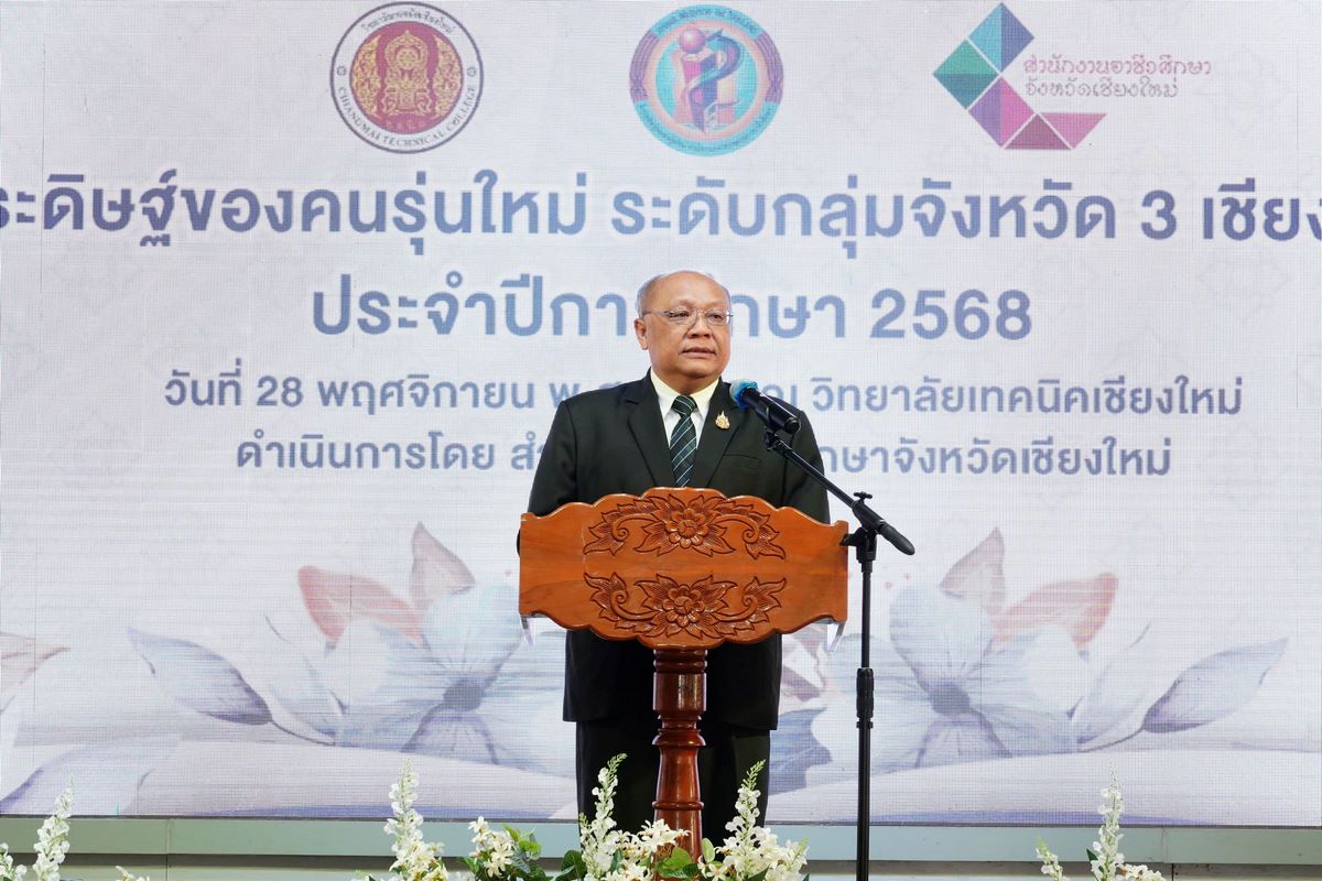 ดร.วัชรพงศ์ ฝั้นติ๊บ ผู้อำนวยการวิทยาลัยเทคนิคเชียงใหม่ ปฏิบัติหน้าที่ผู้อำนวยการสำนักงานอาชีวศึกษาจังหวัดเชียงใหม่ และรักษาการในตำแหน่งที่ปรึกษาด้านนโยบายและแผน สำนักงานคณะกรรมการการอาชีวศึกษา ให้เกียรติเป็นประธานในพิธีเปิดงาน การประกวดสิ่งประดิษฐ์ของคนรุ่นใหม่ ระดับกลุ่มจังหวัด 3 (เชียงใหม่ – แม่ฮ่องสอน) ประจำปีการศึกษา 2568 พร้อมด้วย คณะผู้บริหาร คณะครู คณะกรรมการดำเนินงาน คณะกรรมการตัดสินการประเมิน ผู้เข้าร่วมประกวดสิ่งประดิษฐ์ ในสังกัดสำนักงานอาชีวศึกษาจังหวัดเชียงใหม่และจังหวัดแม่ฮ่องสอน ภาครัฐและภาคเอกชน เข้าร่วมพิธีการเปิดงานฯในครั้งนี้ ซึ่งมีวัตถุประสงค์เพื่อคัดเลือกสุดยอดผลงานสิ่งประดิษฐ์แต่ละประเภท เพื่อเป็นตัวแทนเข้าสู่การประกวดสิ่งประดิษฐ์ของคนรุ่นใหม่ ระดับภาค ภาคเหนือ ซึ่งในครั้งนี้มีจำนวนผลงานที่เข้าร่วมการประกวดสิ่งประดิษฐ์ 7 ประเภท จำนวนทั้งสิ้น 92 ผลงาน