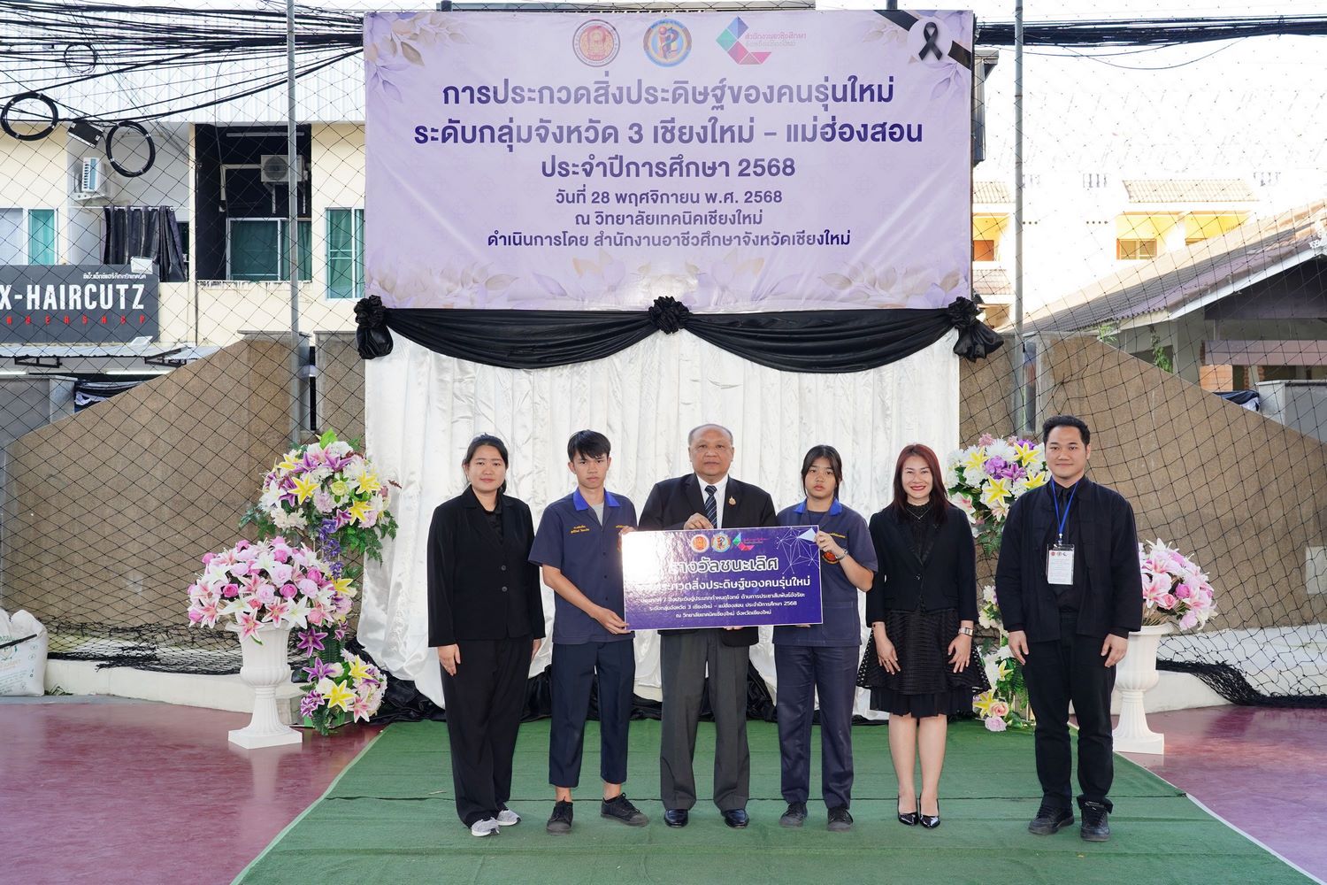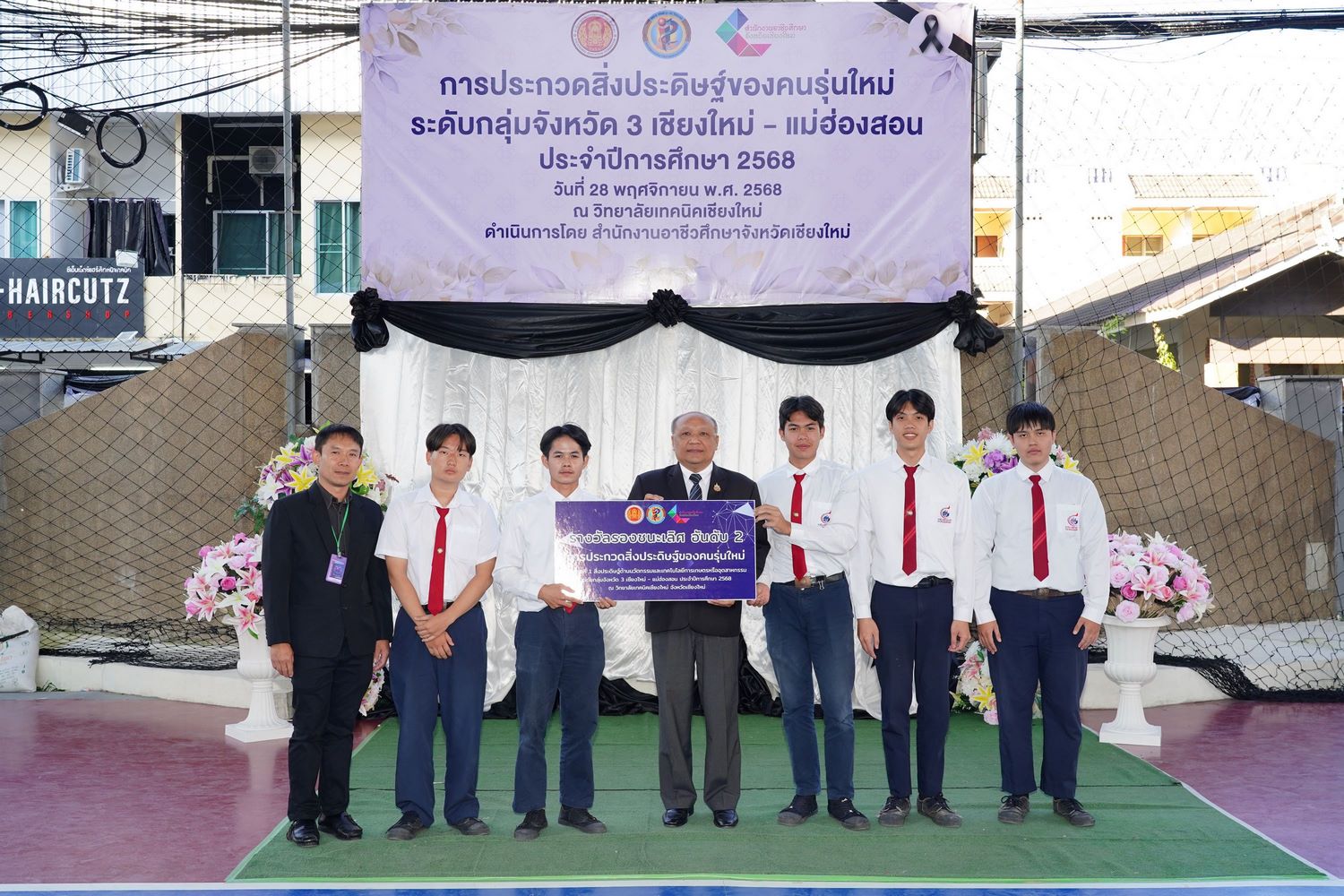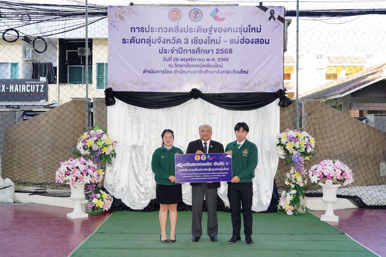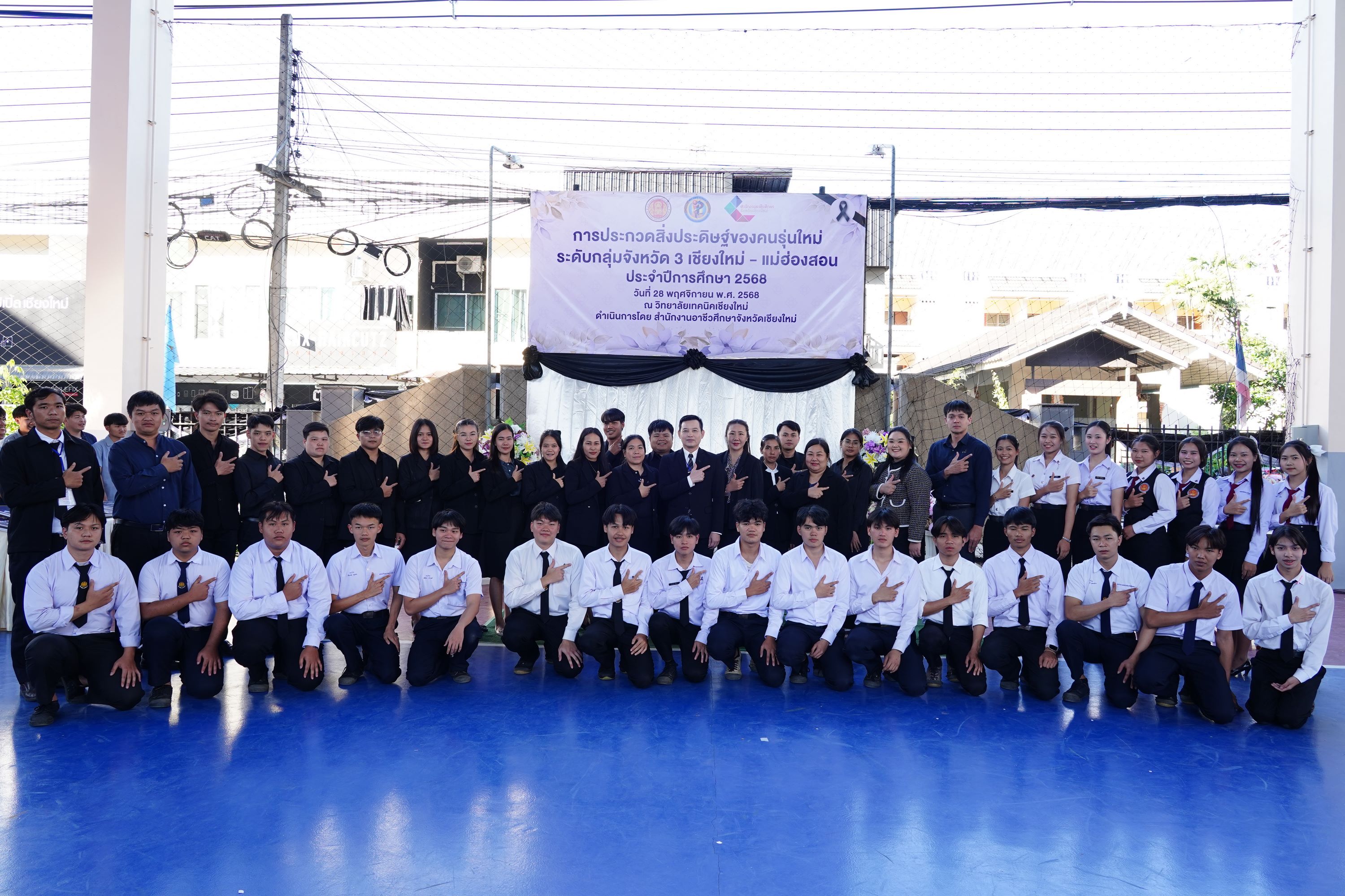 ดร.วัชรพงศ์ ฝั้นติ๊บ ผู้อำนวยการวิทยาลัยเทคนิคเชียงใหม่ ปฏิบัติหน้าที่ผู้อำนวยการสำนักงานอาชีวศึกษาจังหวัดเชียงใหม่ และรักษาการในตำแหน่งที่ปรึกษาด้านนโยบายและแผน สำนักงานคณะกรรมการการอาชีวศึกษา ให้เกียรติเป็นประธานในพิธีเปิดงาน การประกวดสิ่งประดิษฐ์ของคนรุ่นใหม่ ระดับกลุ่มจังหวัด 3 (เชียงใหม่ – แม่ฮ่องสอน) ประจำปีการศึกษา 2568 พร้อมด้วย คณะผู้บริหาร คณะครู คณะกรรมการดำเนินงาน คณะกรรมการตัดสินการประเมิน ผู้เข้าร่วมประกวดสิ่งประดิษฐ์ ในสังกัดสำนักงานอาชีวศึกษาจังหวัดเชียงใหม่และจังหวัดแม่ฮ่องสอน ภาครัฐและภาคเอกชน เข้าร่วมพิธีการเปิดงานฯในครั้งนี้ ซึ่งมีวัตถุประสงค์เพื่อคัดเลือกสุดยอดผลงานสิ่งประดิษฐ์แต่ละประเภท เพื่อเป็นตัวแทนเข้าสู่การประกวดสิ่งประดิษฐ์ของคนรุ่นใหม่ ระดับภาค ภาคเหนือ ซึ่งในครั้งนี้มีจำนวนผลงานที่เข้าร่วมการประกวดสิ่งประดิษฐ์ 7 ประเภท จำนวนทั้งสิ้น 92 ผลงาน