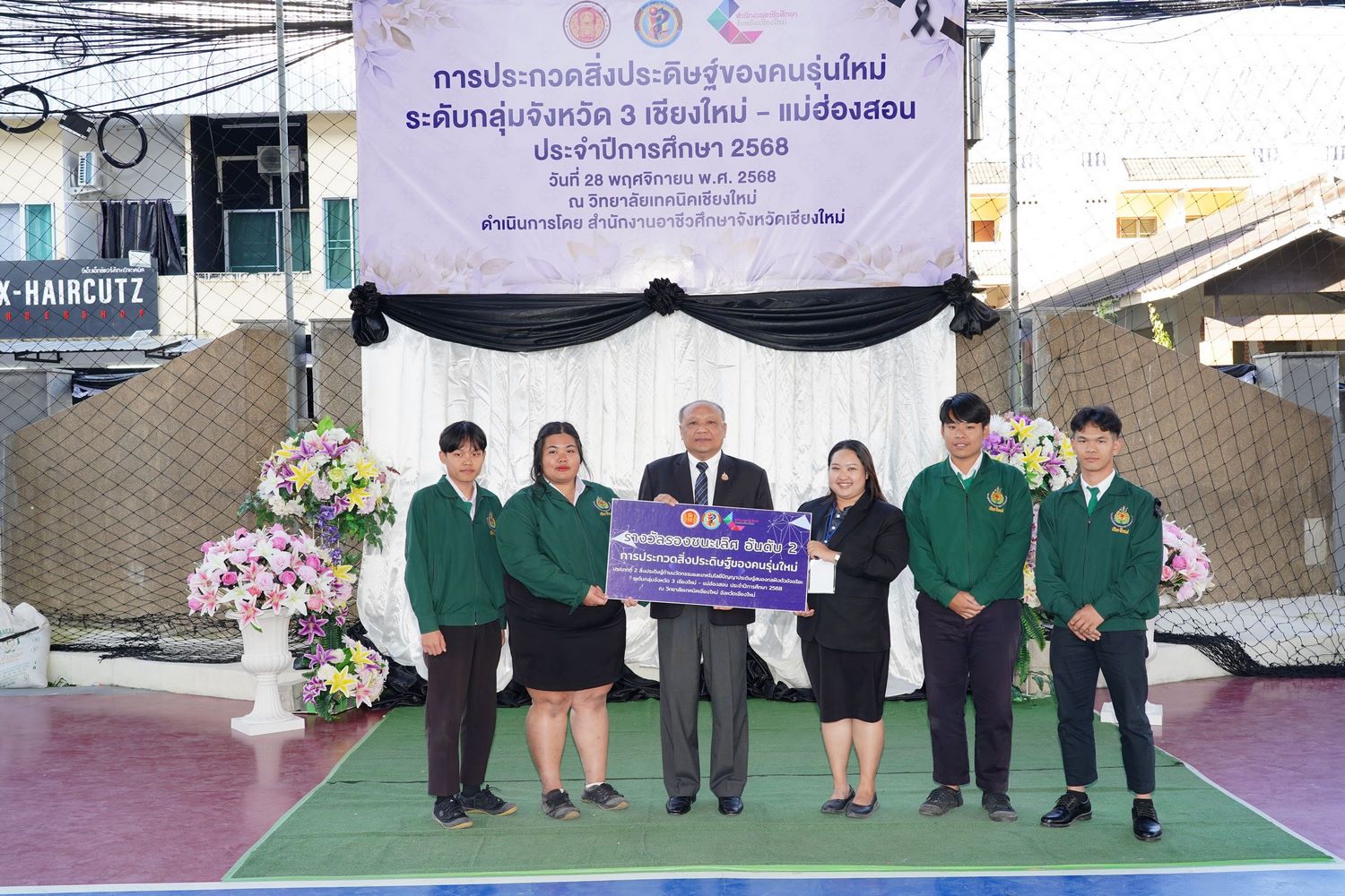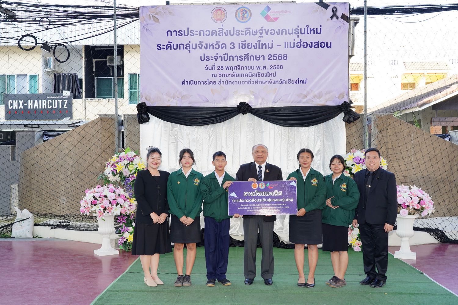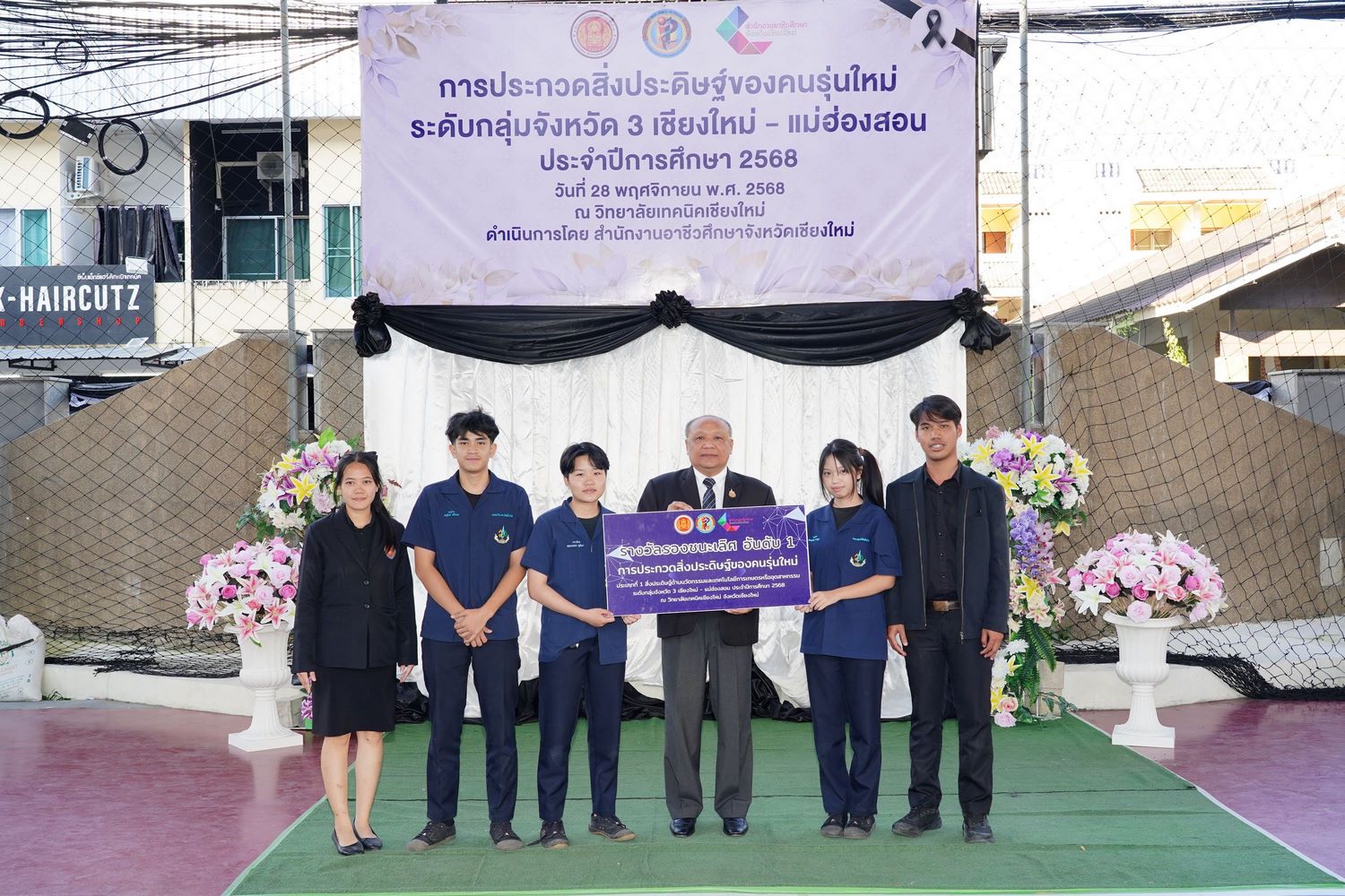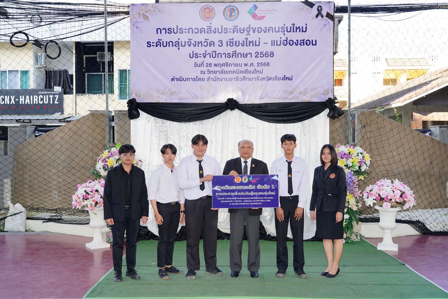 ดร.วัชรพงศ์ ฝั้นติ๊บ ผู้อำนวยการวิทยาลัยเทคนิคเชียงใหม่ ปฏิบัติหน้าที่ผู้อำนวยการสำนักงานอาชีวศึกษาจังหวัดเชียงใหม่ และรักษาการในตำแหน่งที่ปรึกษาด้านนโยบายและแผน สำนักงานคณะกรรมการการอาชีวศึกษา ให้เกียรติเป็นประธานในพิธีเปิดงาน การประกวดสิ่งประดิษฐ์ของคนรุ่นใหม่ ระดับกลุ่มจังหวัด 3 (เชียงใหม่ – แม่ฮ่องสอน) ประจำปีการศึกษา 2568 พร้อมด้วย คณะผู้บริหาร คณะครู คณะกรรมการดำเนินงาน คณะกรรมการตัดสินการประเมิน ผู้เข้าร่วมประกวดสิ่งประดิษฐ์ ในสังกัดสำนักงานอาชีวศึกษาจังหวัดเชียงใหม่และจังหวัดแม่ฮ่องสอน ภาครัฐและภาคเอกชน เข้าร่วมพิธีการเปิดงานฯในครั้งนี้ ซึ่งมีวัตถุประสงค์เพื่อคัดเลือกสุดยอดผลงานสิ่งประดิษฐ์แต่ละประเภท เพื่อเป็นตัวแทนเข้าสู่การประกวดสิ่งประดิษฐ์ของคนรุ่นใหม่ ระดับภาค ภาคเหนือ ซึ่งในครั้งนี้มีจำนวนผลงานที่เข้าร่วมการประกวดสิ่งประดิษฐ์ 7 ประเภท จำนวนทั้งสิ้น 92 ผลงาน