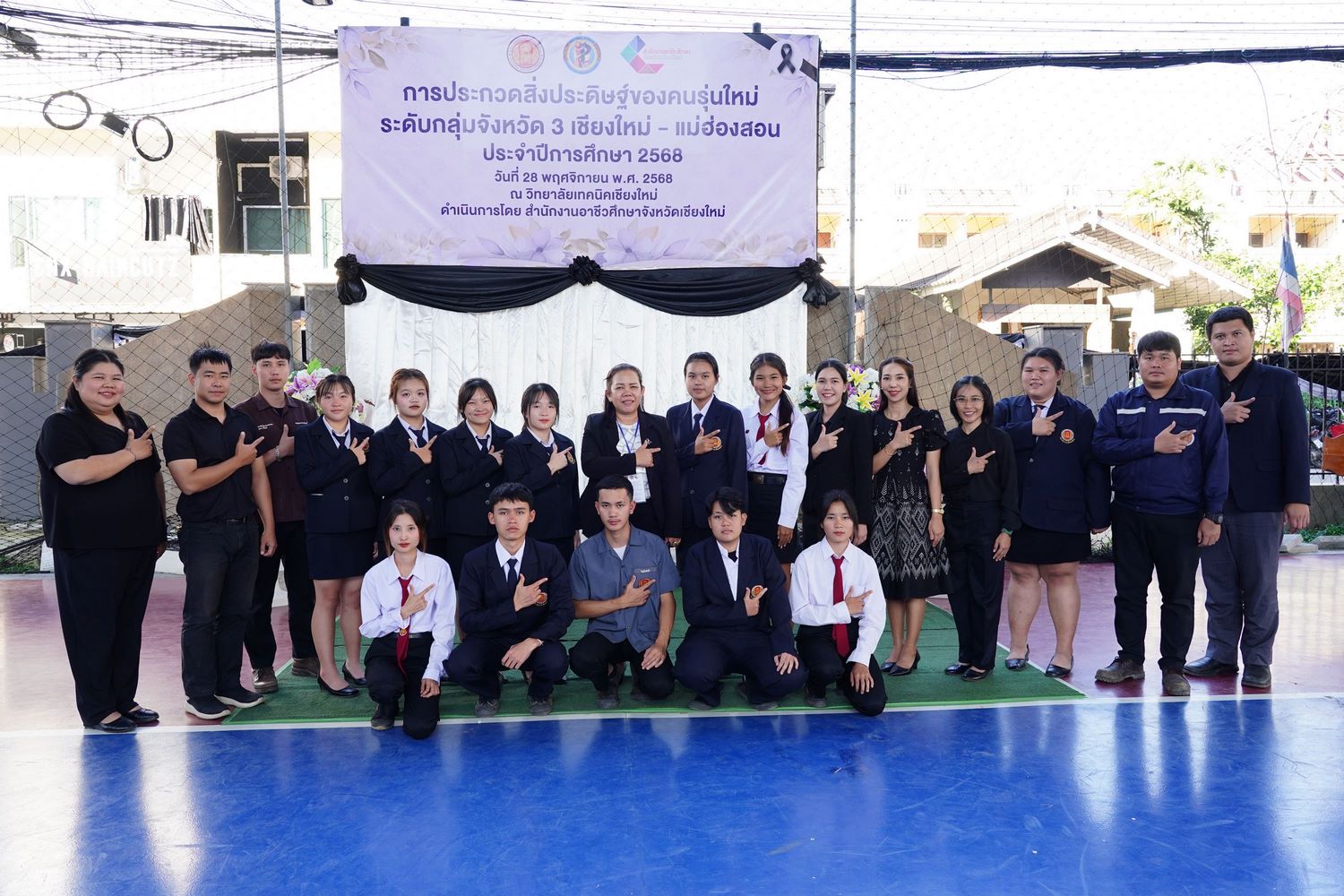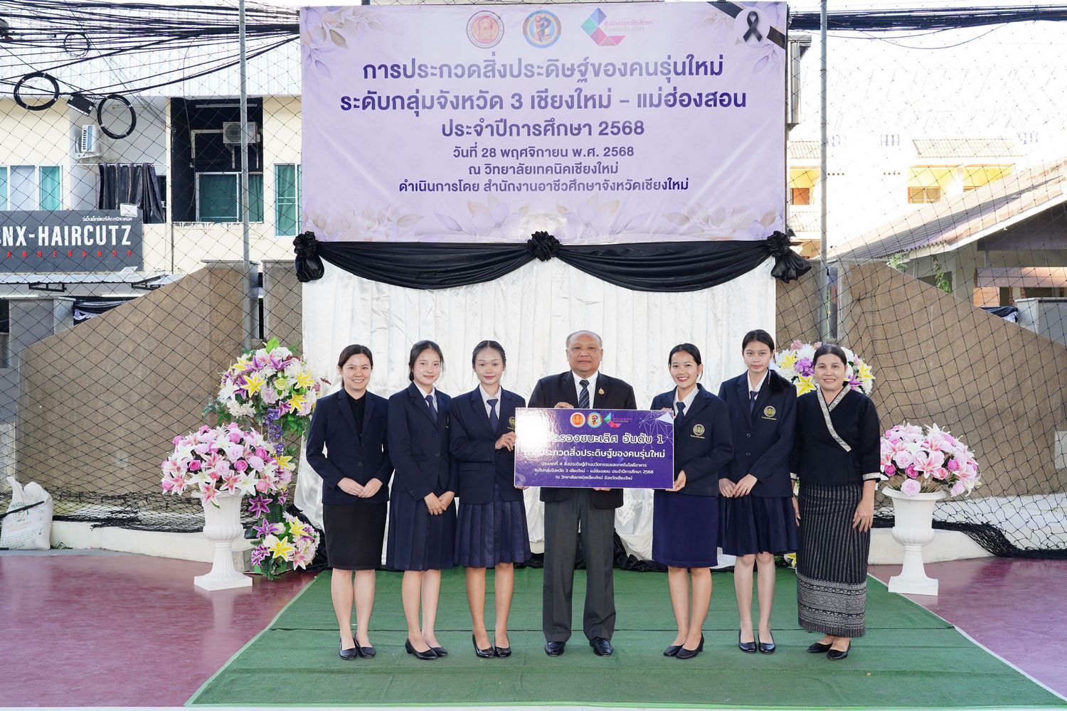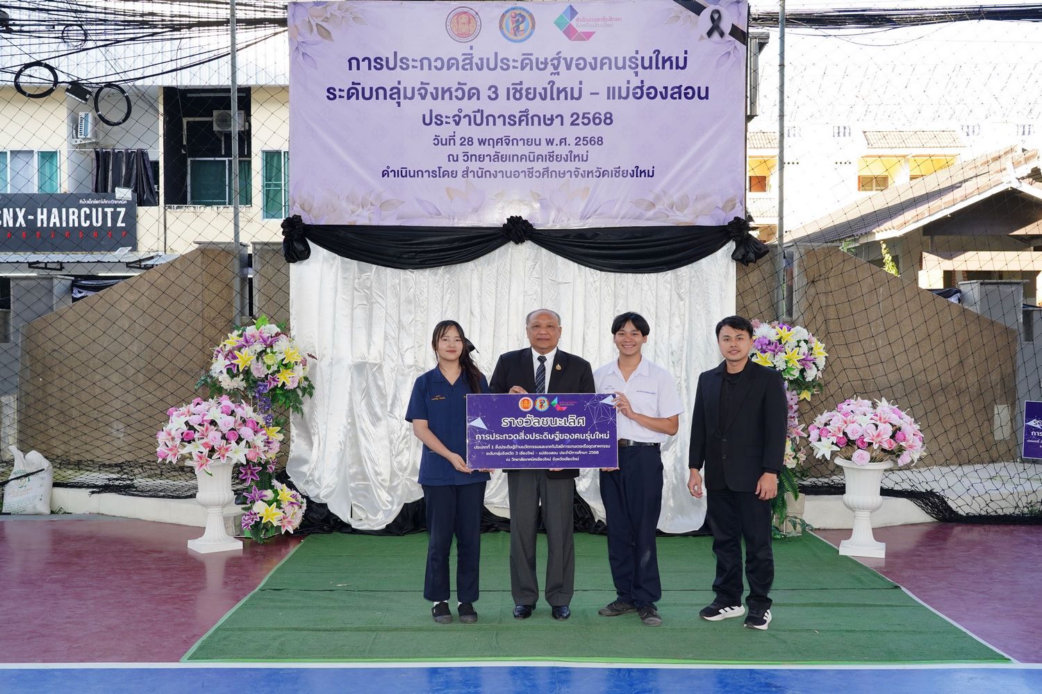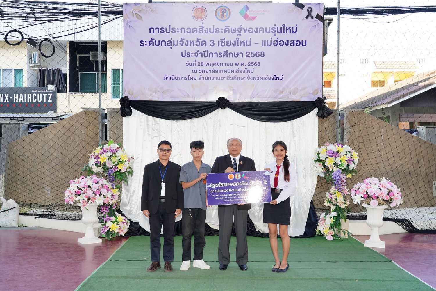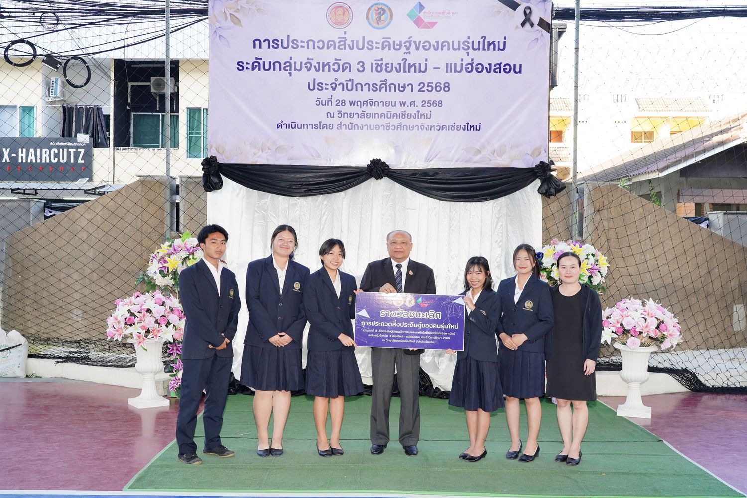 ดร.วัชรพงศ์ ฝั้นติ๊บ ผู้อำนวยการวิทยาลัยเทคนิคเชียงใหม่ ปฏิบัติหน้าที่ผู้อำนวยการสำนักงานอาชีวศึกษาจังหวัดเชียงใหม่ และรักษาการในตำแหน่งที่ปรึกษาด้านนโยบายและแผน สำนักงานคณะกรรมการการอาชีวศึกษา ให้เกียรติเป็นประธานในพิธีเปิดงาน การประกวดสิ่งประดิษฐ์ของคนรุ่นใหม่ ระดับกลุ่มจังหวัด 3 (เชียงใหม่ – แม่ฮ่องสอน) ประจำปีการศึกษา 2568 พร้อมด้วย คณะผู้บริหาร คณะครู คณะกรรมการดำเนินงาน คณะกรรมการตัดสินการประเมิน ผู้เข้าร่วมประกวดสิ่งประดิษฐ์ ในสังกัดสำนักงานอาชีวศึกษาจังหวัดเชียงใหม่และจังหวัดแม่ฮ่องสอน ภาครัฐและภาคเอกชน เข้าร่วมพิธีการเปิดงานฯในครั้งนี้ ซึ่งมีวัตถุประสงค์เพื่อคัดเลือกสุดยอดผลงานสิ่งประดิษฐ์แต่ละประเภท เพื่อเป็นตัวแทนเข้าสู่การประกวดสิ่งประดิษฐ์ของคนรุ่นใหม่ ระดับภาค ภาคเหนือ ซึ่งในครั้งนี้มีจำนวนผลงานที่เข้าร่วมการประกวดสิ่งประดิษฐ์ 7 ประเภท จำนวนทั้งสิ้น 92 ผลงาน