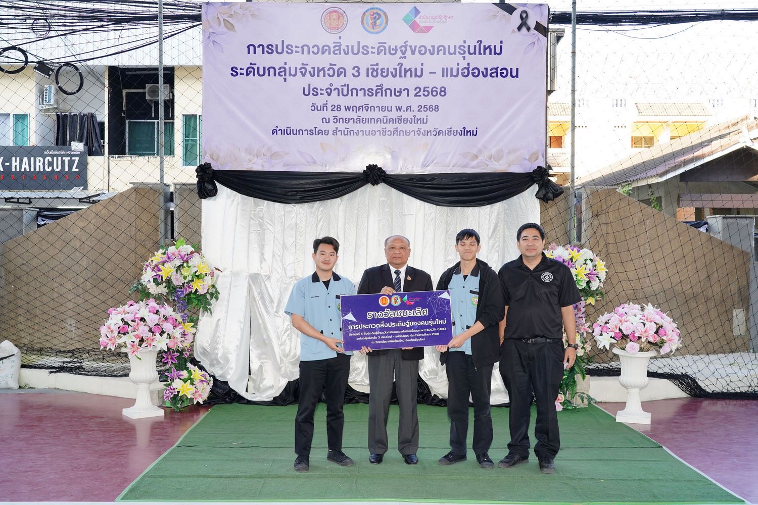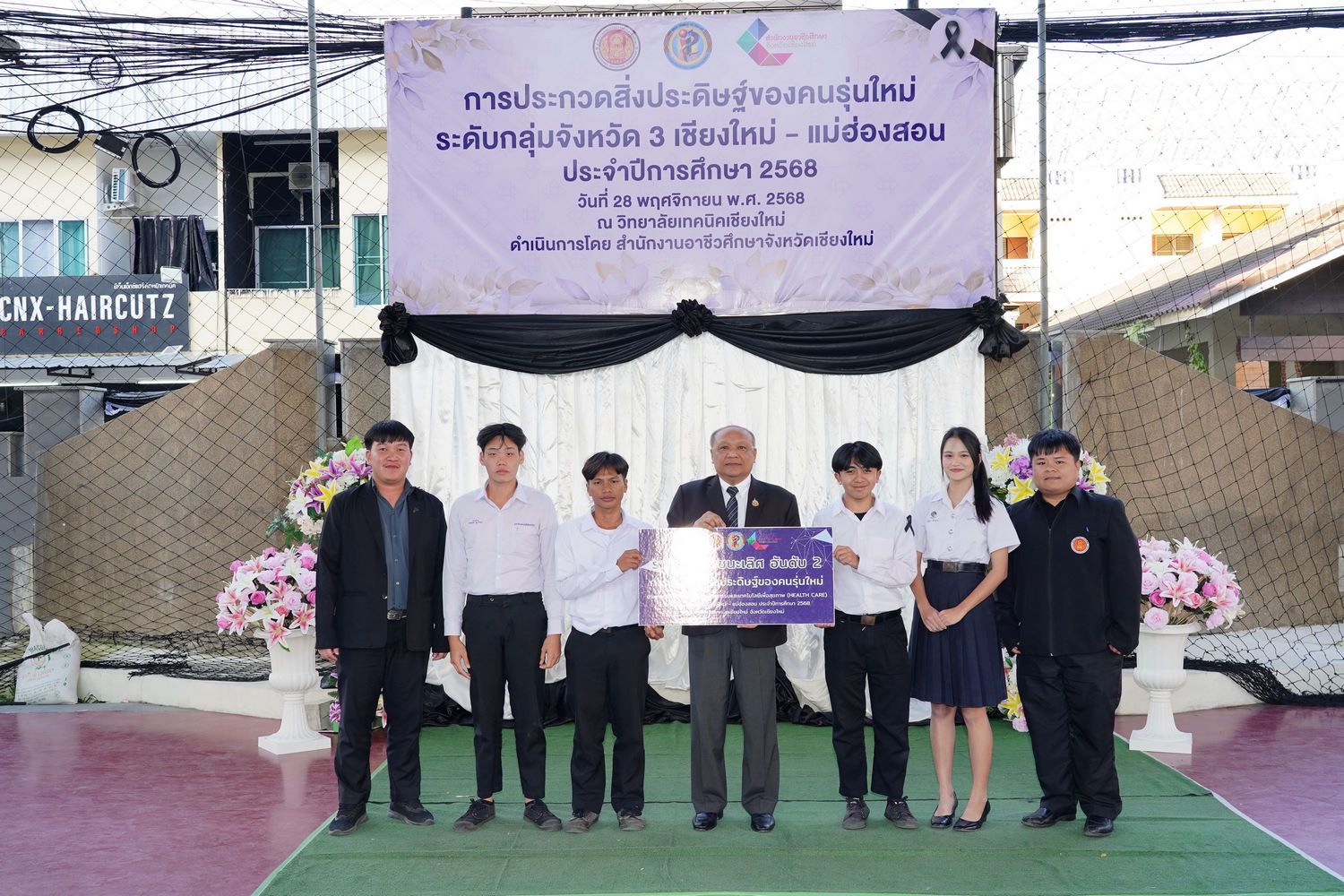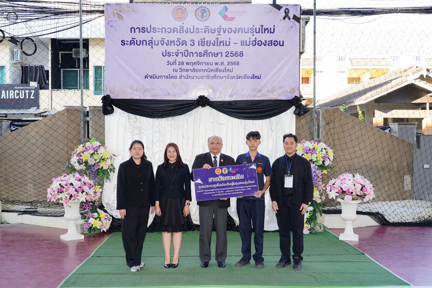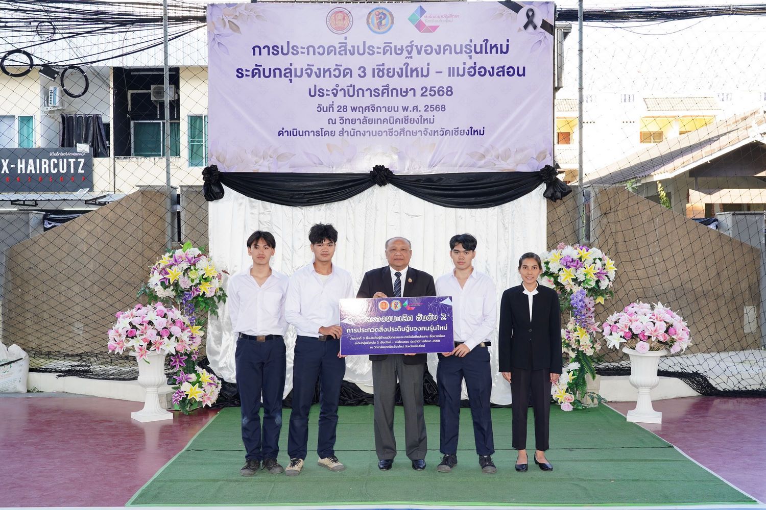 ดร.วัชรพงศ์ ฝั้นติ๊บ ผู้อำนวยการวิทยาลัยเทคนิคเชียงใหม่ ปฏิบัติหน้าที่ผู้อำนวยการสำนักงานอาชีวศึกษาจังหวัดเชียงใหม่ และรักษาการในตำแหน่งที่ปรึกษาด้านนโยบายและแผน สำนักงานคณะกรรมการการอาชีวศึกษา ให้เกียรติเป็นประธานในพิธีเปิดงาน การประกวดสิ่งประดิษฐ์ของคนรุ่นใหม่ ระดับกลุ่มจังหวัด 3 (เชียงใหม่ – แม่ฮ่องสอน) ประจำปีการศึกษา 2568 พร้อมด้วย คณะผู้บริหาร คณะครู คณะกรรมการดำเนินงาน คณะกรรมการตัดสินการประเมิน ผู้เข้าร่วมประกวดสิ่งประดิษฐ์ ในสังกัดสำนักงานอาชีวศึกษาจังหวัดเชียงใหม่และจังหวัดแม่ฮ่องสอน ภาครัฐและภาคเอกชน เข้าร่วมพิธีการเปิดงานฯในครั้งนี้ ซึ่งมีวัตถุประสงค์เพื่อคัดเลือกสุดยอดผลงานสิ่งประดิษฐ์แต่ละประเภท เพื่อเป็นตัวแทนเข้าสู่การประกวดสิ่งประดิษฐ์ของคนรุ่นใหม่ ระดับภาค ภาคเหนือ ซึ่งในครั้งนี้มีจำนวนผลงานที่เข้าร่วมการประกวดสิ่งประดิษฐ์ 7 ประเภท จำนวนทั้งสิ้น 92 ผลงาน