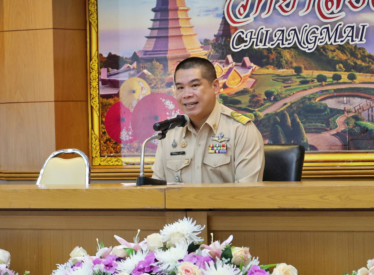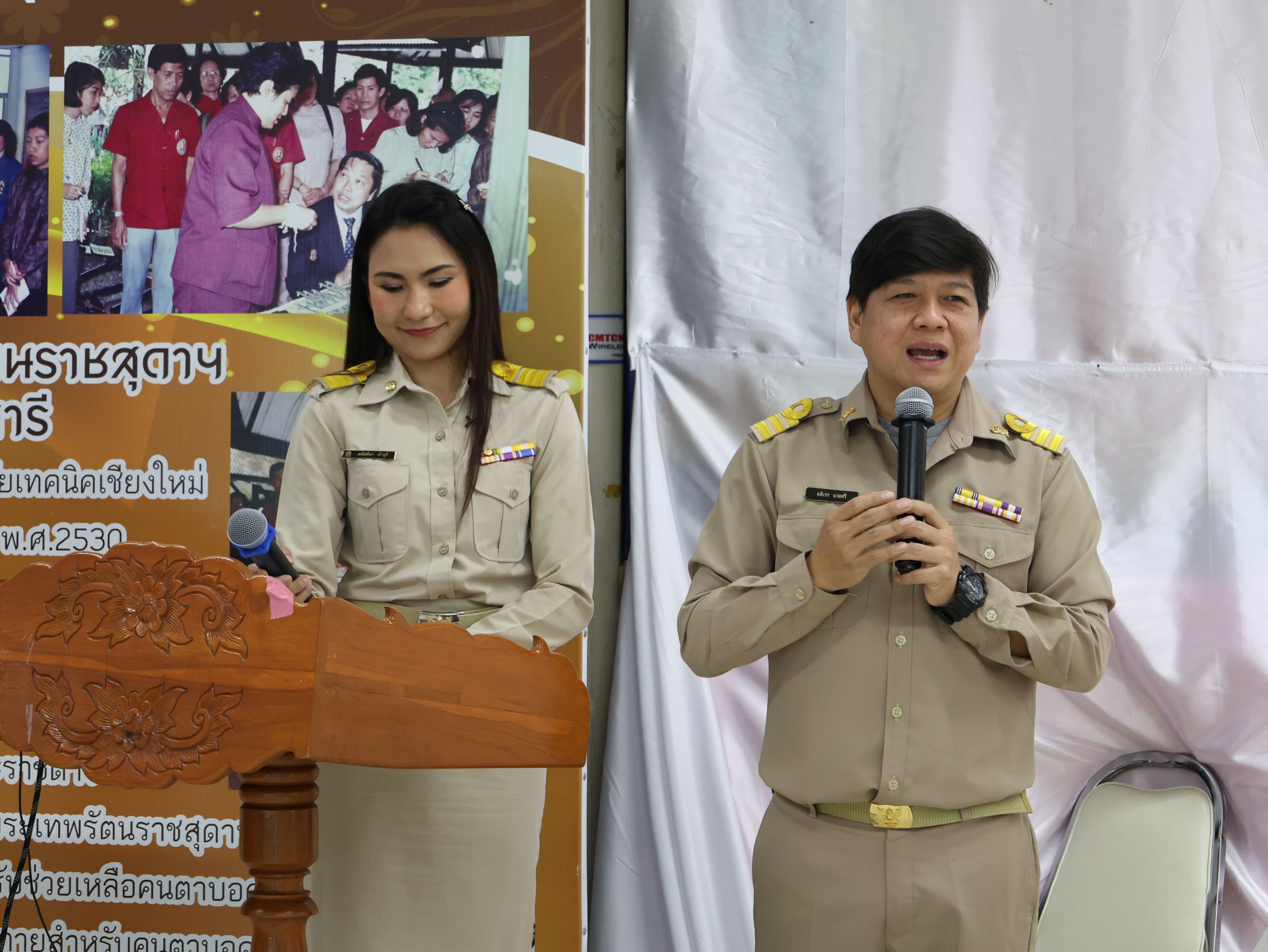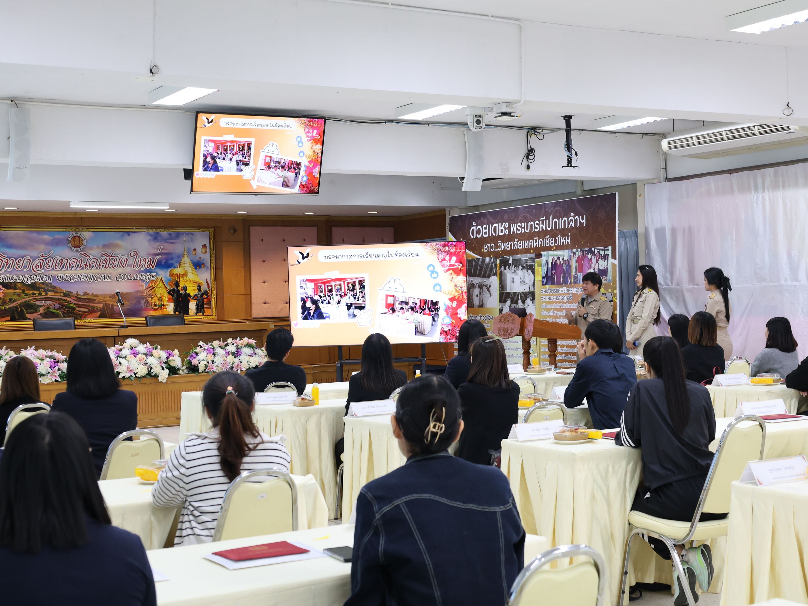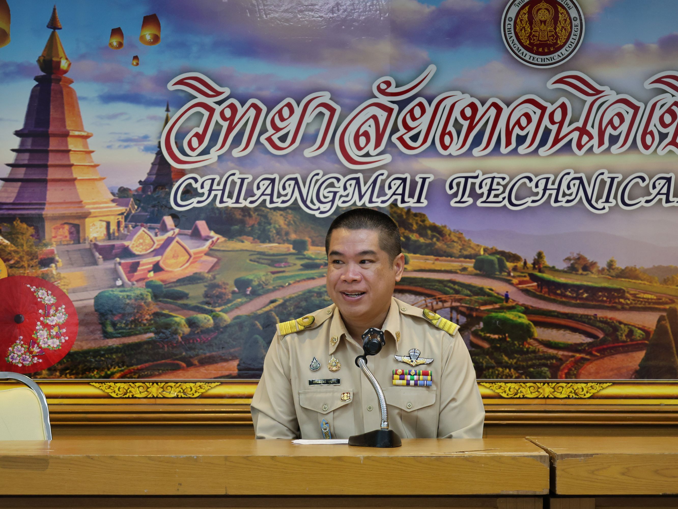 ดร.วัชรพงศ์ ฝั้นติ๊บ ผู้อำนวยการวิทยาลัยเทคนิคเชียงใหม่ ปฏิบัติหน้าที่ผู้อำนวยการสำนักงานอาชีวศึกษาจังหวัดเชียงใหม่ และรักษาการในตำแหน่งที่ปรึกษาด้านนโยบายและแผน สำนักงานคณะกรรมการการอาชีวศึกษามอบหมายให้นายชรันต์ยุทธ์ บุญยง รองผู้อำนวยการฝ่ายบริหารทรัพยากร ให้การต้อนรับและกล่าวแสดงความยินดีในโอกาสพิธีปิดและรับมอบเกียรติบัตรการอบรม สำหรับพนักงานสายบริการ กลุ่มบริษัทเซ็นทรัล เชียงใหม่ แอร์พอร์ต ในโอกาสสำเร็จหลักสูตรการอบรมพัฒนาด้านภาษาและวัฒนธรรมจันเพื่องานบริการ โดยมีนางศศิกาญจน์ เรือนศาสตร์ รองผู้อำนวยการ ฝ่ายแผนงานและความร่วมมือ นายสุจินต์ วังใหม่ รองผู้อำนวยการ ฝ่ายพัฒนากิจการนักเรียน นักศึกษา รศ.หลัว จากมหาวิทยาลัยเทคนิคและวิศวกรรมเสฉวน และ ผศ.เจิง จากวิทยาลัยเทคโนโลยีอุตสาหกรรมเคมีเสฉวน ประเทศจีน นายอดิเรก นวลศรี หัวหน้างานศูนย์ภาษาและวัฒนธรรมจีน เข้าร่วมฯ