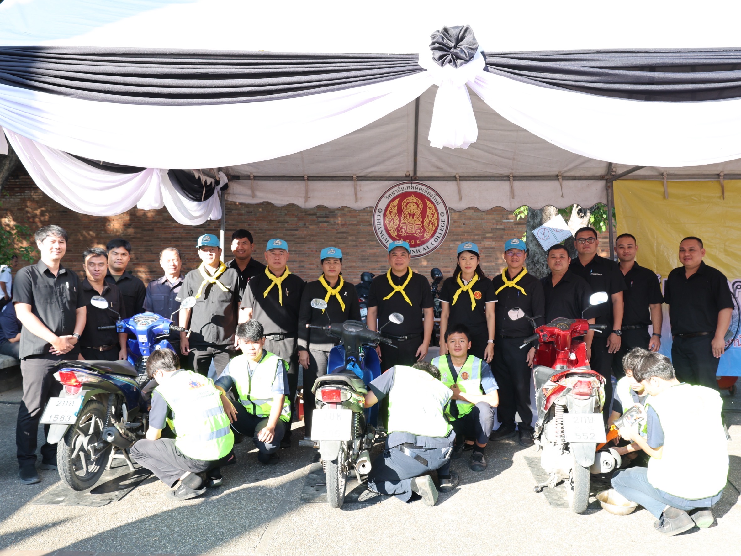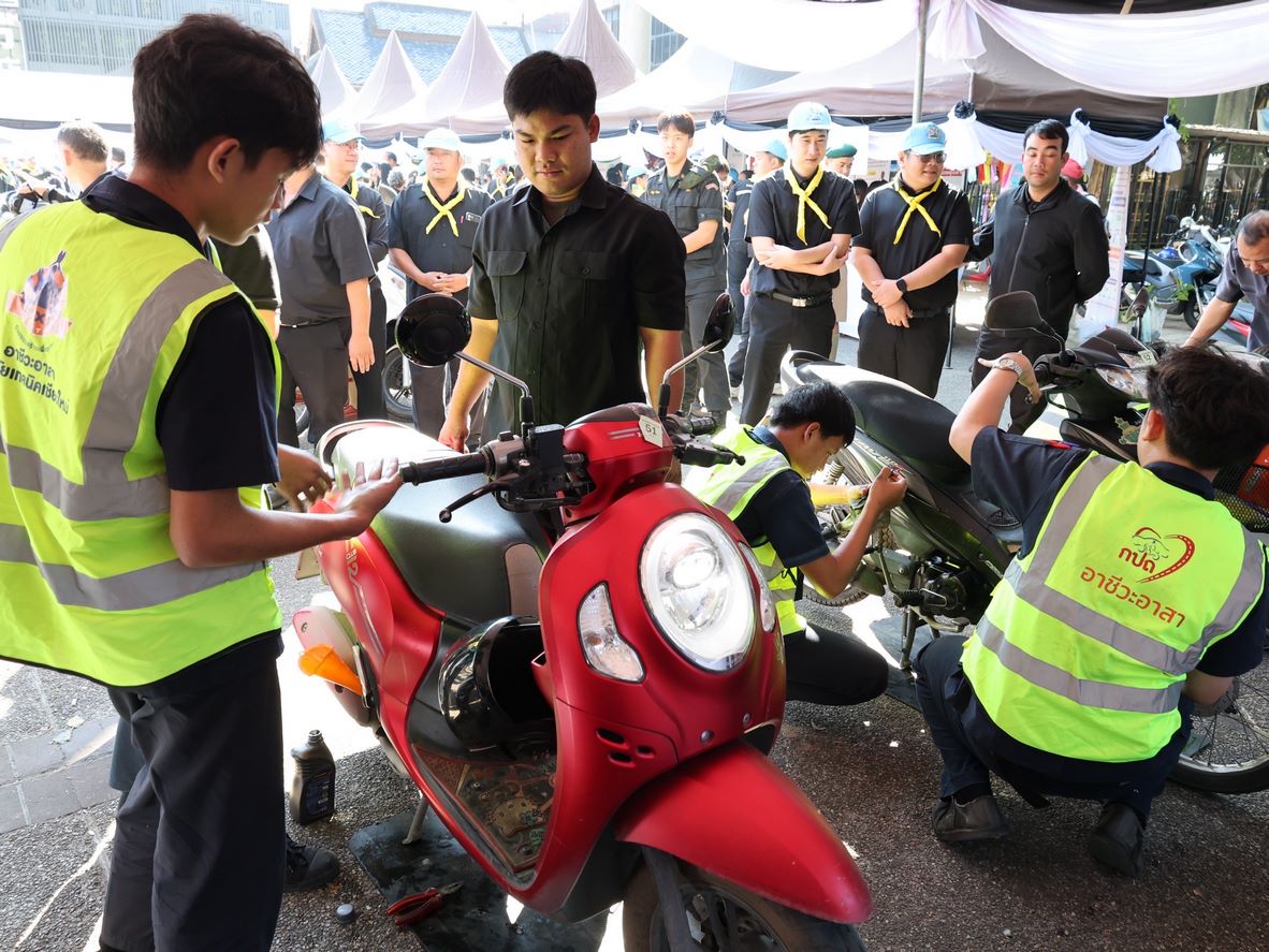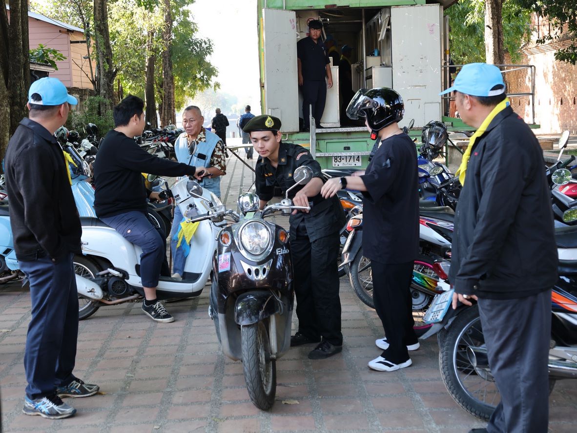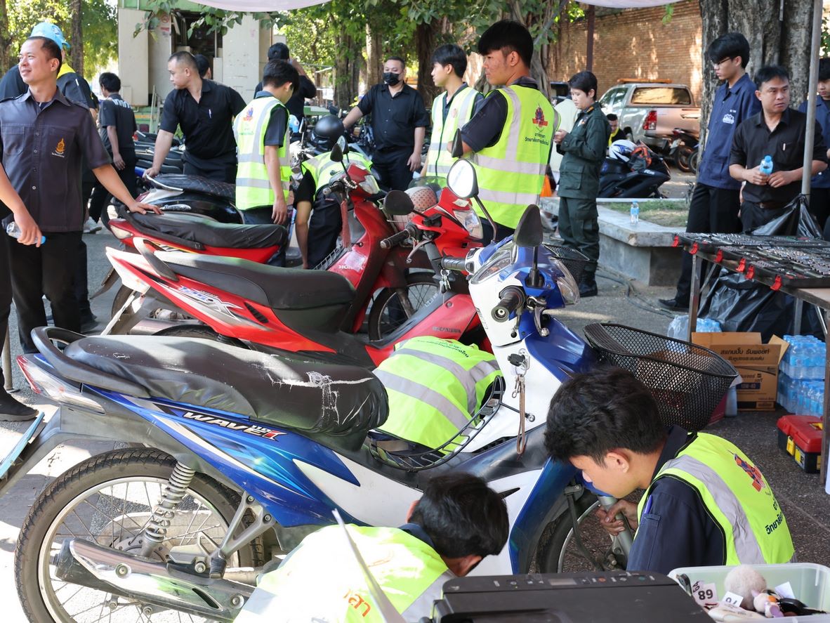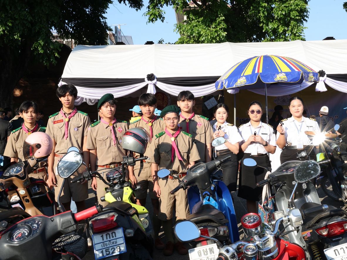 ดร.วัชรพงศ์ ฝั้นติ๊บ ผู้อำนวยการวิทยาลัยเทคนิคเชียงใหม่ ปฏิบัติหน้าที่ผู้อำนวยการสำนักงานอาชีวศึกษาจังหวัดเชียงใหม่ และรักษาการในตำแหน่งที่ปรึกษาด้านนโยบายและแผน สำนักงานคณะกรรมการการอาชีวศึกษา มอบหมาย นายชรันต์ยุทธ์ บุญยง รองผู้อำนวยการฝ่ายบริหารทรัพยากร นางเสาวคนธ์ บุญญประภา รองผู้อำนวยการฝ่ายวิชาการ ปฏิบัติหน้าที่เลขานุการสำนักงานอาชีวศึกษาจังหวัดเชียงใหม่ นายสุจินต์ วังใหม่ รองผู้อำนวยการฝ่ายพัฒนากิจการนักเรียนนักศึกษา นางศศิกาญจน์ เรือนศาสตร์ รองผู้อำนวยการฝ่ายแผนงานและความร่วมมือ หัวหน้างานโครงการพิเศษฯ คณะครู และนักเรียน นักศึกษา แผนกวิชาช่างยนต์ แผนกวิชาธุรกิจการบิน ลูกเสือวิสามัญ และนักศึกษาวิชาทหาร วิทยาลัยเทคนิคเชียงใหม่ เข้าร่วม"กิจกรรมจิตอาสาพระราชทานเฉลิมพระเกียรติ เนื่องในวันคล้ายพระบรมราชสมภพ พระบาทสมเด็จพระบรมชนกาธิเบศร มหาภูมิพลอดุลยเดชมหาราช บรมนาถบพิตร และวันพ่อแห่งชาติ 5 ธันวาคม 2568 ณ ลานประตูท่าแพ อำเภอเมือง จังหวัดเชียงใหม่