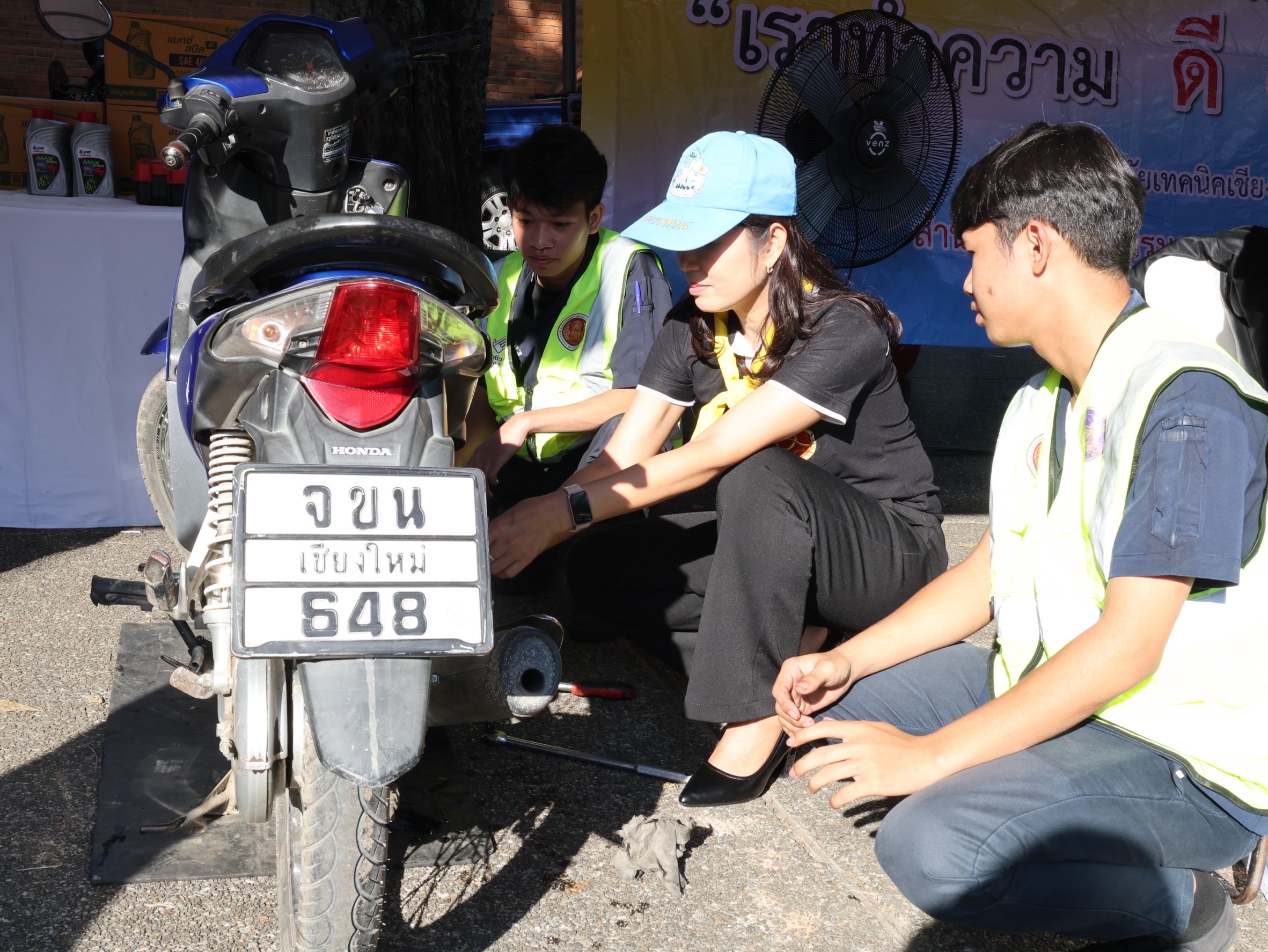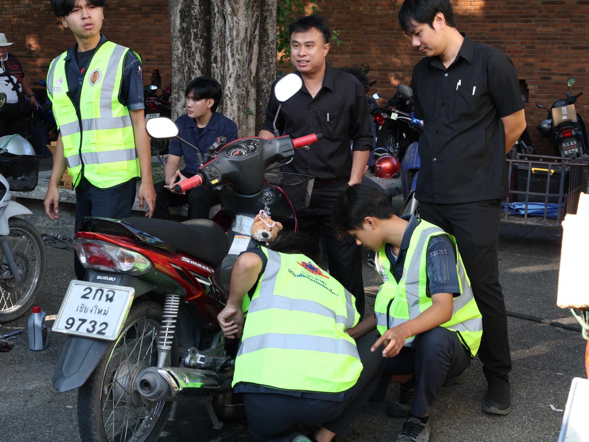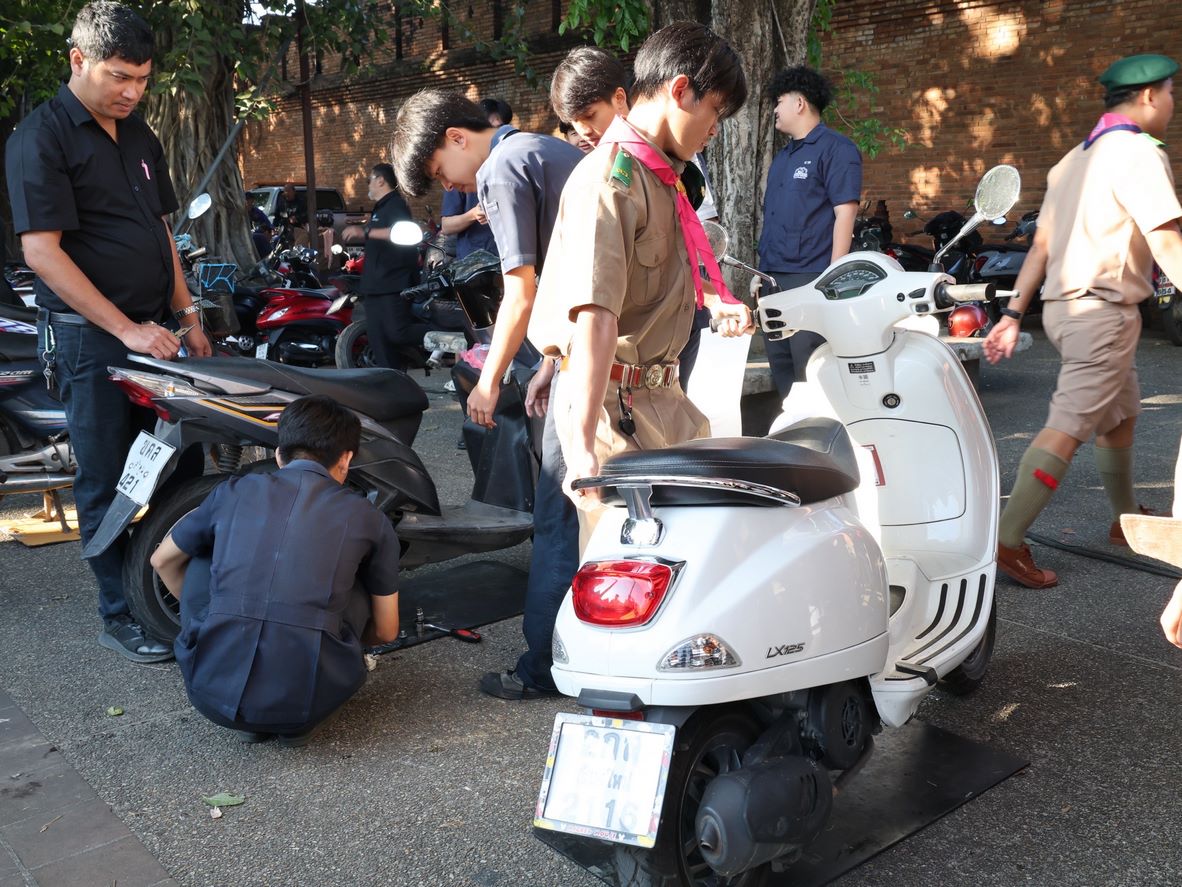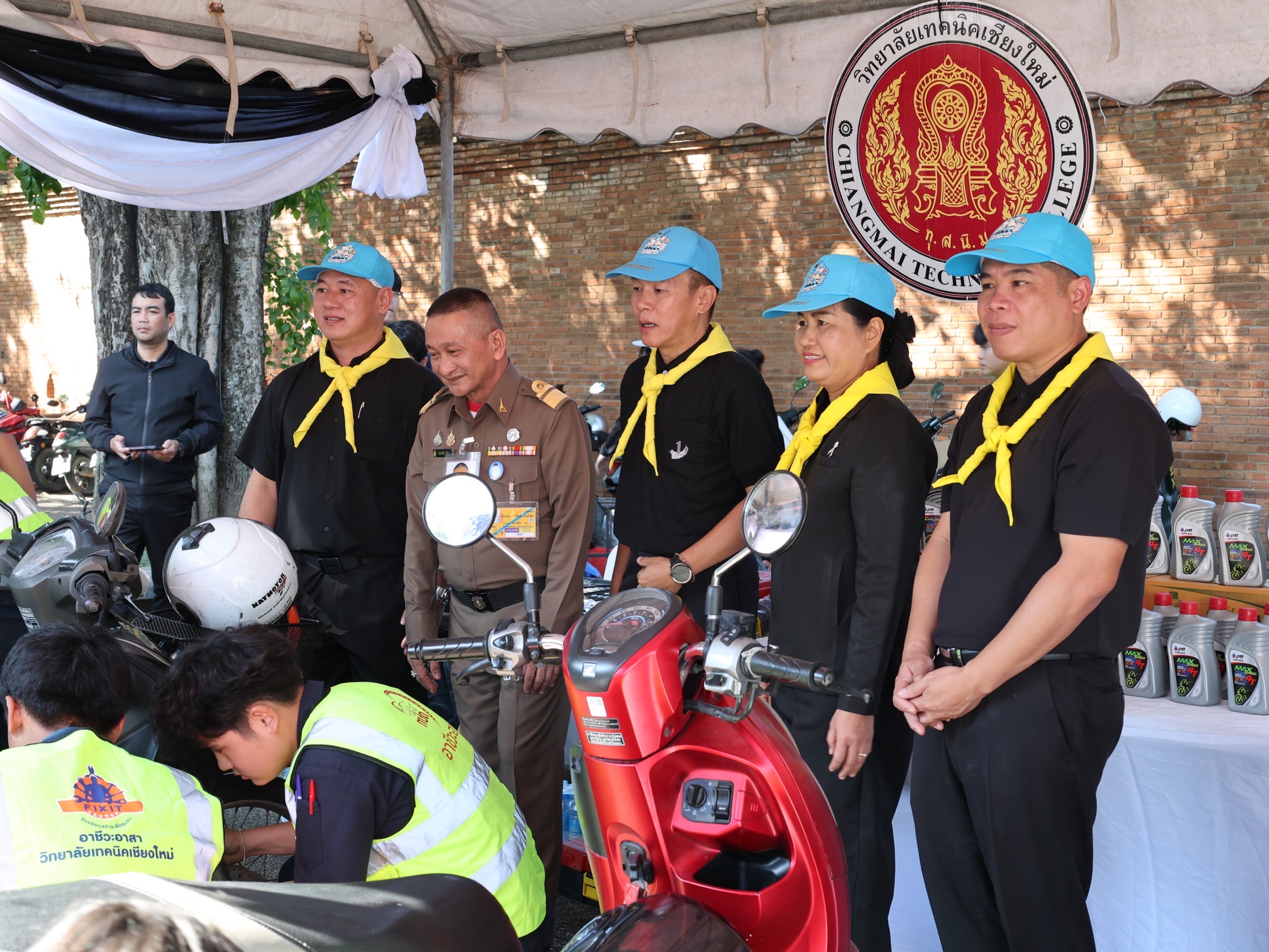 ดร.วัชรพงศ์ ฝั้นติ๊บ ผู้อำนวยการวิทยาลัยเทคนิคเชียงใหม่ ปฏิบัติหน้าที่ผู้อำนวยการสำนักงานอาชีวศึกษาจังหวัดเชียงใหม่ และรักษาการในตำแหน่งที่ปรึกษาด้านนโยบายและแผน สำนักงานคณะกรรมการการอาชีวศึกษา มอบหมาย นายชรันต์ยุทธ์ บุญยง รองผู้อำนวยการฝ่ายบริหารทรัพยากร นางเสาวคนธ์ บุญญประภา รองผู้อำนวยการฝ่ายวิชาการ ปฏิบัติหน้าที่เลขานุการสำนักงานอาชีวศึกษาจังหวัดเชียงใหม่ นายสุจินต์ วังใหม่ รองผู้อำนวยการฝ่ายพัฒนากิจการนักเรียนนักศึกษา นางศศิกาญจน์ เรือนศาสตร์ รองผู้อำนวยการฝ่ายแผนงานและความร่วมมือ หัวหน้างานโครงการพิเศษฯ คณะครู และนักเรียน นักศึกษา แผนกวิชาช่างยนต์ แผนกวิชาธุรกิจการบิน ลูกเสือวิสามัญ และนักศึกษาวิชาทหาร วิทยาลัยเทคนิคเชียงใหม่ เข้าร่วม"กิจกรรมจิตอาสาพระราชทานเฉลิมพระเกียรติ เนื่องในวันคล้ายพระบรมราชสมภพ พระบาทสมเด็จพระบรมชนกาธิเบศร มหาภูมิพลอดุลยเดชมหาราช บรมนาถบพิตร และวันพ่อแห่งชาติ 5 ธันวาคม 2568 ณ ลานประตูท่าแพ อำเภอเมือง จังหวัดเชียงใหม่