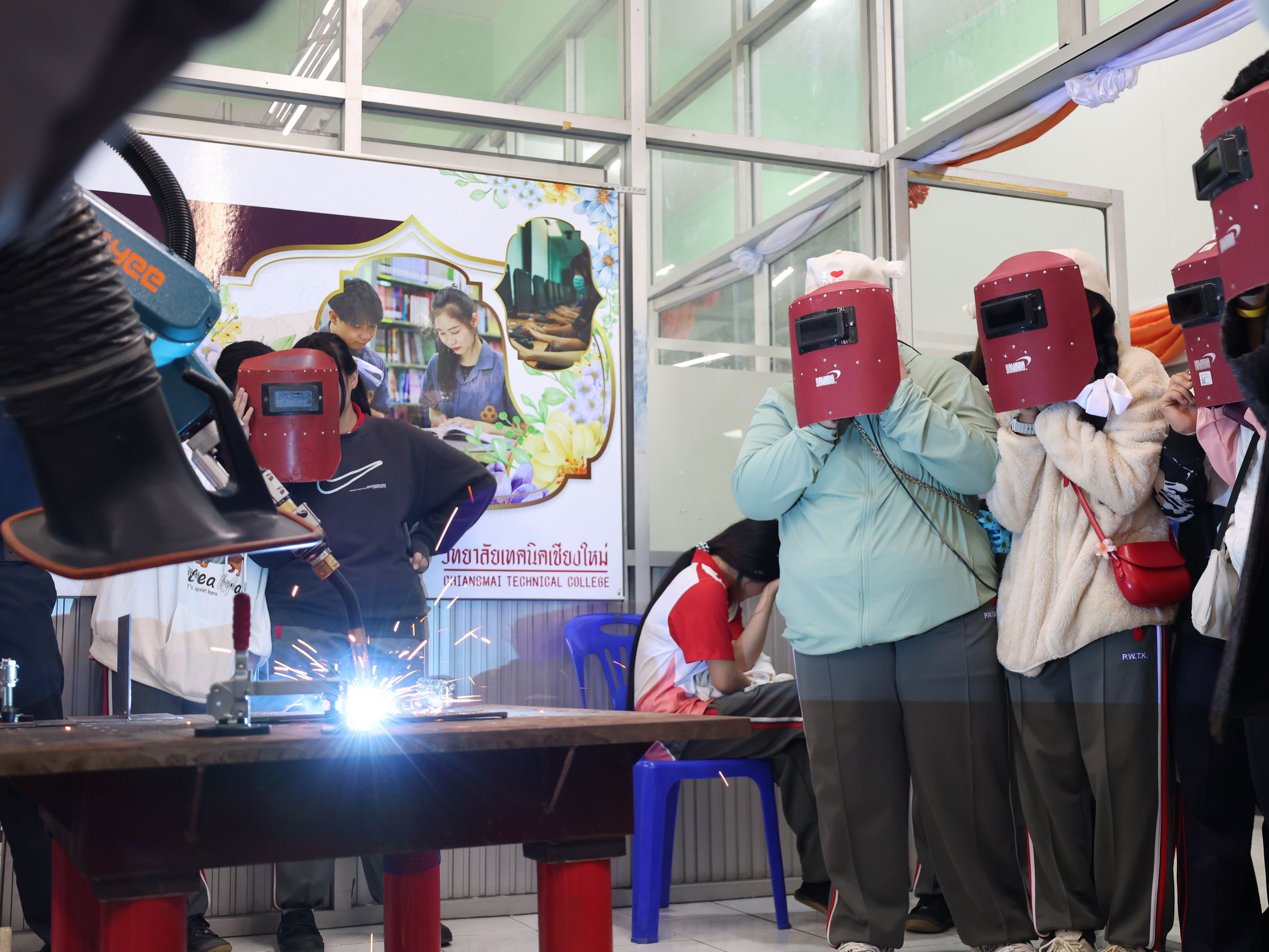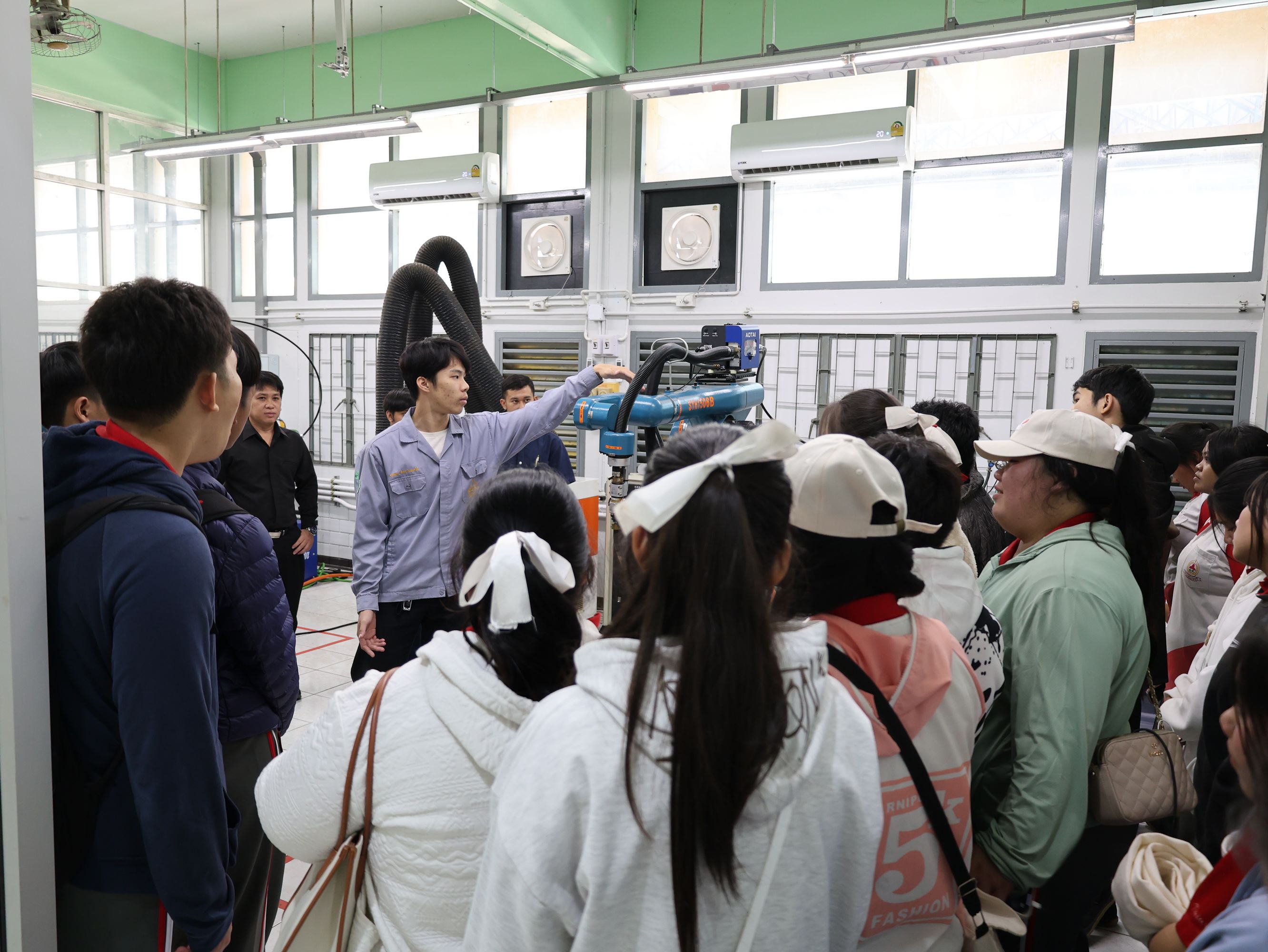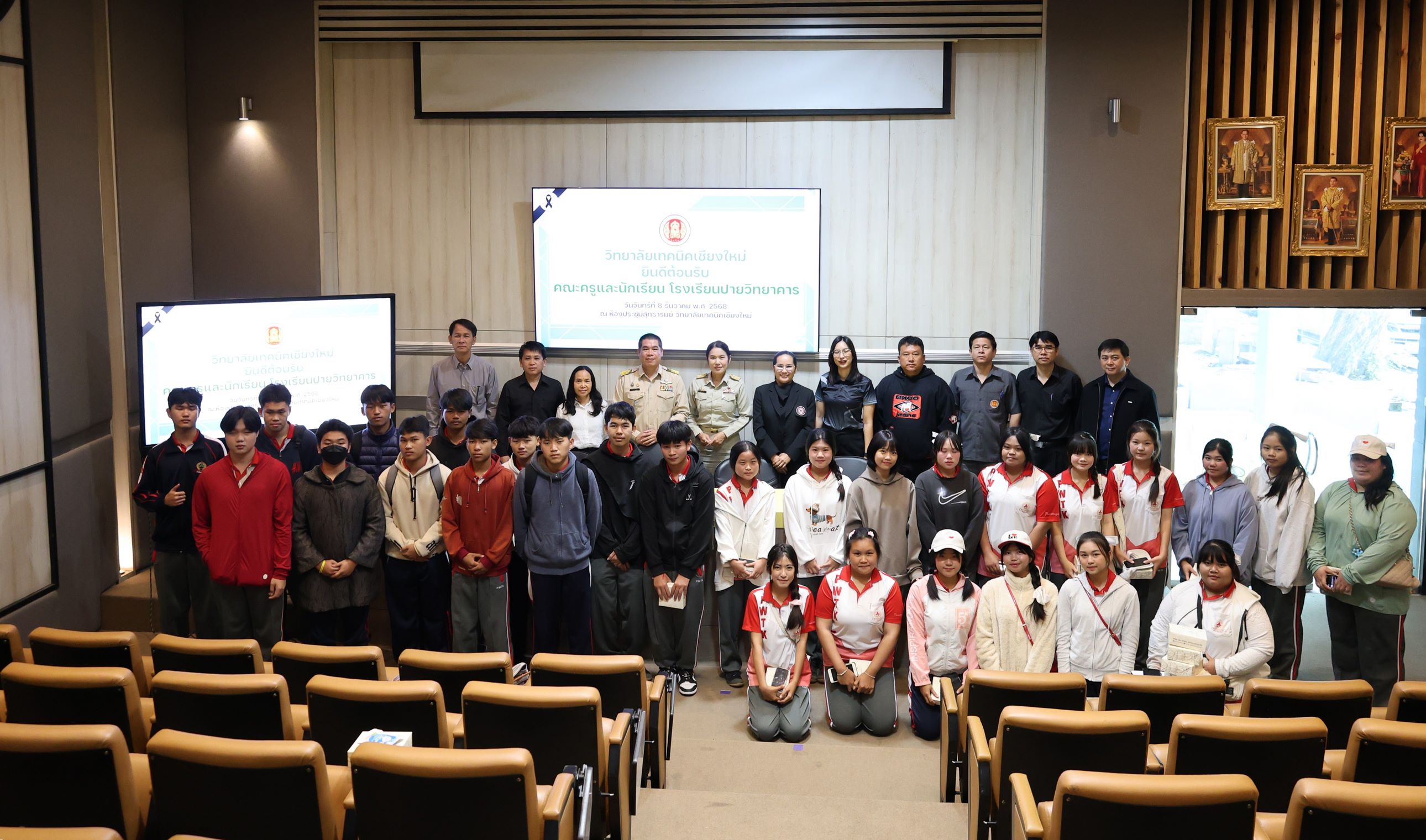 ดร.วัชรพงศ์ ฝั้นติ๊บ ผู้อำนวยการวิทยาลัยเทคนิคเชียงใหม่ ปฏิบัติหน้าที่ผู้อำนวยการสำนักงานอาชีวศึกษาจังหวัดเชียงใหม่ และรักษาการในตำแหน่งที่ปรึกษาด้านนโยบายและแผน สำนักงานคณะกรรมการการอาชีวศึกษา มอบหมายให้ นายชรันต์ยุทธ์ บุญยง รองผู้อำนวยการฝ่ายบริหารทรัพยากร นางศศิกาญจน์ เรือนศาสตร์ รองผู้อำนวยการฝ่ายแผนงานและความร่วมมือ นายกรณ์ภณนนท์ พลรังสิวงศ์ หัวหน้าแผนกสามัญสัมพันธ์ พร้อมด้วยหัวหน้าแผนกวิชาช่างยนต์ แผนกวิชาชางก่อสร้าง แผนกวิชาช่างเชื่อมโลหะ และแผนกวิชาช่างไฟฟ้า ให้การต้อนรับ คณะครู และนักเรียน โรงเรียนปายวิทยาคาร ในโอกาสเข้าศึกษาดูงาน ณ วิทยาลัยเทคนิคเชียงใหม่