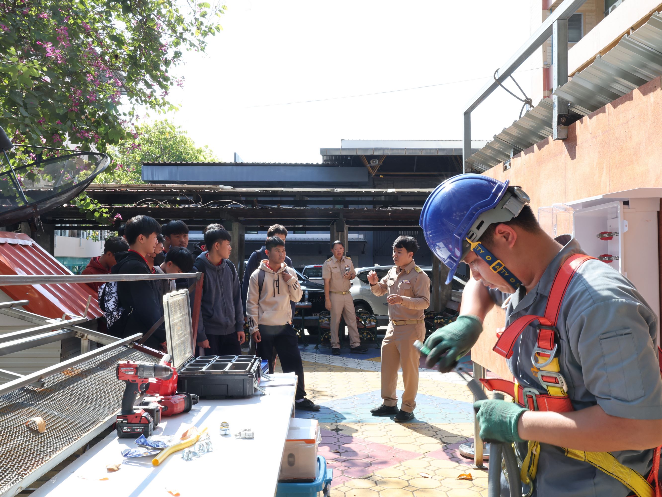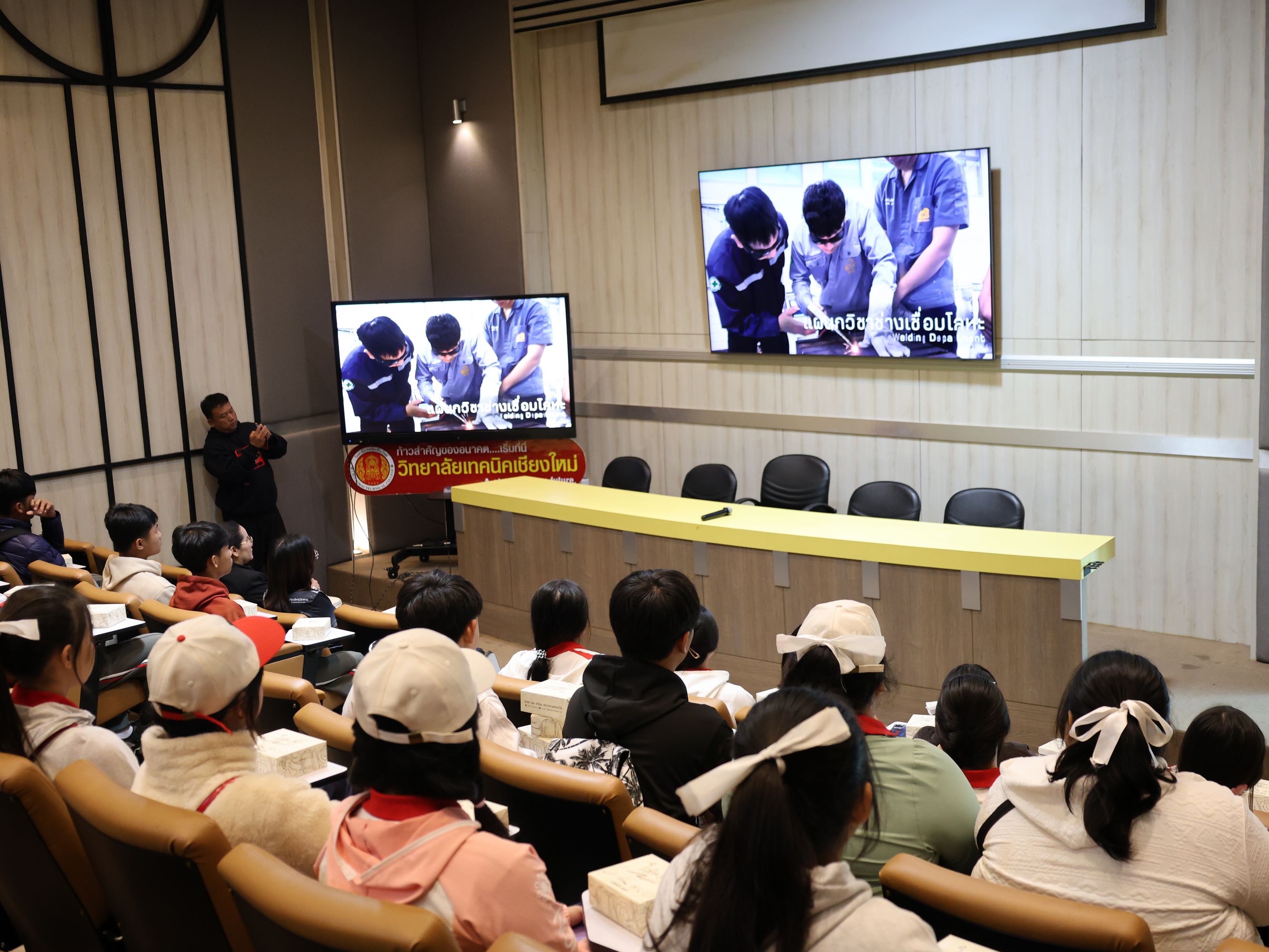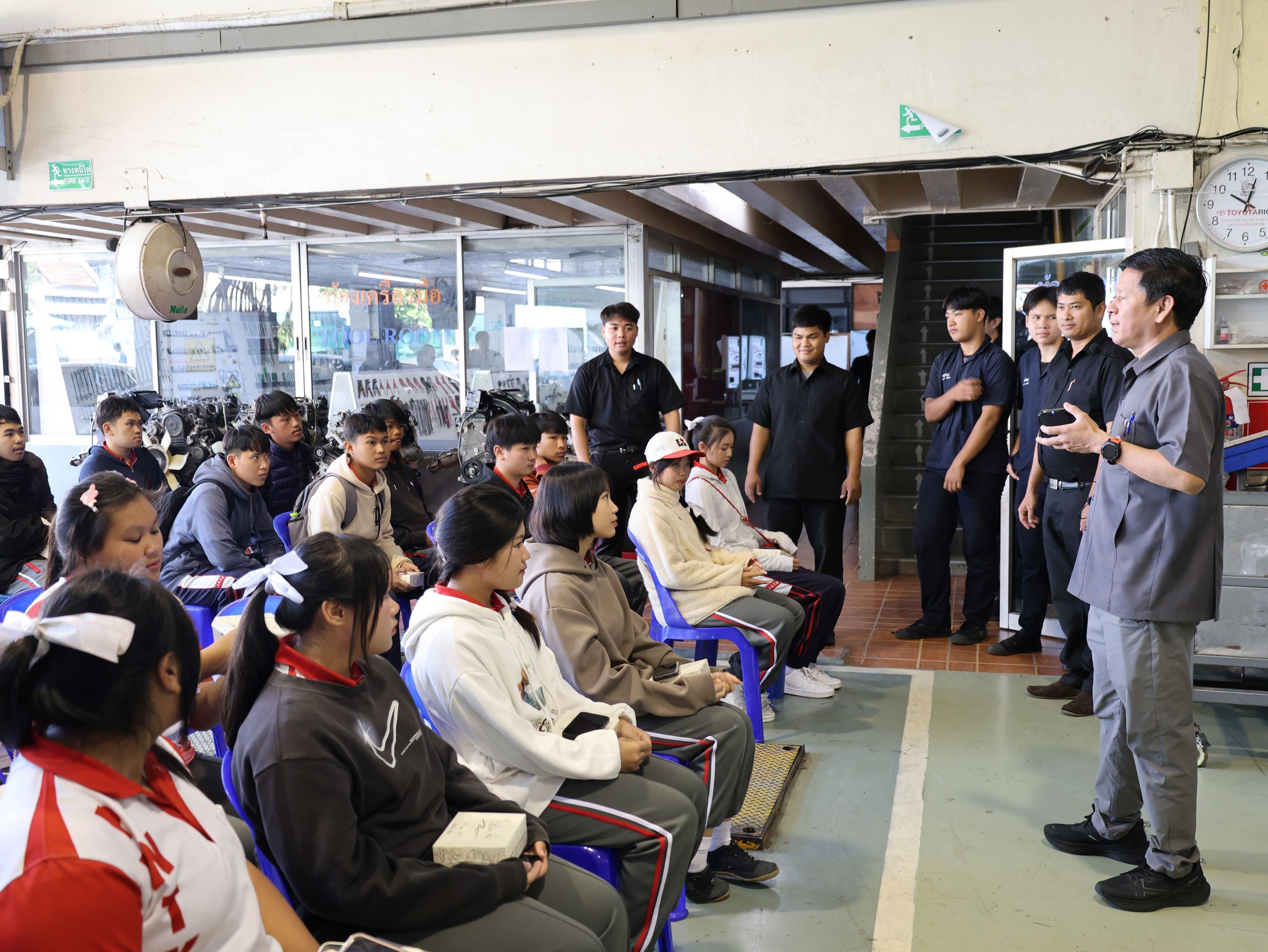 ดร.วัชรพงศ์ ฝั้นติ๊บ ผู้อำนวยการวิทยาลัยเทคนิคเชียงใหม่ ปฏิบัติหน้าที่ผู้อำนวยการสำนักงานอาชีวศึกษาจังหวัดเชียงใหม่ และรักษาการในตำแหน่งที่ปรึกษาด้านนโยบายและแผน สำนักงานคณะกรรมการการอาชีวศึกษา มอบหมายให้ นายชรันต์ยุทธ์ บุญยง รองผู้อำนวยการฝ่ายบริหารทรัพยากร นางศศิกาญจน์ เรือนศาสตร์ รองผู้อำนวยการฝ่ายแผนงานและความร่วมมือ นายกรณ์ภณนนท์ พลรังสิวงศ์ หัวหน้าแผนกสามัญสัมพันธ์ พร้อมด้วยหัวหน้าแผนกวิชาช่างยนต์ แผนกวิชาชางก่อสร้าง แผนกวิชาช่างเชื่อมโลหะ และแผนกวิชาช่างไฟฟ้า ให้การต้อนรับ คณะครู และนักเรียน โรงเรียนปายวิทยาคาร ในโอกาสเข้าศึกษาดูงาน ณ วิทยาลัยเทคนิคเชียงใหม่