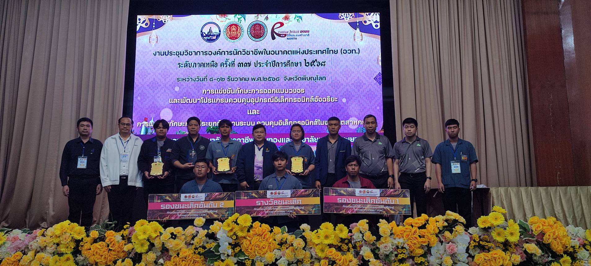 ดร.วัชรพงศ์ ฝั้นติ๊บ ผู้อำนวยการวิทยาลัยเทคนิคเชียงใหม่ ปฏิบัติหน้าที่ผู้อำนวยการสำนักงานอาชีวศึกษาจังหวัดเชียงใหม่ และรักษาการในตำแหน่งที่ปรึกษาด้านนโยบายและแผน สำนักงานคณะกรรมการการอาชีวศึกษา มอบหมายให้ แผนกวิชาอิเล็กทรอนิกส์ นำนักเรียน นักศึกษา สาขาวิชาอิเล็กทรอนิกส์ เข้าร่วมการแข่งขันทักษะวิชาชีพและทักษะพื้นฐาน ระดับภาคเหนือ ครั้งที่ 37 ประจำปีการศึกษา 2568 ณ วิทยาลัยเทคนิคพิษณุโลก ระหว่างวันที่ 9–12 ธันวาคม 2568 โดยมีผลการแข่งขันดังนี้