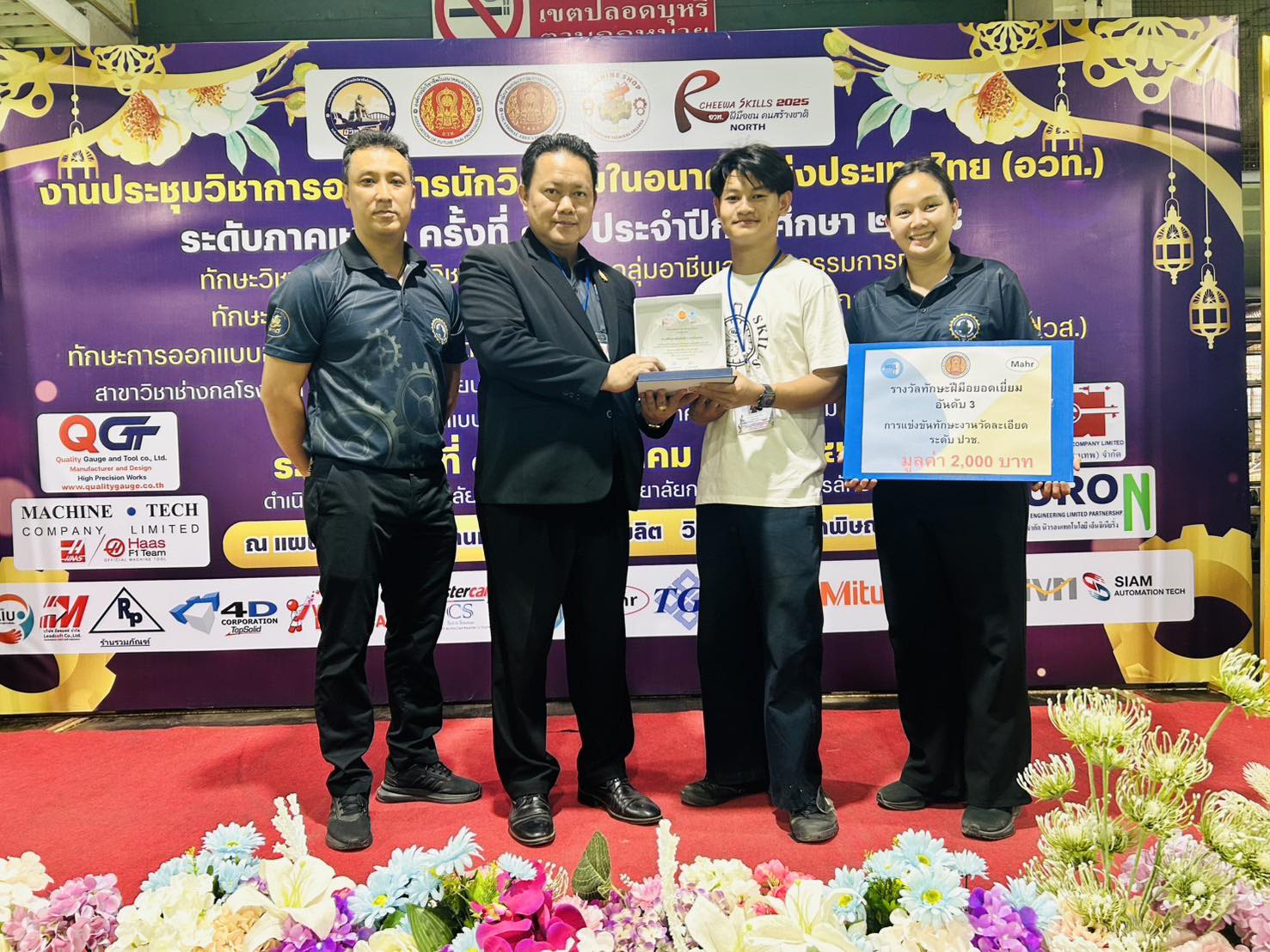 +รางวัลรองชนะเลิศอันดับที่ 2 มาตรฐานเหรียญทองแดง ทักษะงานเขียนแบบเพื่อวัดขนาดชิ้นงานที่ผลิตด้วยเครื่องมือกล ระดับ ปวช. ประเภท ทีม