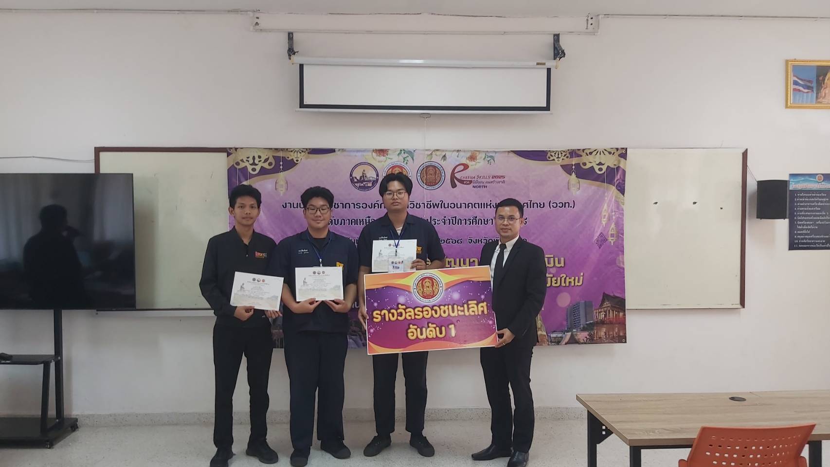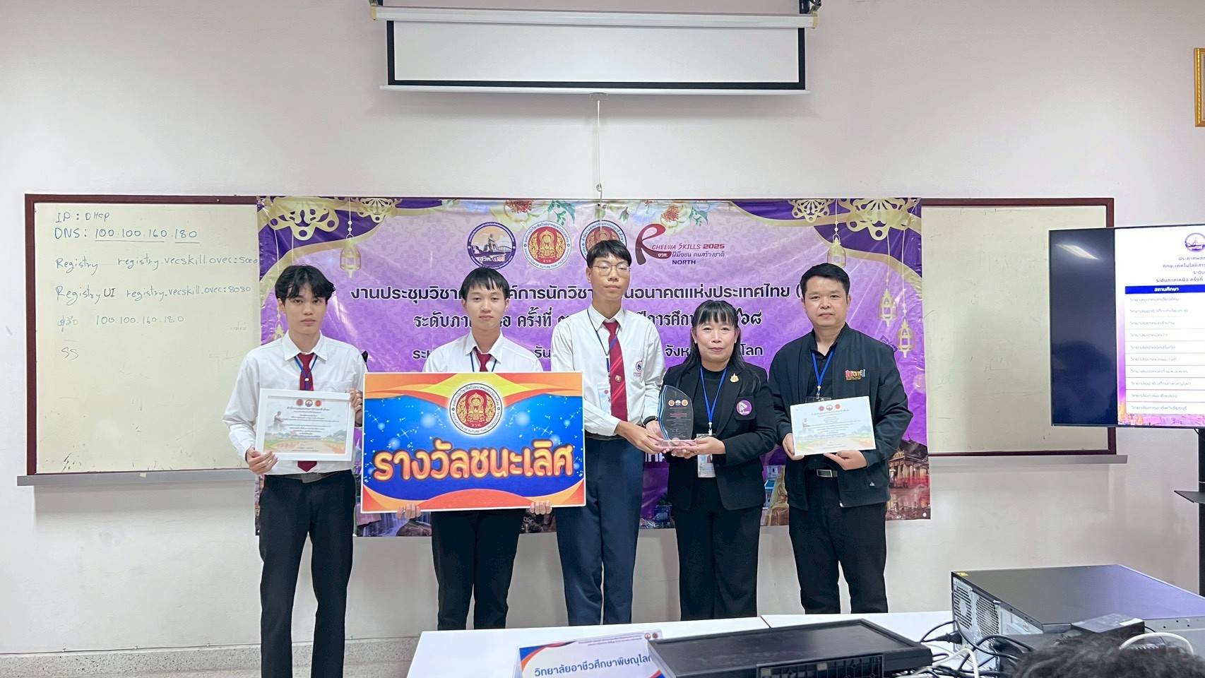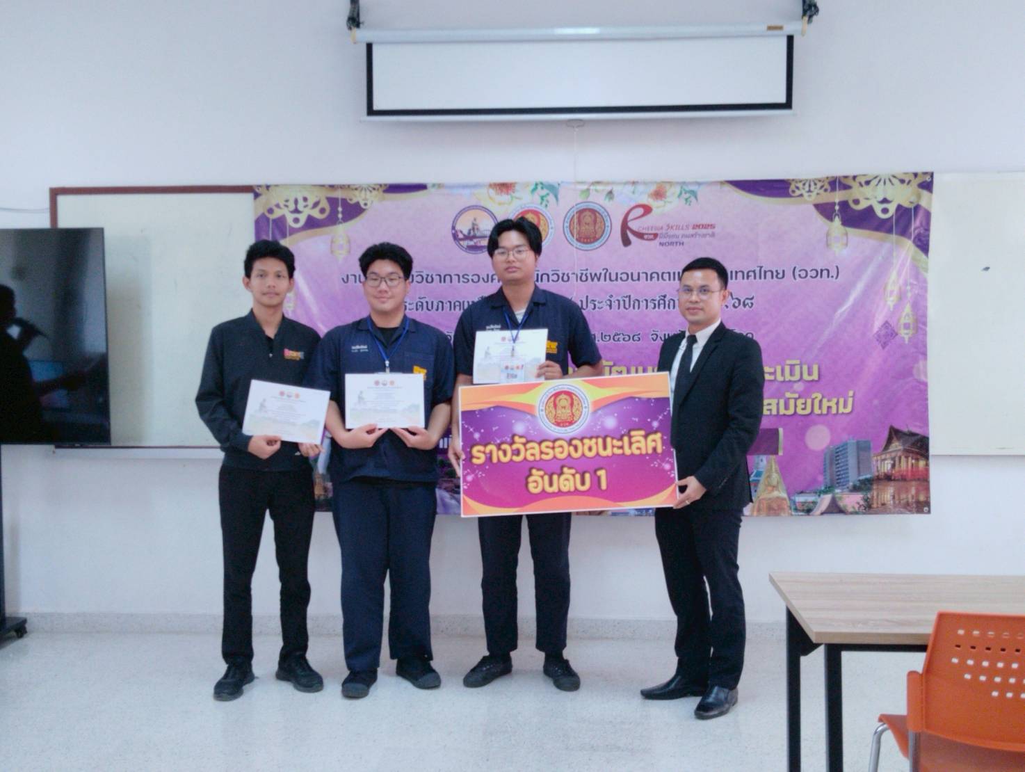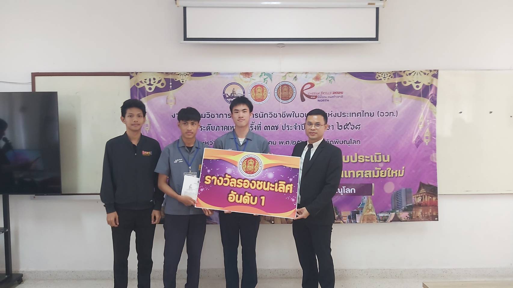 วันศุกร์ที่ 12 ธันวาคม 2568 ดร.วัชรพงศ์ ฝั้นติ๊บ ผู้อำนวยการวิทยาลัยเทคนิคเชียงใหม่ ปฏิบัติหน้าที่ผู้อำนวยการสำนักงานอาชีวศึกษาจังหวัดเชียงใหม่ และรักษาการในตำแหน่งที่ปรึกษาด้านนโยบายและแผน สำนักงานคณะกรรมการการอาชีวศึกษา ได้มอบหมายให้คณะครู นำนักเรียน นักศึกษา เข้าร่วมการแข่งขันทักษะวิชาชีพและทักษะพื้นฐาน ระดับภาคเหนือ ครั้งที่ 37 ประจำปีการศึกษา 2568 ณ วิทยาลัยอาชีวศึกษาพิษณุโลก ระหว่างวันที่ 8–12 ธันวาคม 2568 ซึ่งนักเรียน นักศึกษา แผนกวิชาเทคโนโลยีสารสนเทศ สามารถทำผลงานได้อย่างยอดเยี่ยม คว้ารางวัลรวมทั้งสิ้น 6 รางวัล ดังนี้