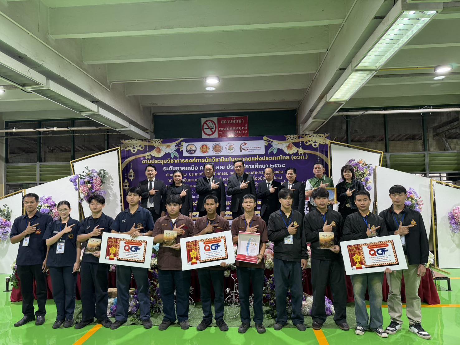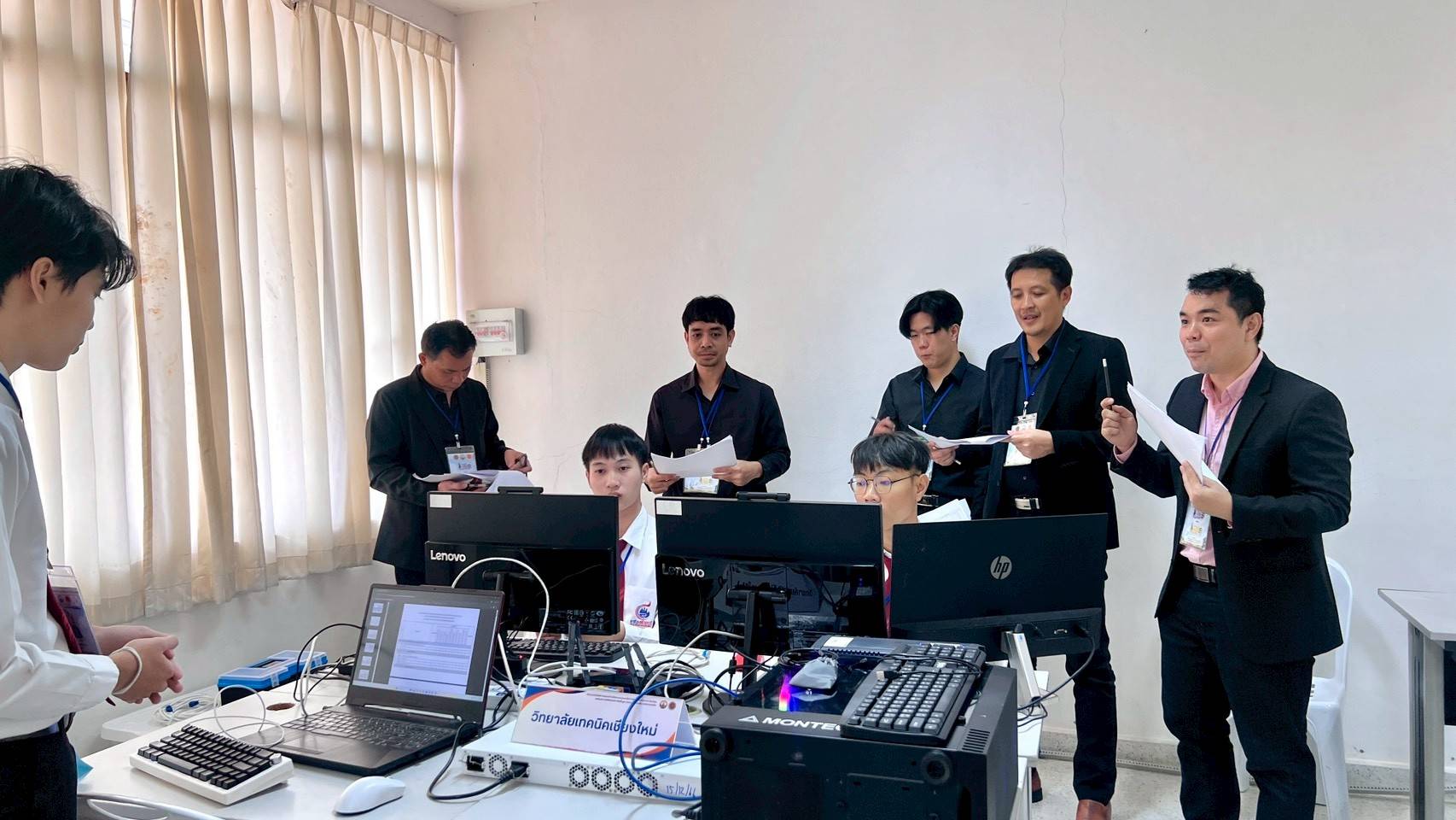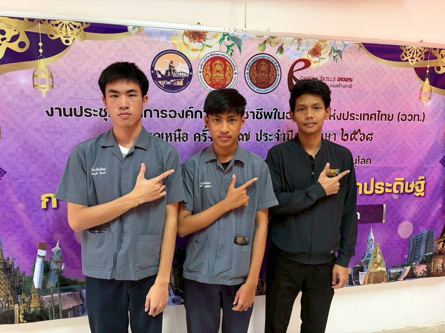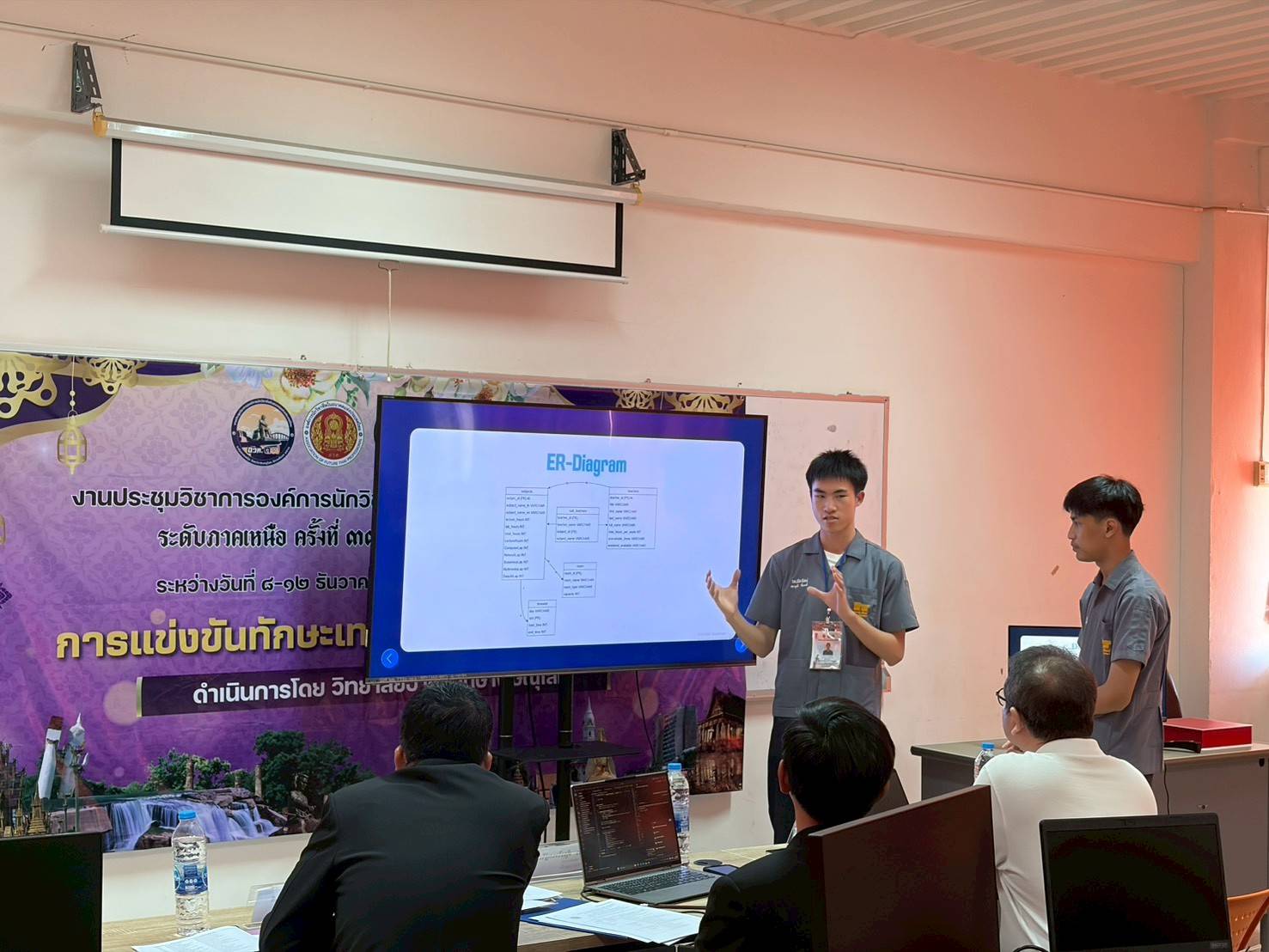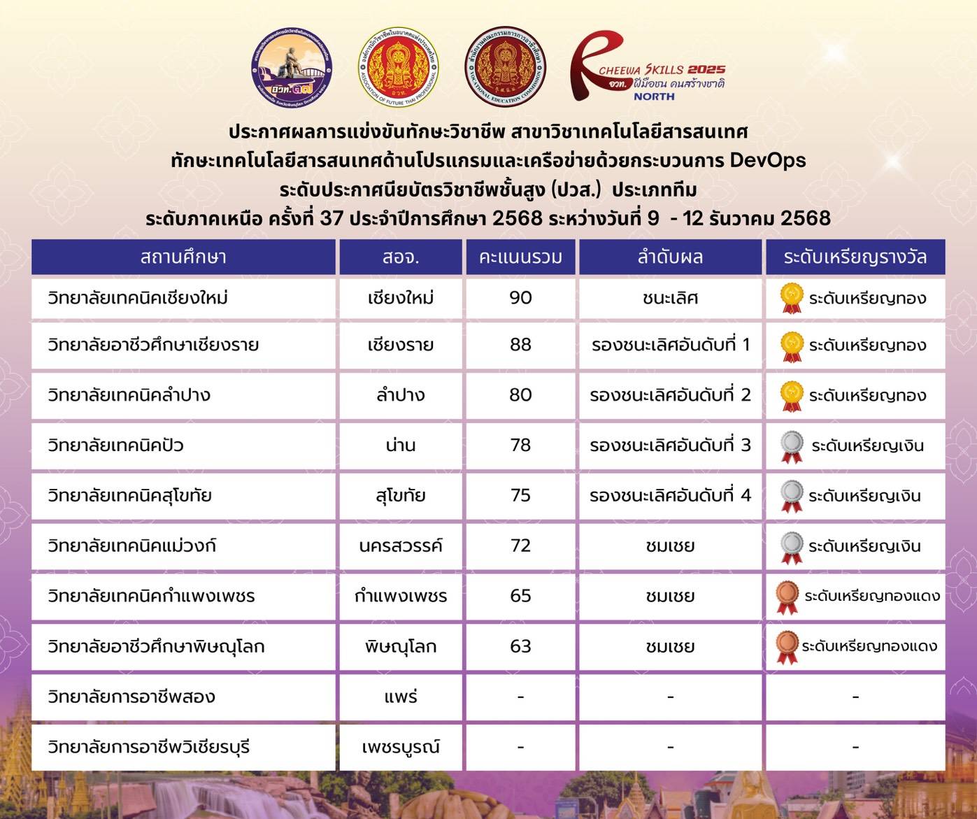 วันศุกร์ที่ 12 ธันวาคม 2568 ดร.วัชรพงศ์ ฝั้นติ๊บ ผู้อำนวยการวิทยาลัยเทคนิคเชียงใหม่ ปฏิบัติหน้าที่ผู้อำนวยการสำนักงานอาชีวศึกษาจังหวัดเชียงใหม่ และรักษาการในตำแหน่งที่ปรึกษาด้านนโยบายและแผน สำนักงานคณะกรรมการการอาชีวศึกษา ได้มอบหมายให้คณะครู นำนักเรียน นักศึกษา เข้าร่วมการแข่งขันทักษะวิชาชีพและทักษะพื้นฐาน ระดับภาคเหนือ ครั้งที่ 37 ประจำปีการศึกษา 2568 ณ วิทยาลัยอาชีวศึกษาพิษณุโลก ระหว่างวันที่ 8–12 ธันวาคม 2568 ซึ่งนักเรียน นักศึกษา แผนกวิชาเทคโนโลยีสารสนเทศ สามารถทำผลงานได้อย่างยอดเยี่ยม คว้ารางวัลรวมทั้งสิ้น 6 รางวัล ดังนี้