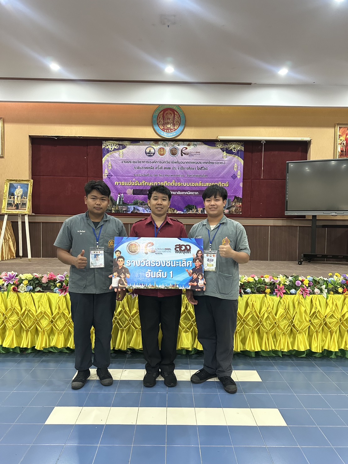 รางวัลรองชนะเลิศอันดับที่ 1 มาตรฐานเหรียญทอง ทักษะงานติดตั้งโซลาร์เซลล์ ระดับประกาศนียบัตรวิชาชีพขั้นสูง(ปวส.) ประเภท ทีม