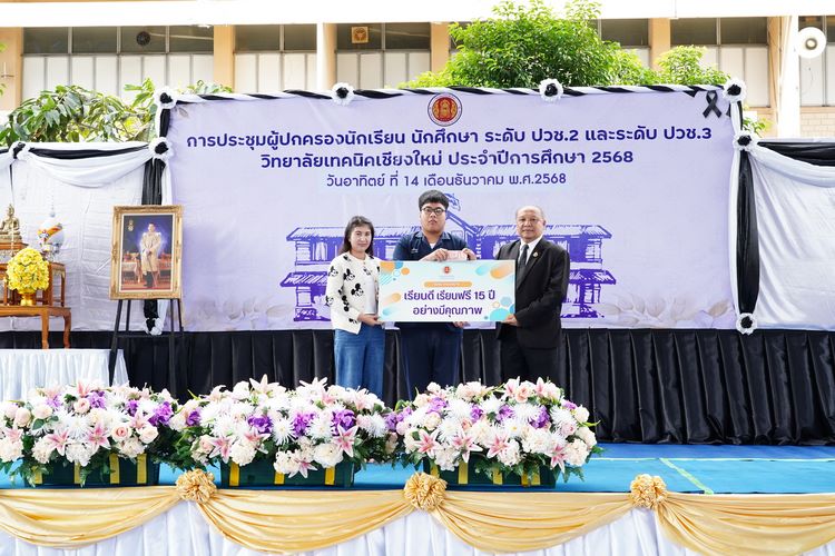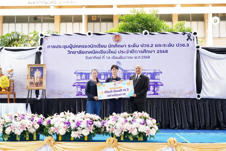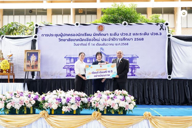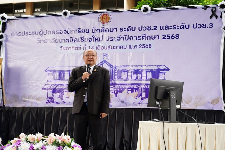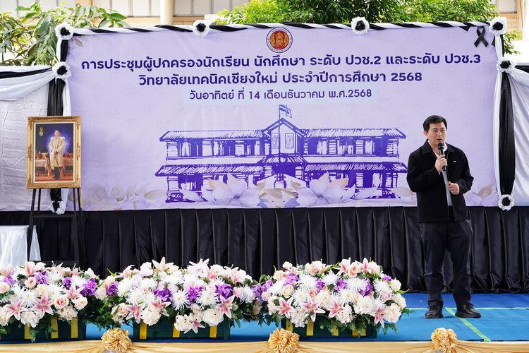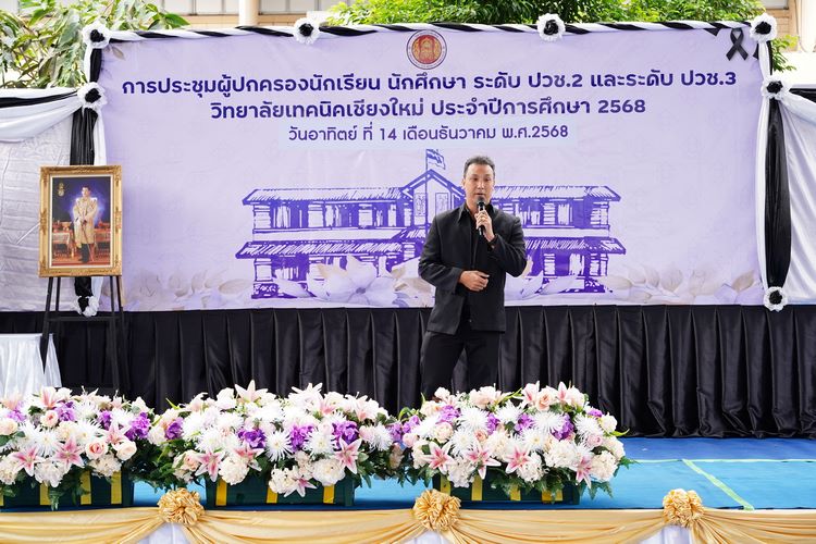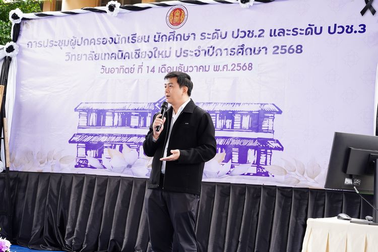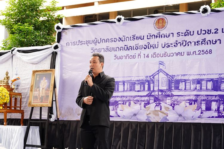 ดร.วัชรพงศ์ ฝั้นติ๊บ ผู้อำนวยการวิทยาลัยเทคนิคเชียงใหม่ ปฏิบัติหน้าที่ผู้อำนวยการสำนักงานอาชีวศึกษาจังหวัดเชียงใหม่และรักษาการในตำแหน่งที่ปรึกษาด้านนโยบายและแผน สำนักงานคณะกรรมการการอาชีวศึกษา เป็นประธานในพิธีเปิดการประชุมผู้ปกครองนักเรียน นักศึกษา ระดับชั้นปวช.2 และปวช.3 ประจำปีการศึกษา 2568
