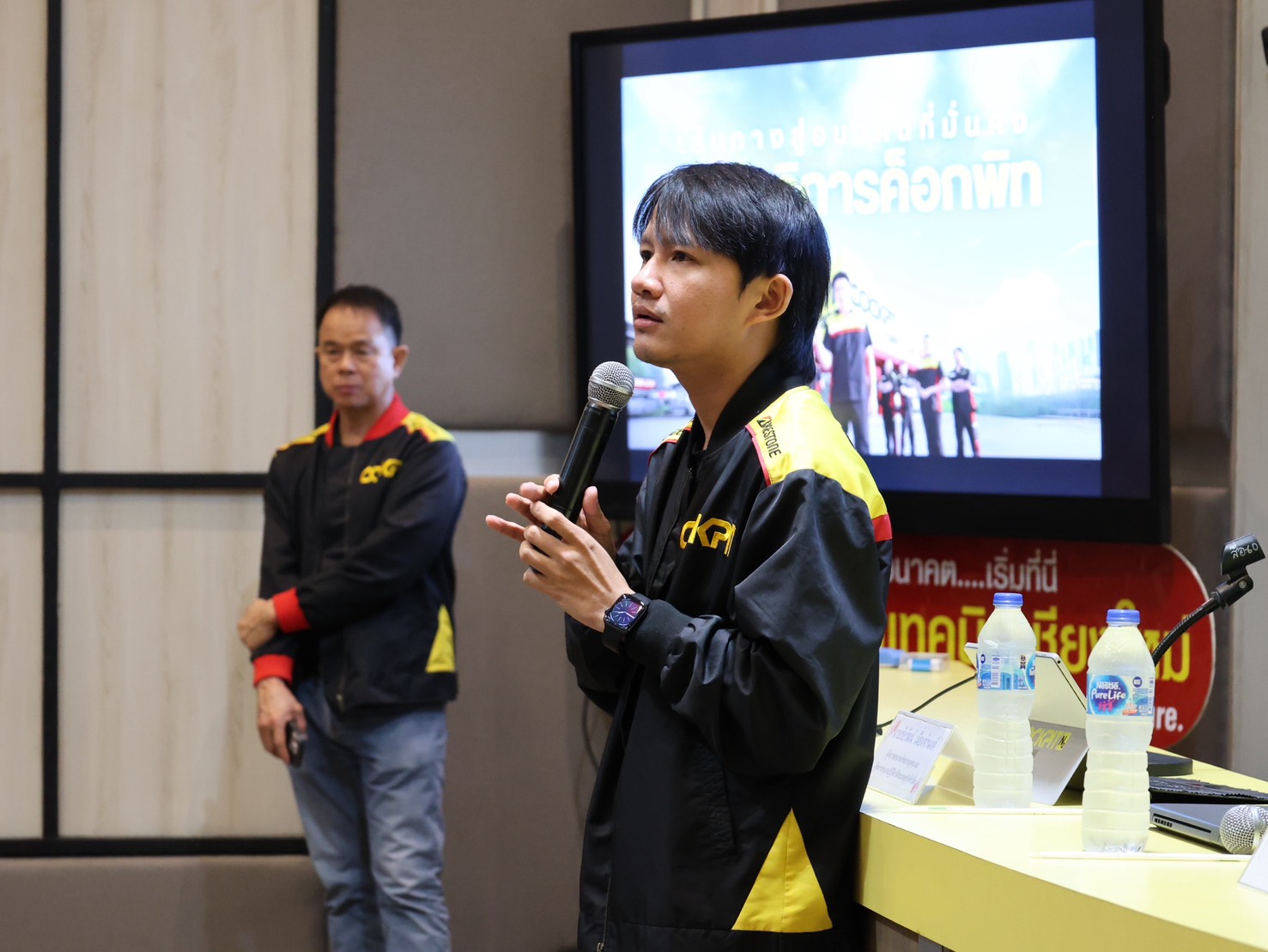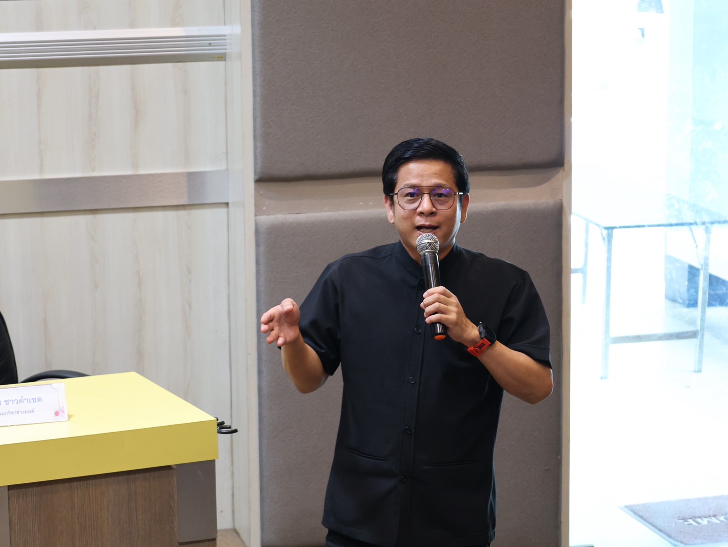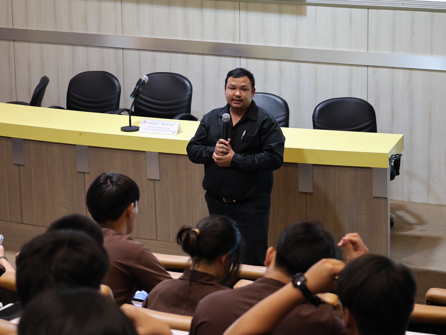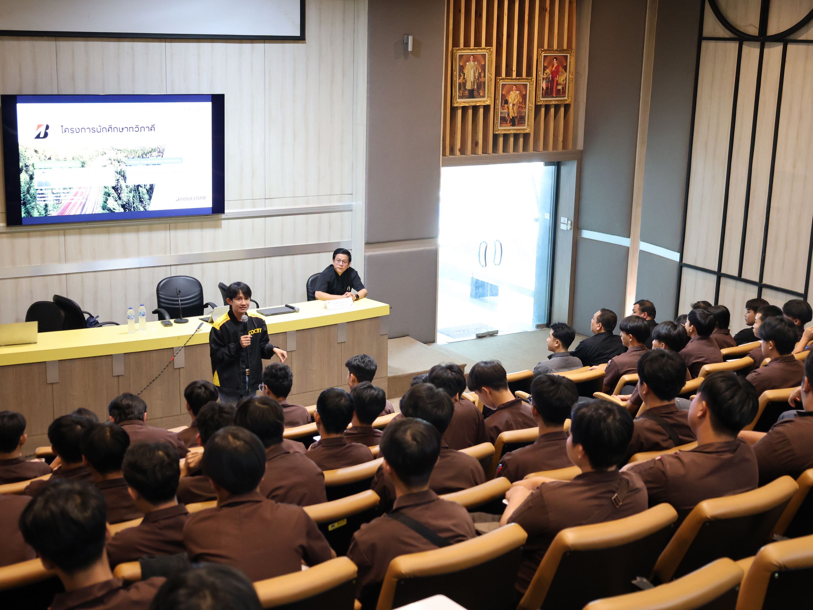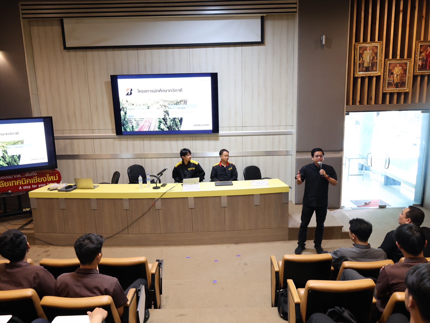 2. นายอดิศร พลีดี ผู้จัดการแผนกทรัพยากรบุคคล ในโอกาสเข้าประชาสัมพันธ์ โครงการศึกษาทวิภาคี ให้แก่นักเรียน นักศึกษา สาขาวิชาช่างยนต์ วิทยาลัยเทคนิคเชียงใหม่ เพื่อแนะนำแนวทางการจัดการเรียนการสอนแบบบูรณาการระหว่างสถานศึกษาและสถานประกอบการ เปิดโอกาสให้นักศึกษาได้ฝึกประสบการณ์จริงในสถานประกอบการ เรียนรู้จากการทำงานจริง ควบคู่กับการเรียนภาคทฤษฎีในสถานศึกษา