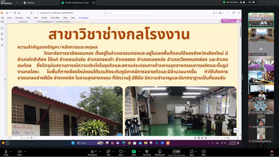 ดร.วัชรพงศ์ ฝั้นติ๊บ ผู้อำนวยการวิทยาลัยเทคนิคเชียงใหม่ ปฏิบัติหน้าที่ผู้อำนวยการสำนักงานอาชีวศึกษาจังหวัดเชียงใหม่ และรักษาการในตำแหน่งที่ปรึกษาด้านนโยบายและแผน สำนักงานคณะกรรมการการอาชีวศึกษา เป็นประธานการประชุมคณะกรรมการอาชีวศึกษาจังหวัดเชียงใหม่ ครั้งที่ 2/2568 โดยมี นางเสาวคนธ์ บุญญประภา รองผู้อำนวยการฝ่ายวิชาการ ปฏิบัติหน้าที่เลขาสำนักงานอาชีวศึกษาจังหวัดเชียงใหม่ คณะกรรมการอาชีวศึกษาจังหวัดเชียงใหม่ หน่วยงานที่เกี่ยวข้อง ข้าร่วมประชุมคณะกรรมการวิทยาลัยเทคนิคเชียงใหม่ ณ ห้องประชุมสุทธาสิริ วิทยาลัยเทคนิคเชียงใหม่ และเข้าร่วมการประชุมฯผ่านระบบออนไลน์ Zoom Meeting