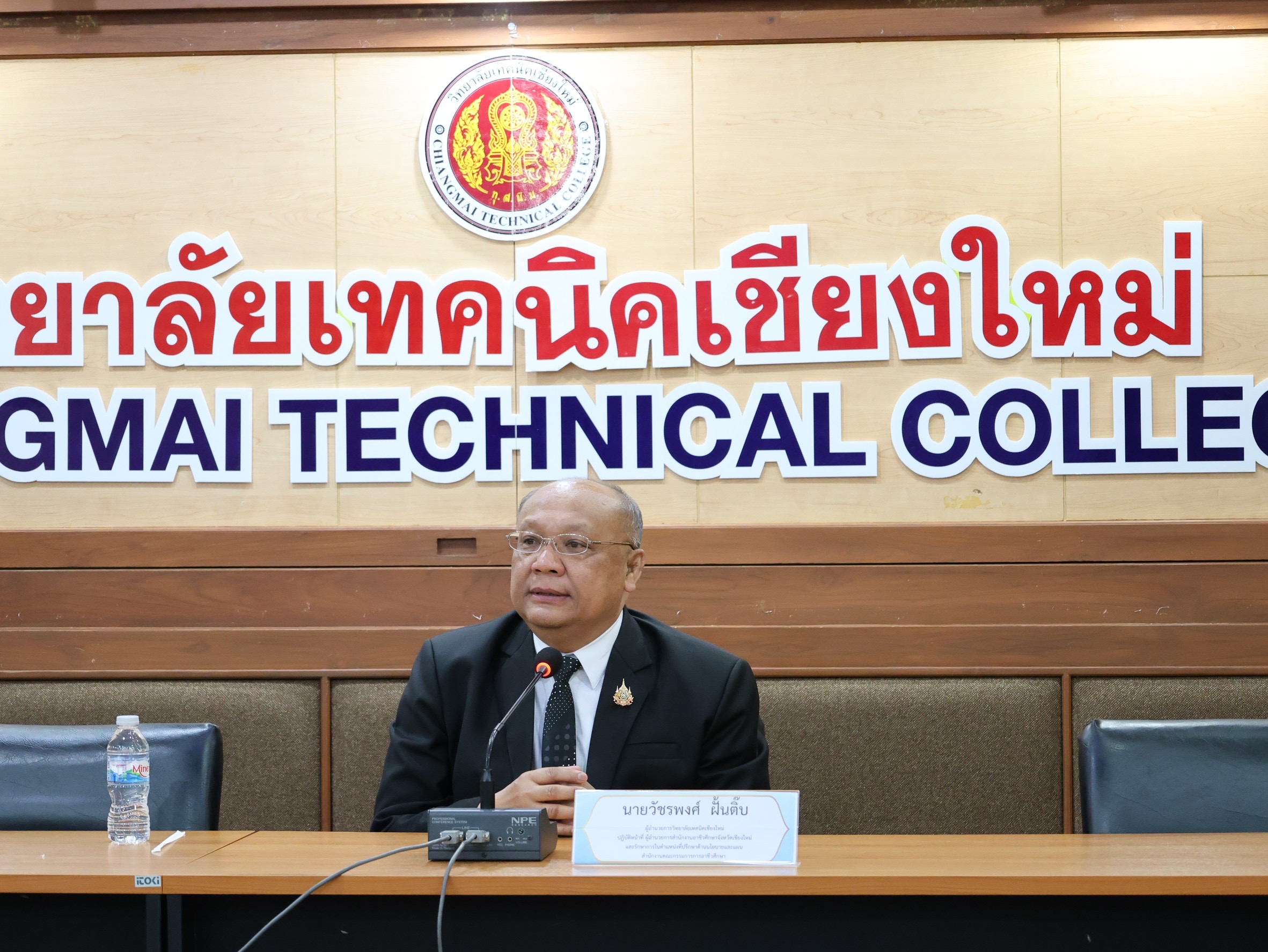 ดร.วัชรพงศ์ ฝั้นติ๊บ ผู้อำนวยการวิทยาลัยเทคนิคเชียงใหม่ ปฏิบัติหน้าที่ผู้อำนวยการสำนักงานอาชีวศึกษาจังหวัดเชียงใหม่ และรักษาการในตำแหน่งที่ปรึกษาด้านนโยบายและแผน สำนักงานคณะกรรมการการอาชีวศึกษา พร้อมด้วยคณะผู้บริหารวิทยาลัยเทคนิคเชียงใหม่ เข้าร่วมรับฟังการนำเสนอผลการฝึกปฏิบัติงาน ทางการบริหารศึกษา ของนักศึกษาสาขาวิชาการบริหารการศึกษา มหาวิทยาลัยฟาร์อีสเทอร์น