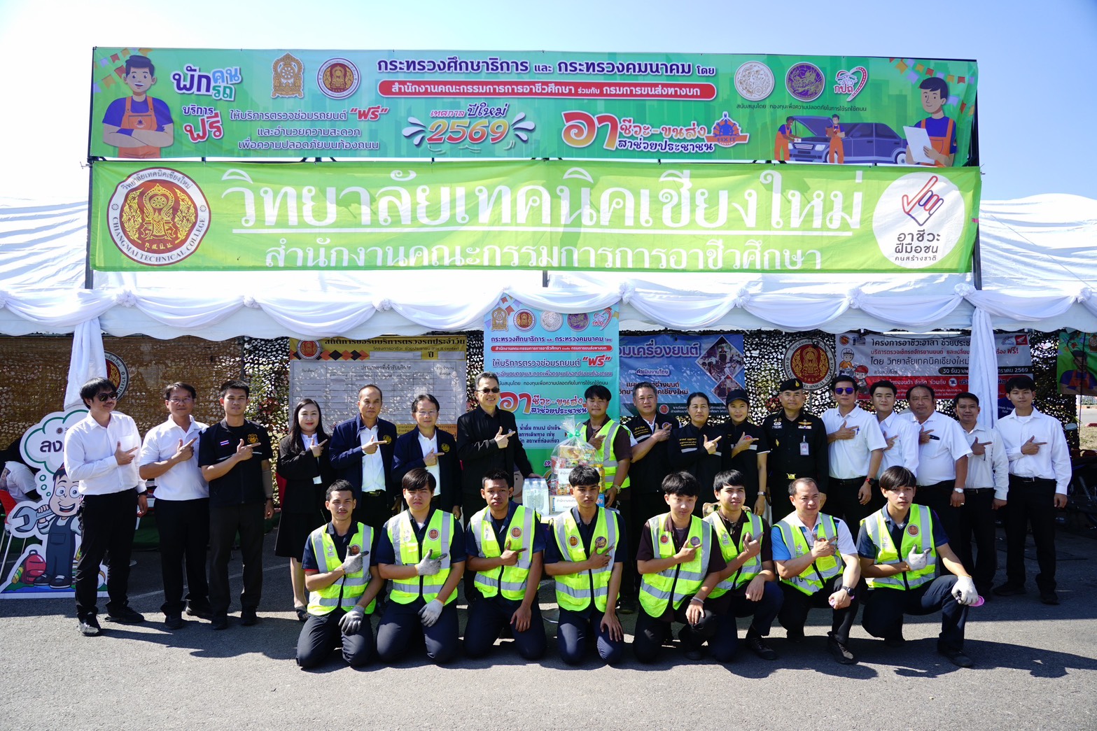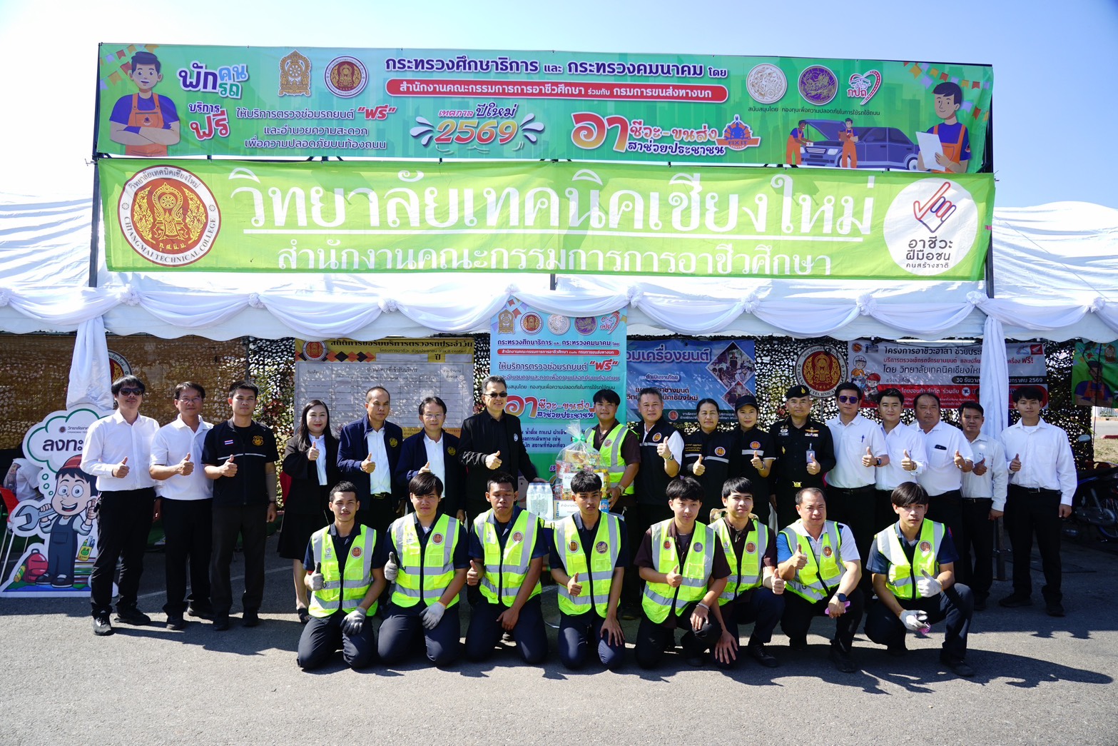 นำโดย ดร.วัชรพงศ์ ฝั้นติ๊บ ผู้อำนวยการวิทยาลัยเทคนิคเชียงใหม่ ปฏิบัติหน้าที่ผู้อำนวยการสำนักงานอาชีวศึกษาจังหวัดเชียงใหม่ และรักษาการในตำแหน่งที่ปรึกษาด้านนโยบายและแผน สำนักงานคณะกรรมการการอาชีวศึกษา พร้อมด้วยคณะผู้บริหาร คณะครู นักเรียน นักศึกษา แผนกวิชาช่างยนต์ และทีมงานโครงการพิเศษและบริการชุมชน ร่วมจัดตั้งศูนย์ฯในกิจกรรม “อาชีวะ–ขนส่ง อาสาช่วยประชาชน เทศกาลปีใหม่ พ.ศ. 2569”