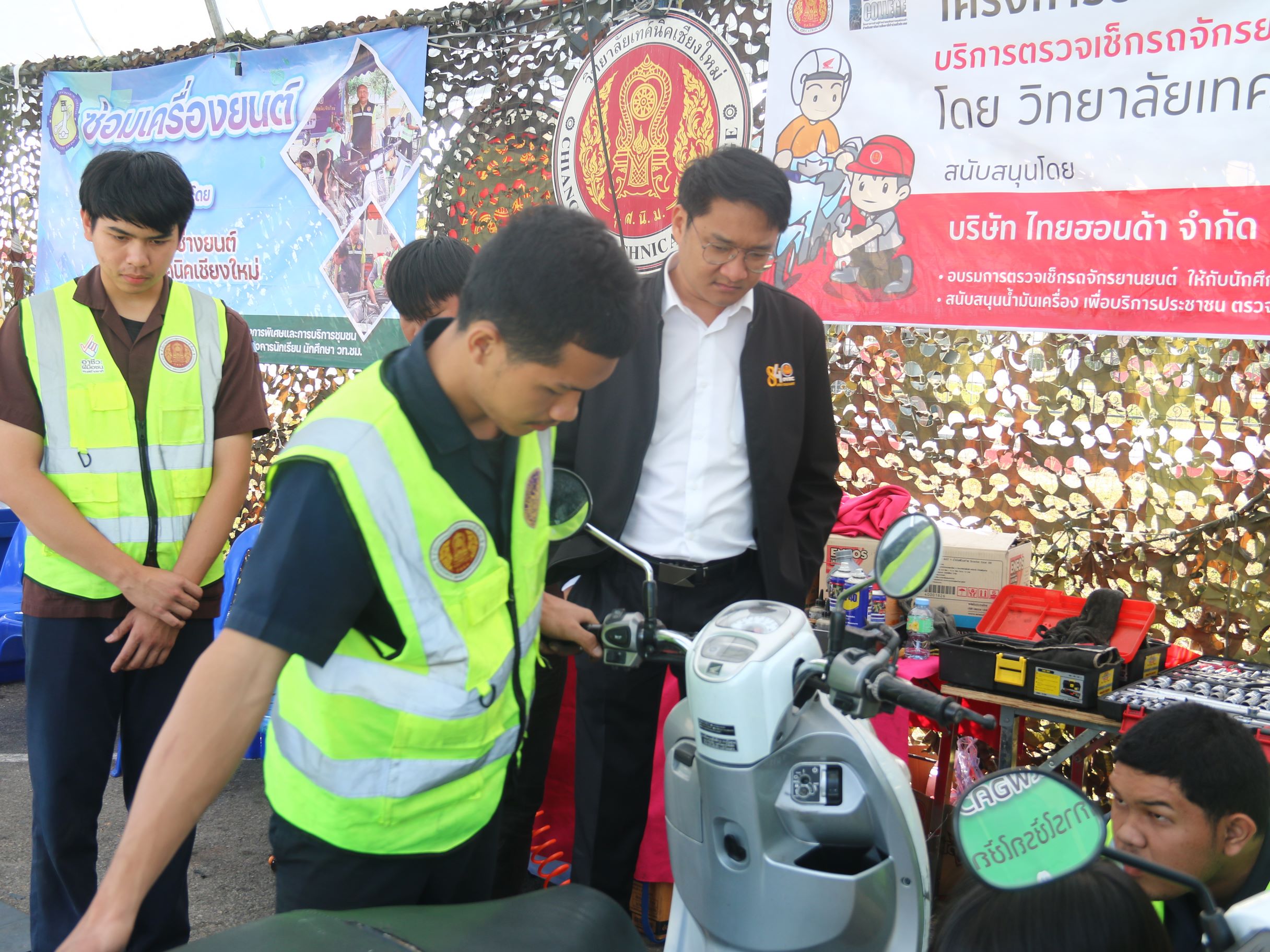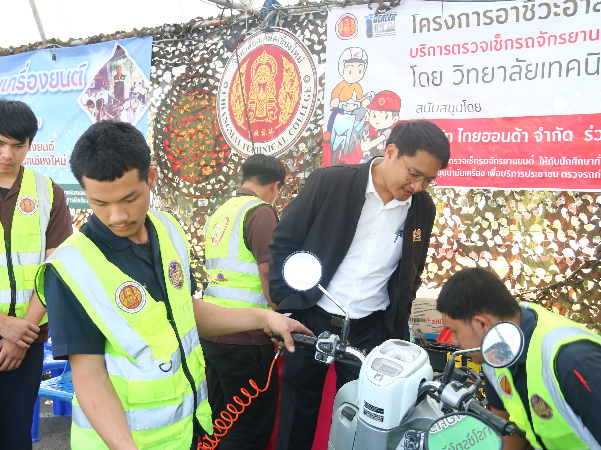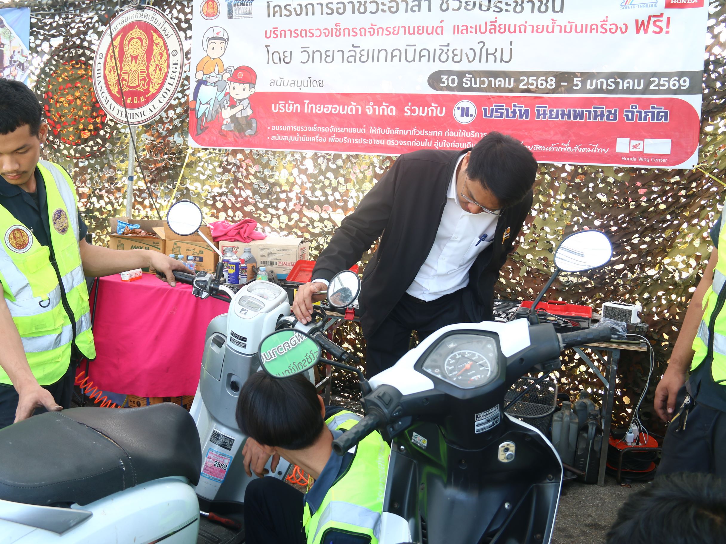 นำโดย ดร.วัชรพงศ์ ฝั้นติ๊บ ผู้อำนวยการวิทยาลัยเทคนิคเชียงใหม่ ปฏิบัติหน้าที่ผู้อำนวยการสำนักงานอาชีวศึกษาจังหวัดเชียงใหม่ และรักษาการในตำแหน่งที่ปรึกษาด้านนโยบายและแผน สำนักงานคณะกรรมการการอาชีวศึกษา พร้อมด้วยคณะผู้บริหาร คณะครู นักเรียน นักศึกษา แผนกวิชาช่างยนต์ และทีมงานโครงการพิเศษและบริการชุมชน ร่วมจัดตั้งศูนย์ฯในกิจกรรม “อาชีวะ–ขนส่ง อาสาช่วยประชาชน เทศกาลปีใหม่ พ.ศ. 2569”