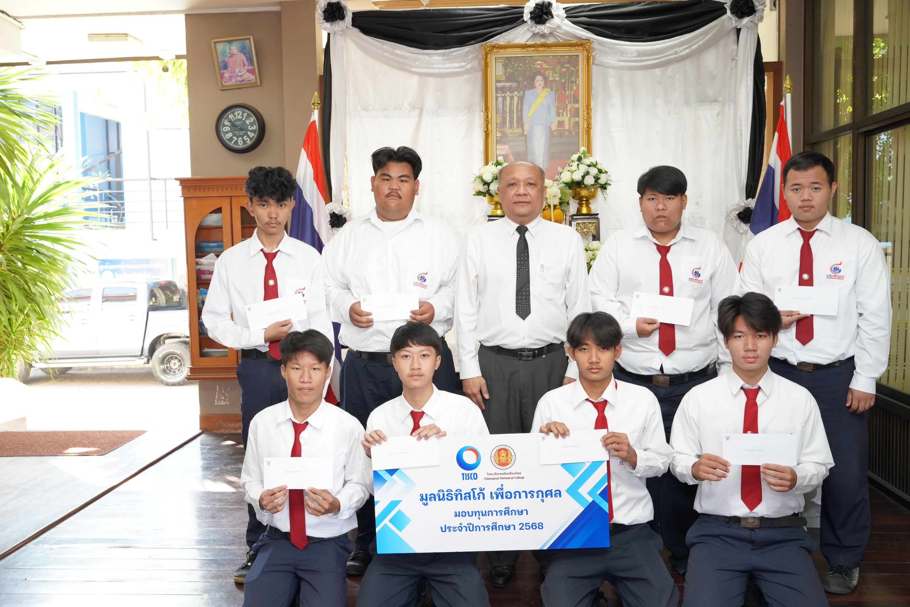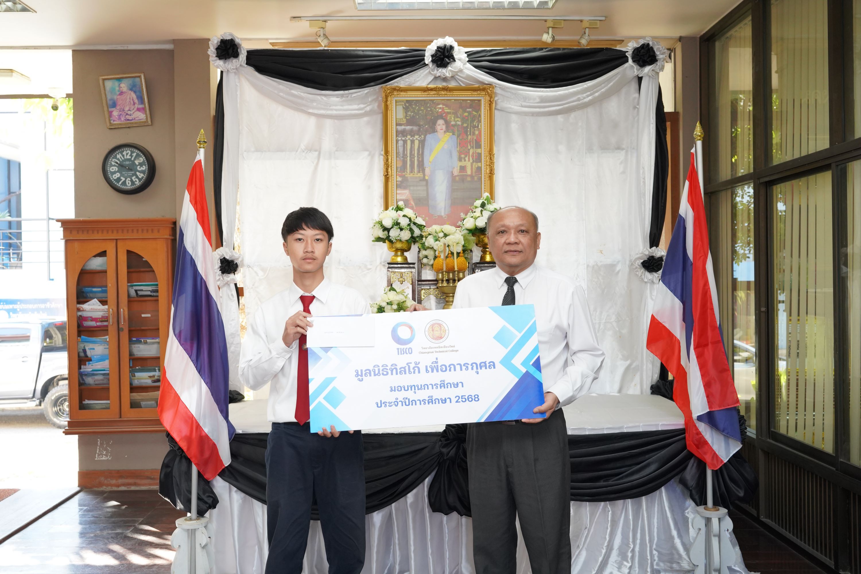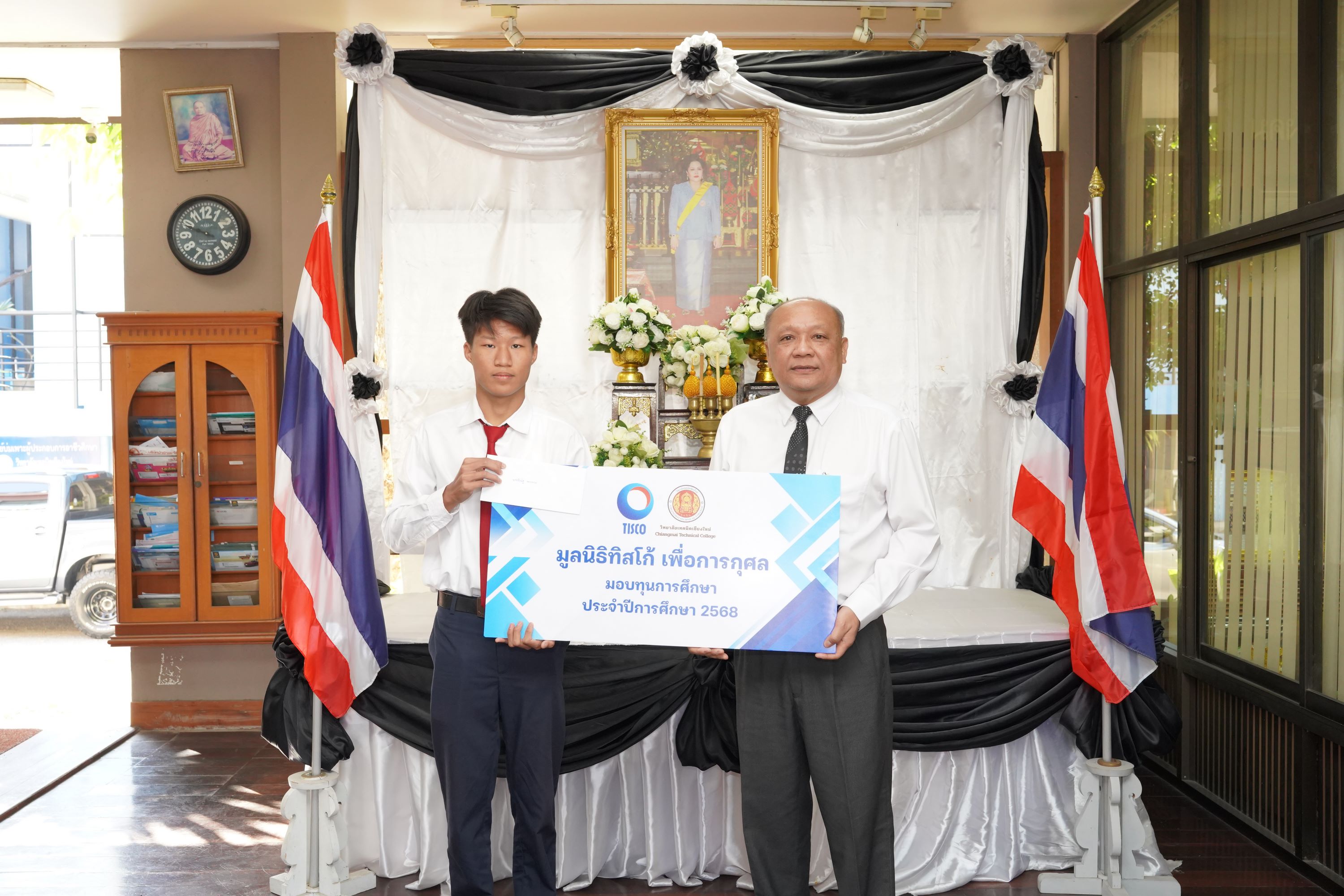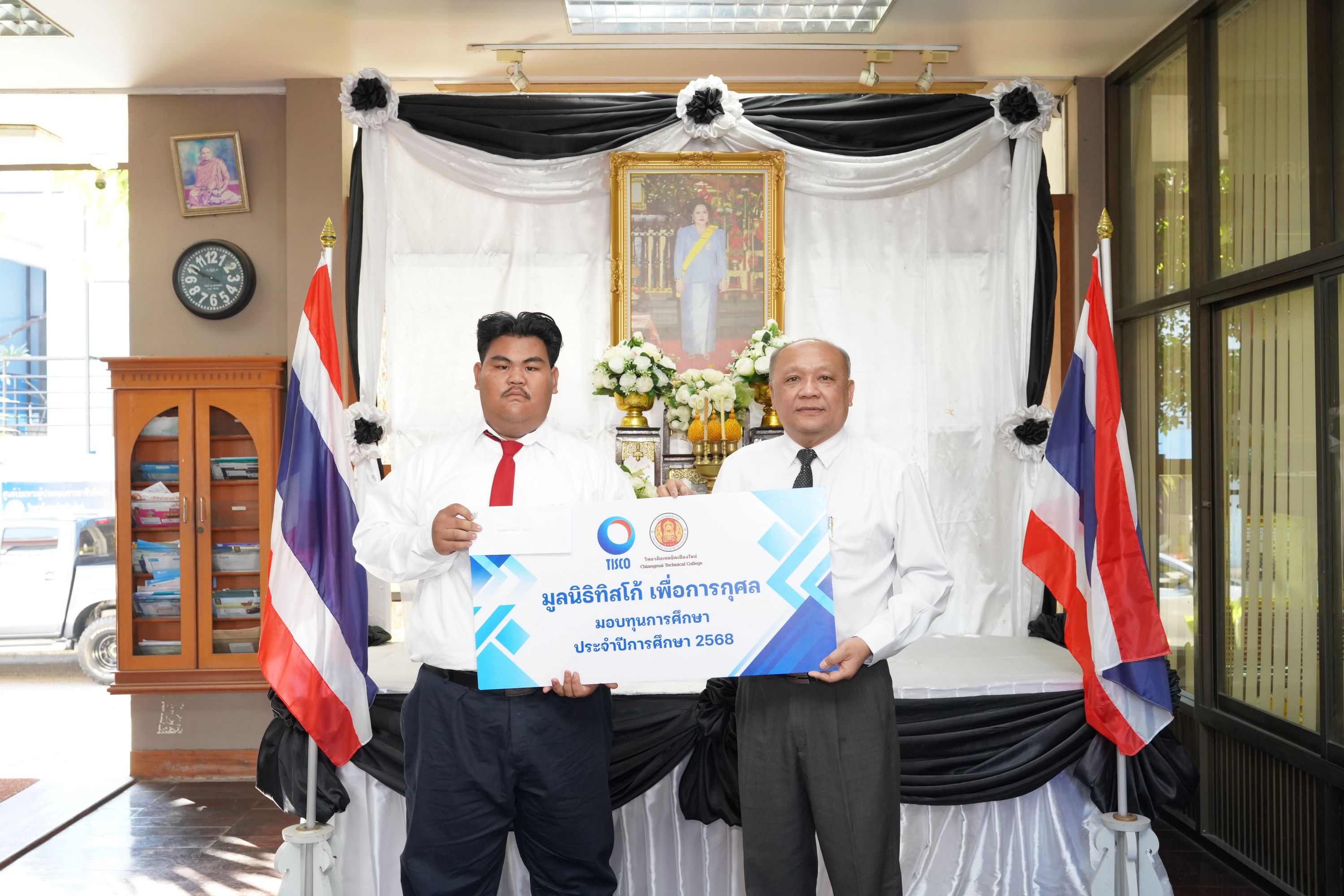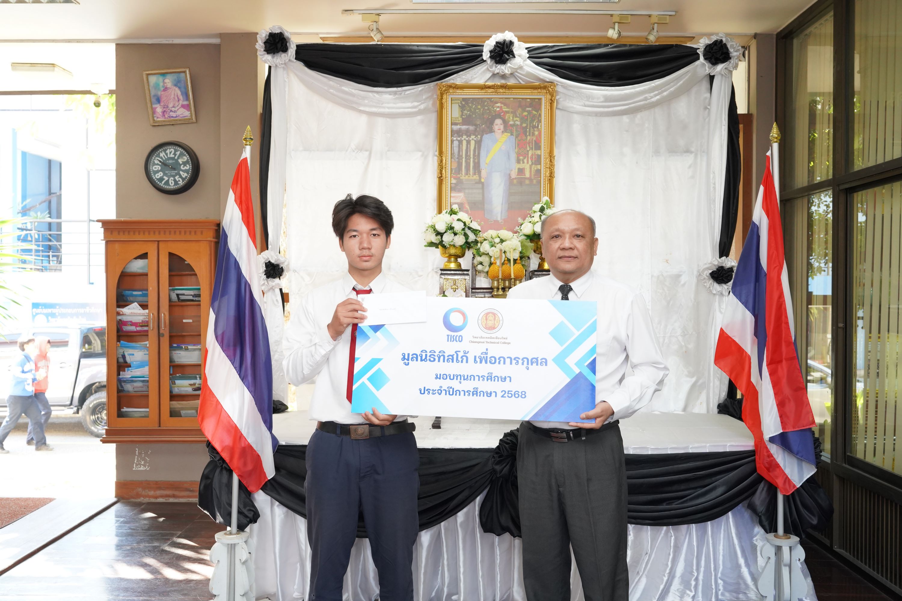 ดร.วัชรพงศ์ ฝั้นติ๊บ ผู้อำนวยการวิทยาลัยเทคนิคเชียงใหม่ ปฏิบัติหน้าที่ผู้อำนวยการสำนักงานอาชีวศึกษาจังหวัดเชียงใหม่ และรักษาการในตำแหน่งที่ปรึกษาด้านนโยบายและแผน สำนักงานคณะกรรมการการอาชีวศึกษา เป็นประธานมอบทุนการศึกษาจาก มูลนิธิทิสโก้ เพื่อการกุศล ให้แก่นักเรียน นักศึกษา วิทยาลัยเทคนิคเชียงใหม่ จำนวนทั้งสิ้น 9 ราย รายละ 7,000 บาท เพื่อเป็นการสนับสนุนและส่งเสริมโอกาสทางการศึกษาแก่ผู้เรียนที่มีความประพฤติดี มีผลการเรียนอยู่ในเกณฑ์ที่เหมาะสม และขาดแคลนทุนทรัพย์ ให้สามารถศึกษาเล่าเรียนจนสำเร็จการศึกษา และพัฒนาศักยภาพของตนเองอย่างเต็มความสามารถ