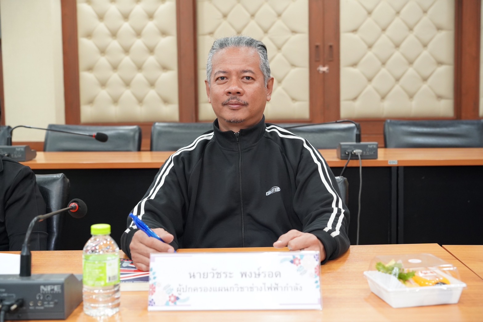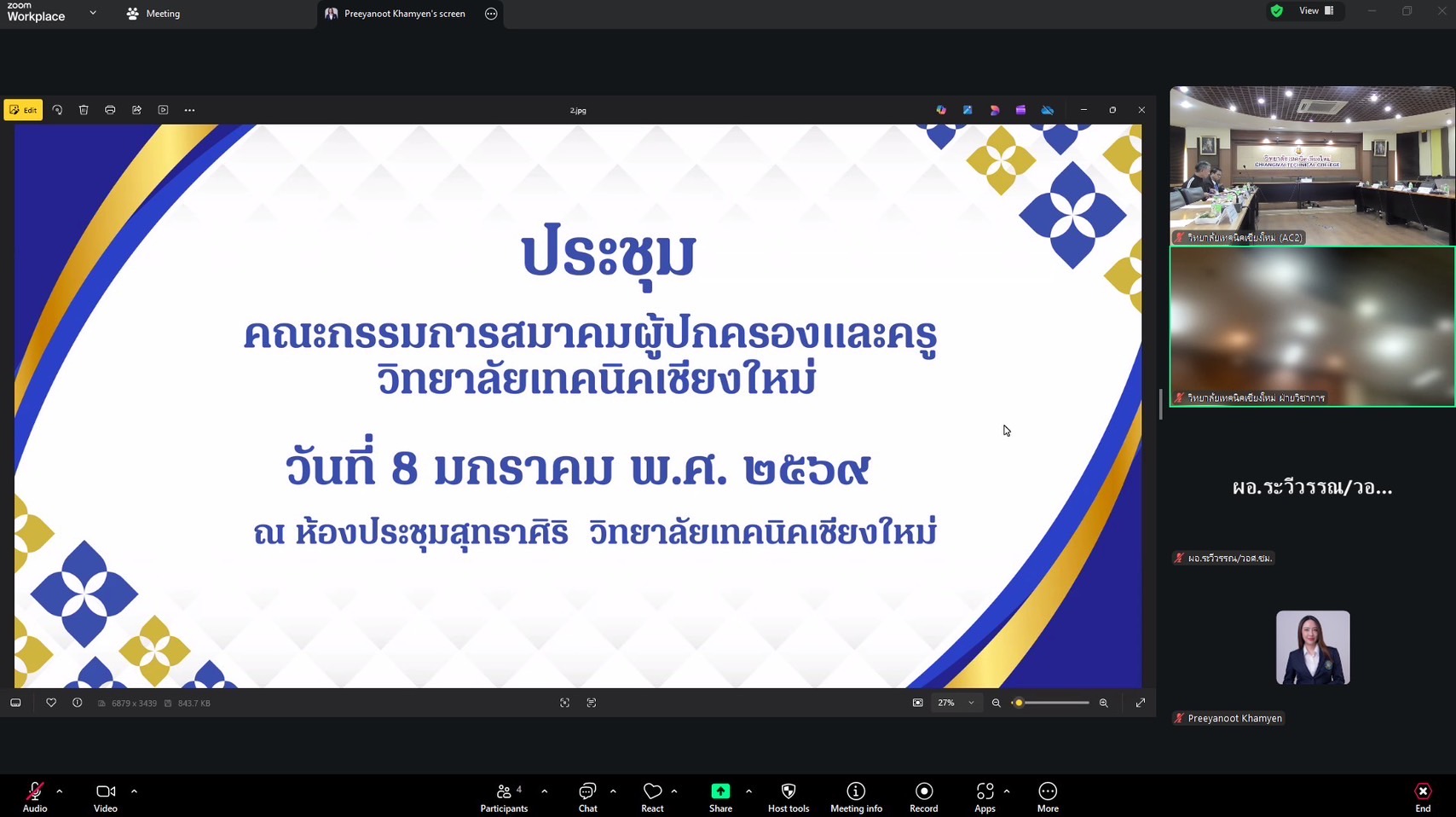 ดร.วัชรพงศ์ ฝั้นติ๊บ ผู้อำนวยการวิทยาลัยเทคนิคเชียงใหม่ ปฏิบัติหน้าที่ผู้อำนวยการสำนักงานอาชีวศึกษาจังหวัดเชียงใหม่ และรักษาการในตำแหน่งที่ปรึกษาด้านนโยบายและแผน สำนักงานคณะกรรมการการอาชีวศึกษา พร้อมด้วยคณะผู้บริหารวิทยาลัยเทคนิคเชียงใหม่ กรรมการผู้ทรงคุณวุฒิแผนกวิชาช่างเชื่อม ผู้ทรงคุณวุฒิแผนกวิชาช่างกลโรงงาน ผู้ปกครองแผนกวิชาช่างไฟฟ้า ผู้ปกครองแผนกวิชาช่างก่อสร้าง ผู้ปกครองแผนกวิชาช่างยนต์ ผู้แทนครูแผนกวิชาช่างเชื่อมโลหะ ผู้แทนครูแผนกวิชาช่างไฟฟ้าและคณะดำเนินงานฯ วิทยาลัยเทคนิคเชียงใหม่ เข้าร่วมประชุมคณะกรรมการสมาคมผู้ปกครองและคุณครู วิทยาลัยเทคนิคเชียงใหม่ณ ห้องประชุมสุทธาสิริ วิทยาลัยเทคนิคเชียงใหม่ และเข้าร่วมการประชุมฯผ่านระบบออนไลน์ Zoom Meeting