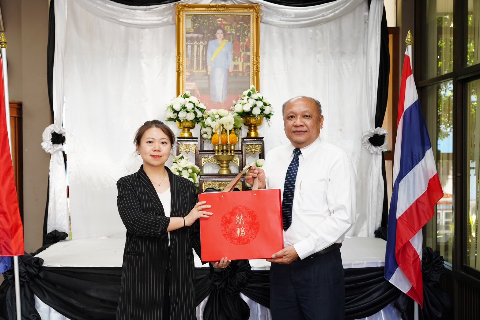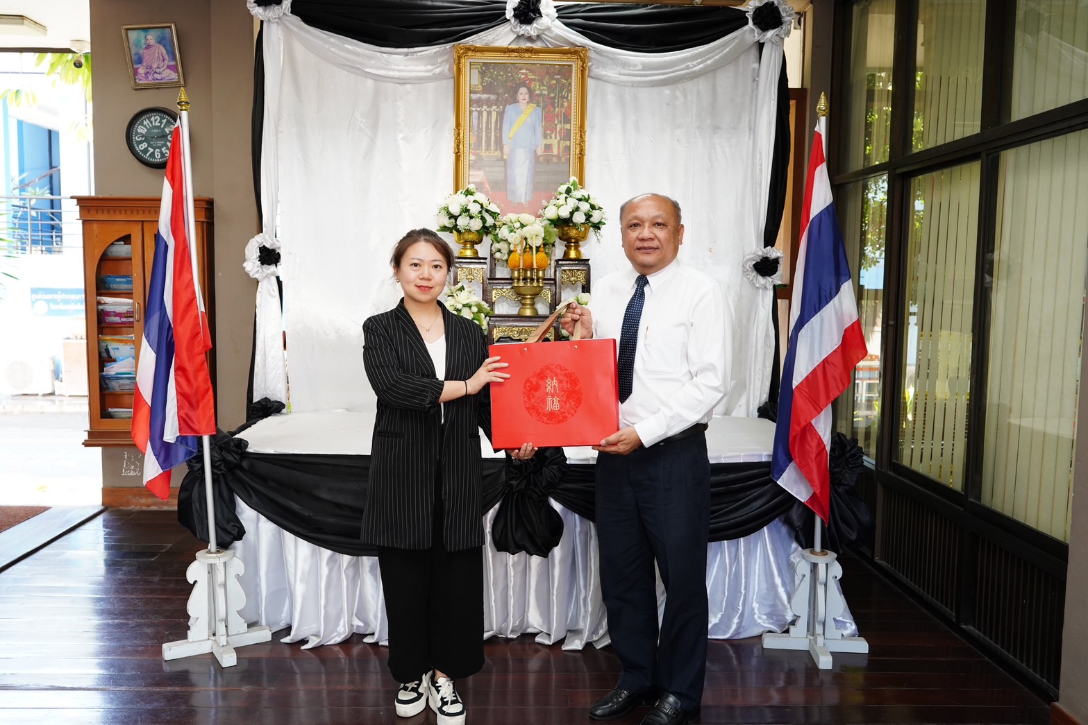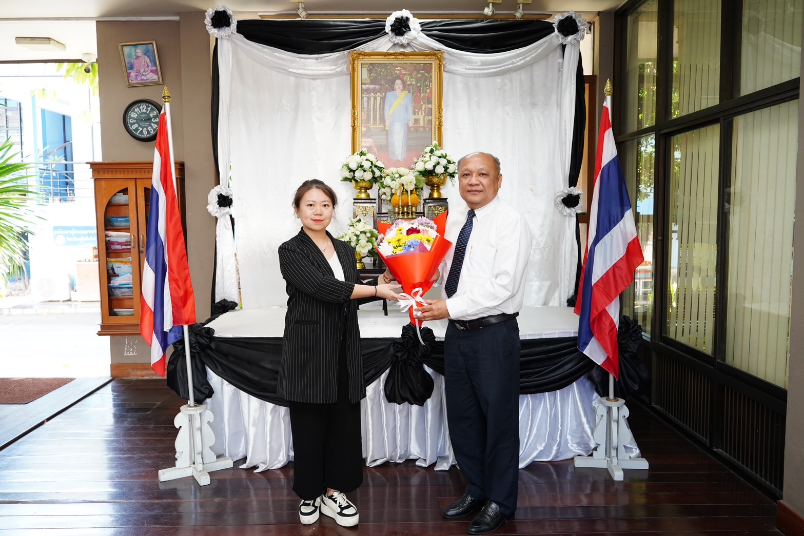 ดร.วัชรพงศ์ ฝั้นติ๊บ ผู้อำนวยการวิทยาลัยเทคนิคเชียงใหม่ ปฏิบัติหน้าที่ผู้อำนวยการสำนักงานอาชีวศึกษาจังหวัดเชียงใหม่ และรักษาการในตำแหน่งที่ปรึกษาด้านนโยบายและแผนได้ให้เกียรติมอบช่อดอกไม้ต้อนรับ ผศ.ดร.ไป๋ (Bai Xin) จากมหาวิทยาลัยเทคนิคและวิศวกรรมเสฉวน ณ วิทยาลัยเทคนิคเชียงใหม่