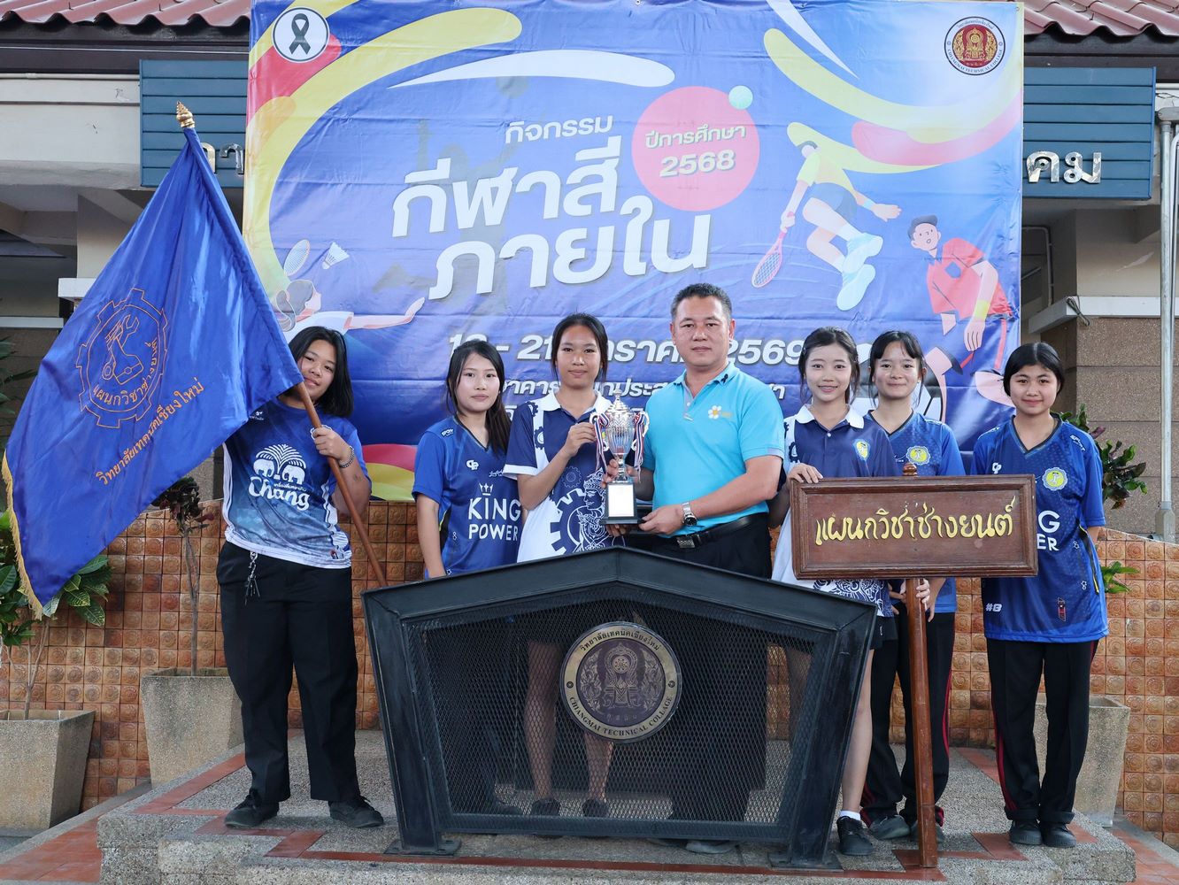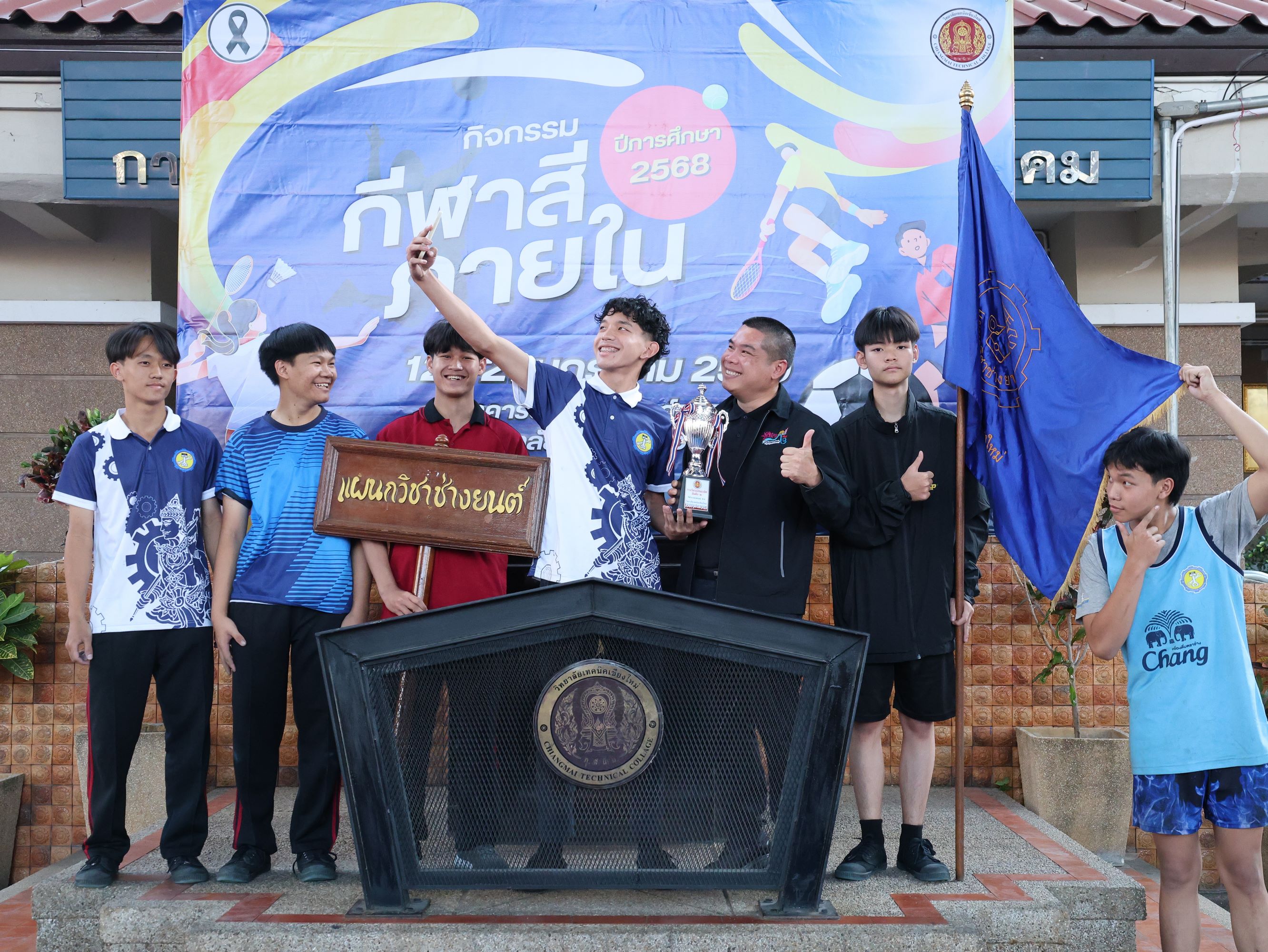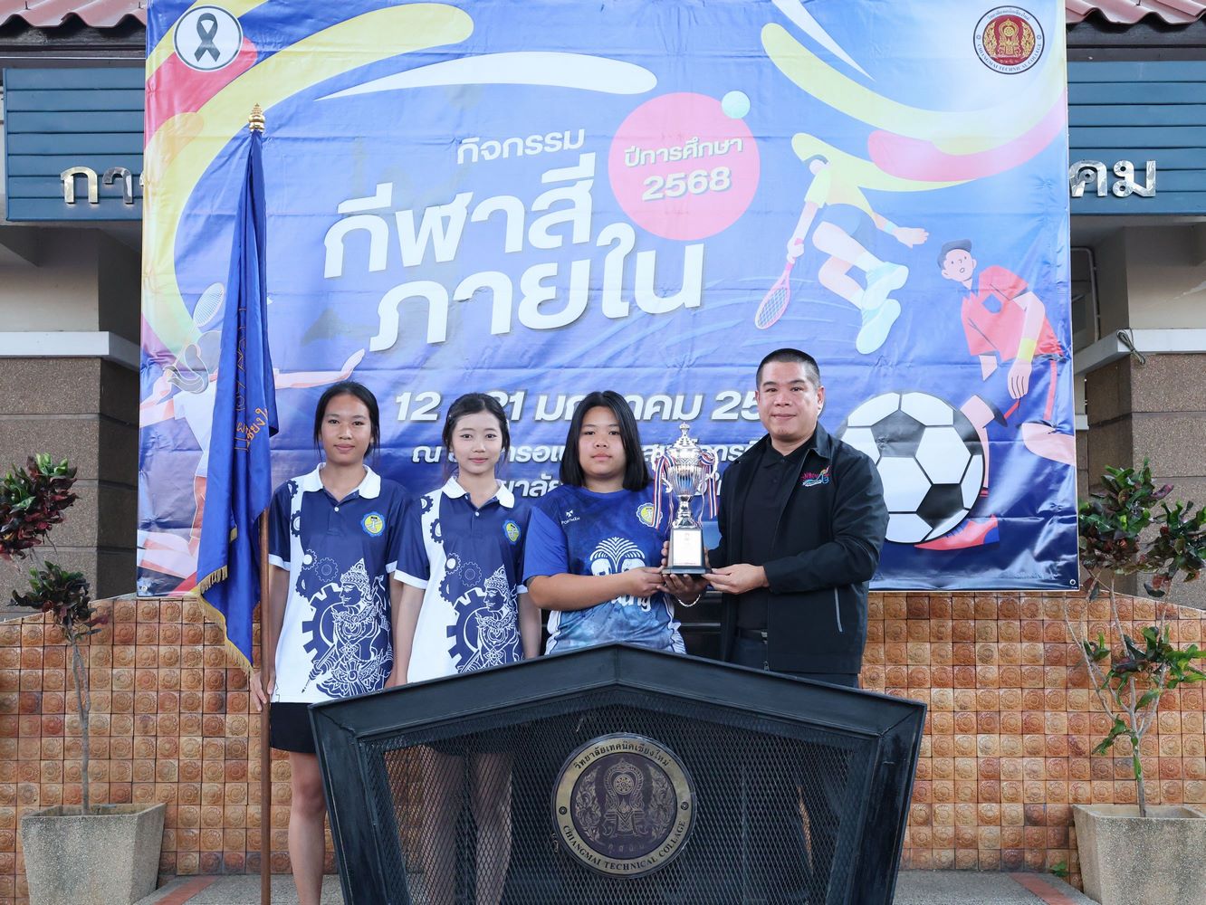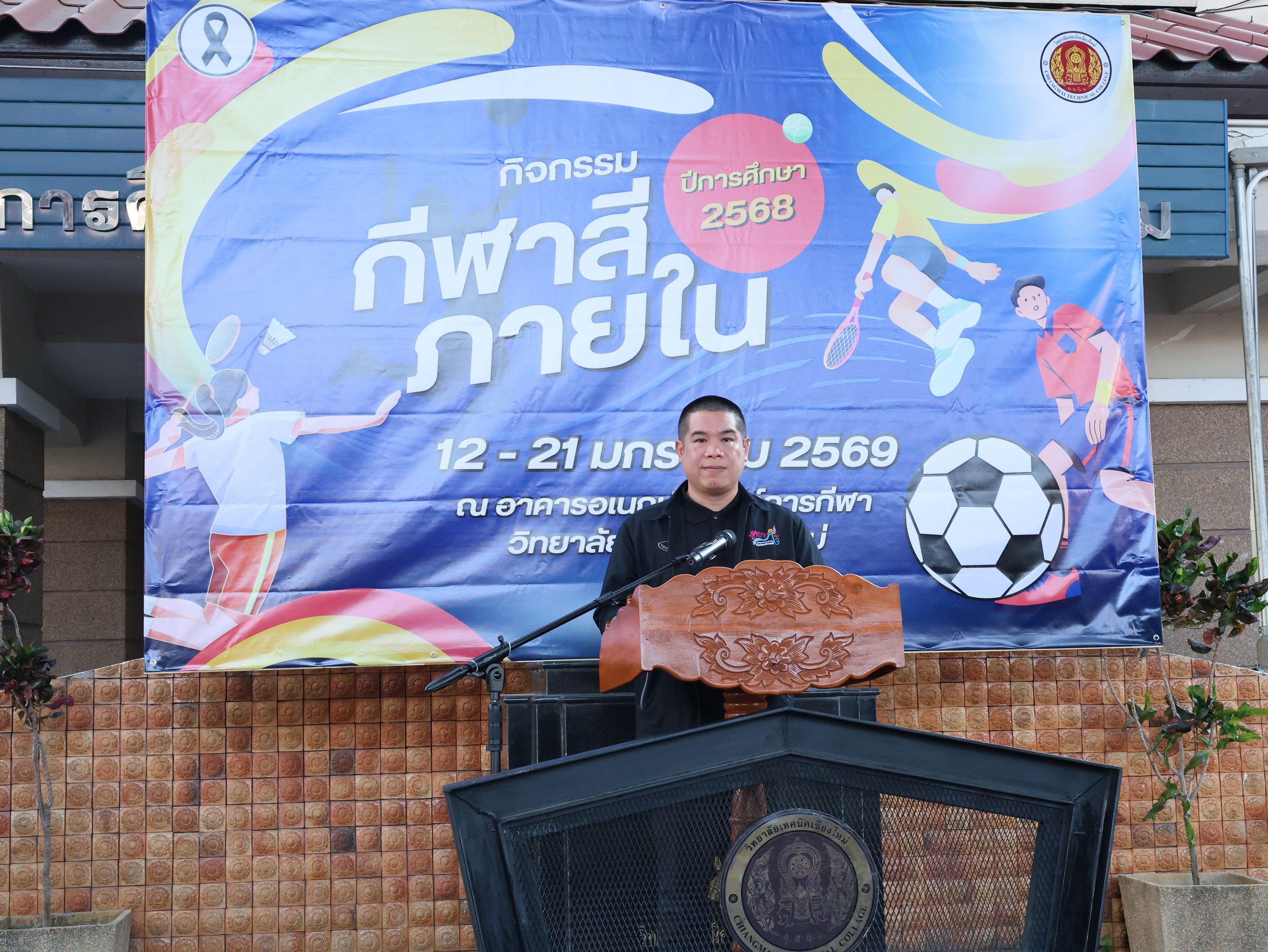 ดร.วัชรพงศ์ ฝั้นติ๊บ ผู้อำนวยการวิทยาลัยเทคนิคเชียงใหม่ ปฏิบัติหน้าที่ผู้อำนวยการสำนักงานอาชีวศึกษาจังหวัดเชียงใหม่ และรักษาการในตำแหน่งที่ปรึกษาด้านนโยบายและแผน สำนักงานคณะกรรมการการอาชีวศึกษา มอบหมายให้ นายชรันต์ยุทธ์ บุญยง รองผู้อำนวยการฝ่ายบริหารทรัพยากร เป็นประธานในพิธีปิด การแข่งขันกีฬาสีภายใน ต้านยาเสพติด ประจำปีการศึกษา 2568 ของวิทยาลัยเทคนิคเชียงใหม่ โดยมีนายสุจินต์ วังใหม่ รองผู้อำนวยการ ฝ่ายพัฒนากิจการนักเรียน นักศึกษา และนางศศิกาญจน์ เรือนศาสตร์ รองผู้อำนวยการฝ่ายแผนงานและความร่วมมือ ร่วมมอบโล่รางวัล พร้อมด้วยคณะครู บุคลากรทางการศึกษา ตลอดจนนักเรียน นักศึกษา เข้าร่วมในพิธีอย่างพร้อมเพรียง ท่ามกลางบรรยากาศแห่งความคึกคัก สนุกสนาน และเปี่ยมไปด้วยพลังสามัคคี ณ อาคารอเนกประสงค์การกีฬา วิทยาลัยเทคนิคเชียงใหม่