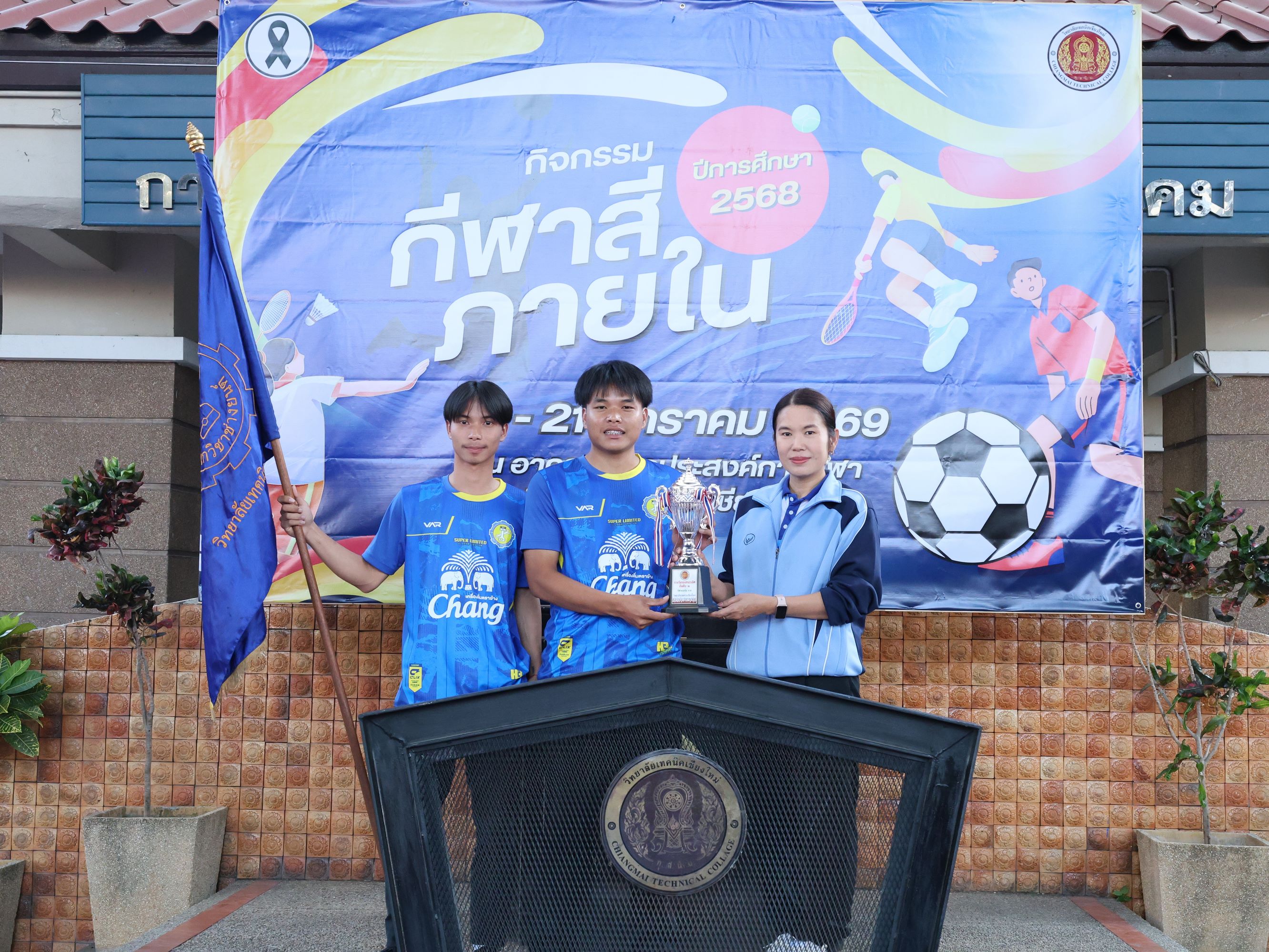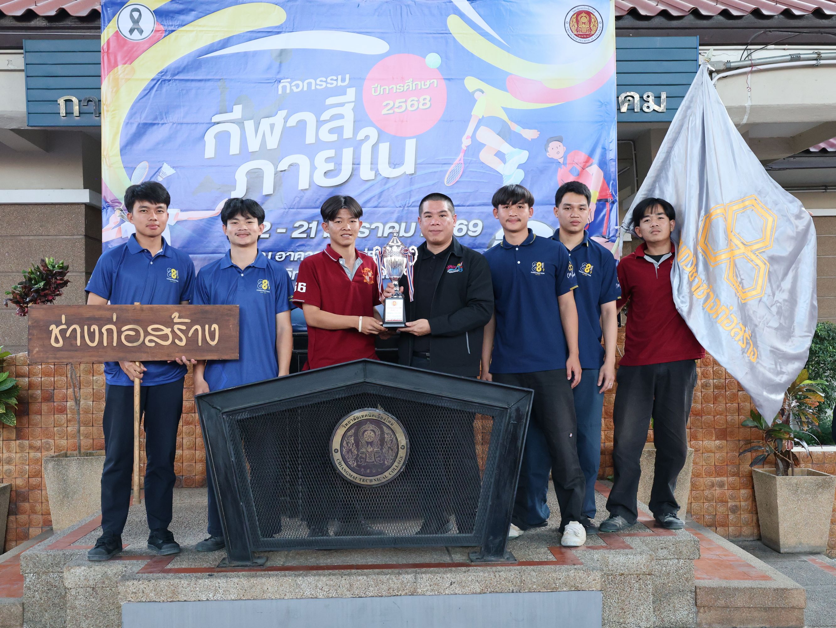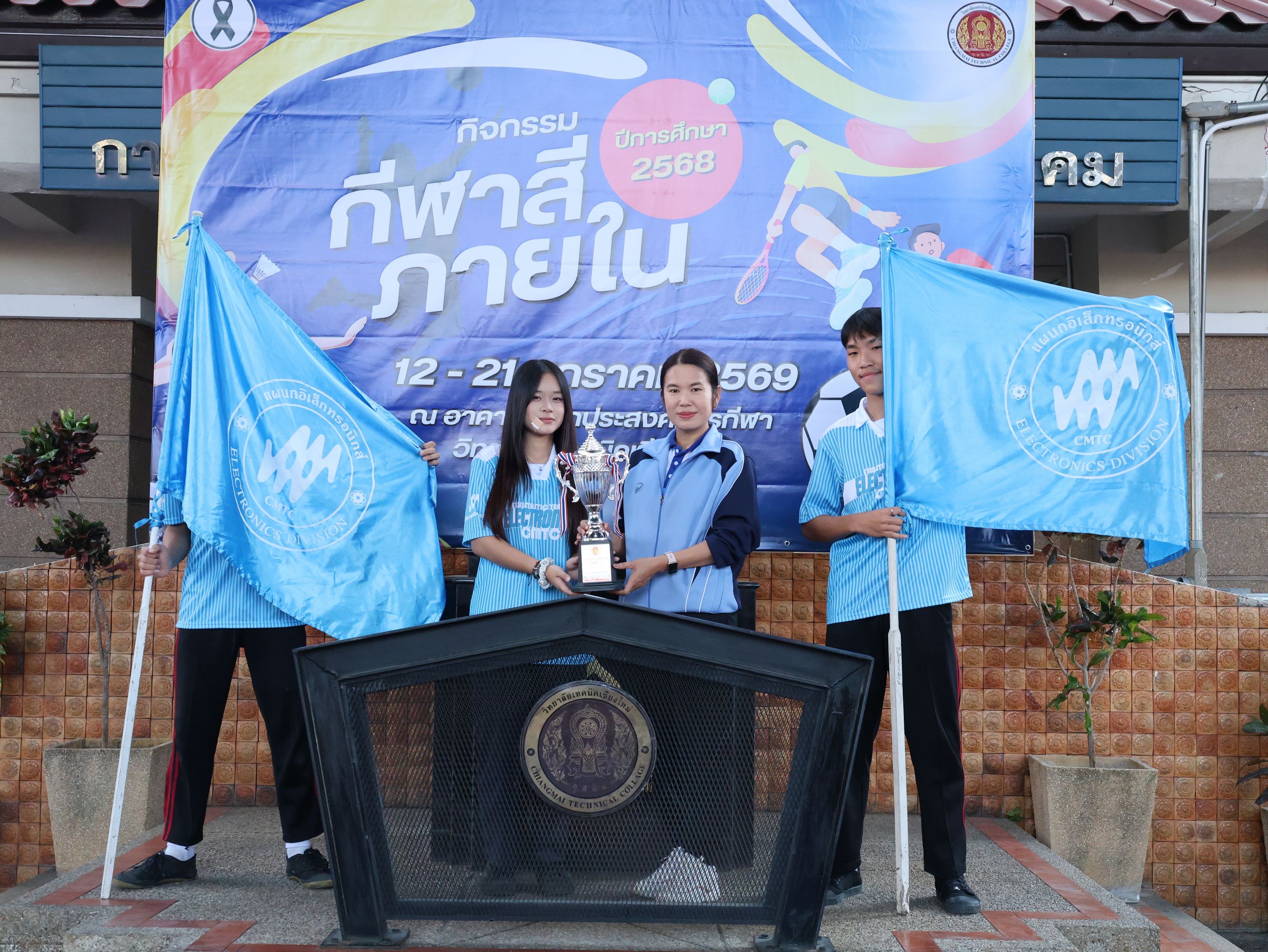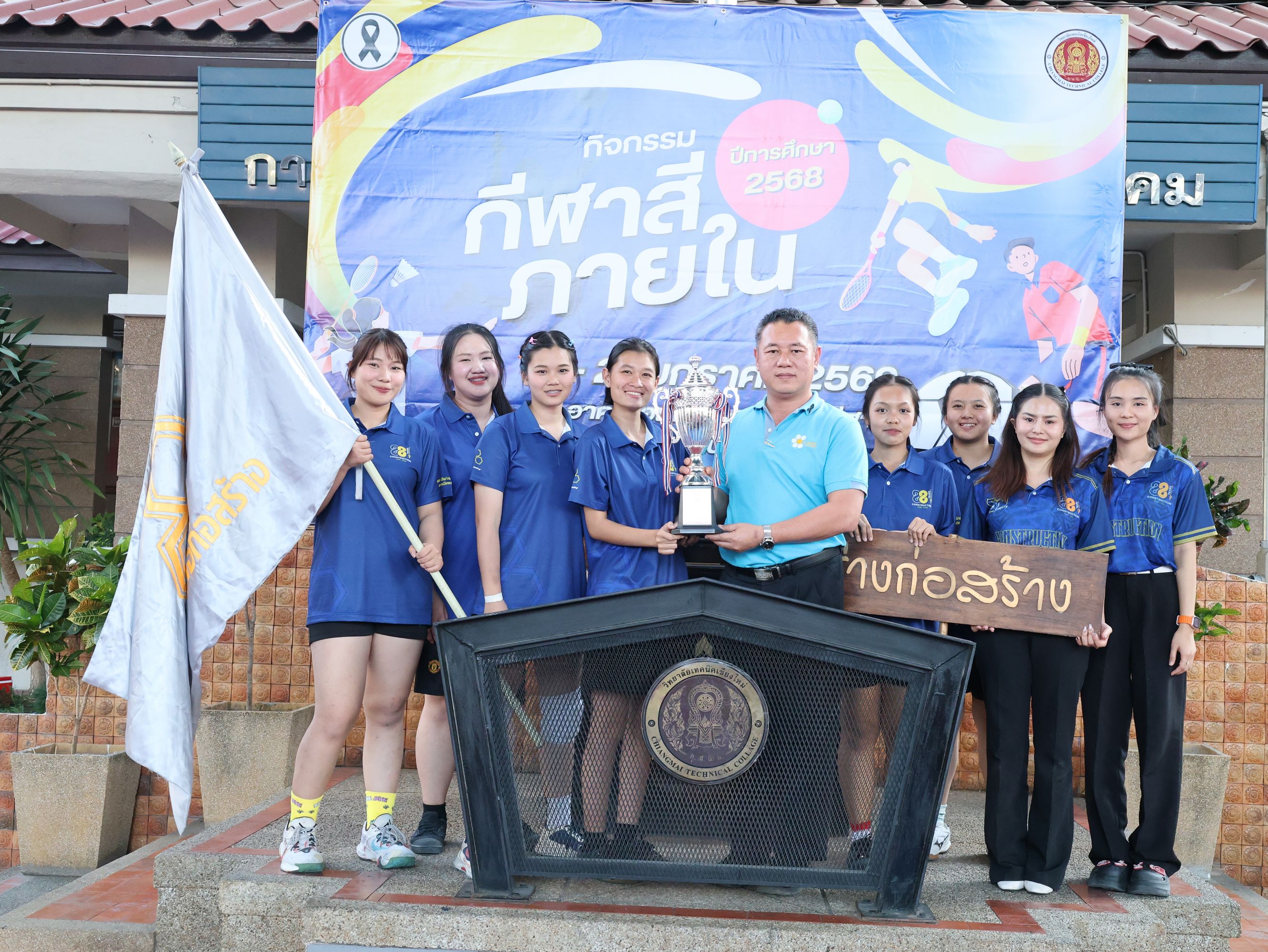 ดร.วัชรพงศ์ ฝั้นติ๊บ ผู้อำนวยการวิทยาลัยเทคนิคเชียงใหม่ ปฏิบัติหน้าที่ผู้อำนวยการสำนักงานอาชีวศึกษาจังหวัดเชียงใหม่ และรักษาการในตำแหน่งที่ปรึกษาด้านนโยบายและแผน สำนักงานคณะกรรมการการอาชีวศึกษา มอบหมายให้ นายชรันต์ยุทธ์ บุญยง รองผู้อำนวยการฝ่ายบริหารทรัพยากร เป็นประธานในพิธีปิด การแข่งขันกีฬาสีภายใน ต้านยาเสพติด ประจำปีการศึกษา 2568 ของวิทยาลัยเทคนิคเชียงใหม่ โดยมีนายสุจินต์ วังใหม่ รองผู้อำนวยการ ฝ่ายพัฒนากิจการนักเรียน นักศึกษา และนางศศิกาญจน์ เรือนศาสตร์ รองผู้อำนวยการฝ่ายแผนงานและความร่วมมือ ร่วมมอบโล่รางวัล พร้อมด้วยคณะครู บุคลากรทางการศึกษา ตลอดจนนักเรียน นักศึกษา เข้าร่วมในพิธีอย่างพร้อมเพรียง ท่ามกลางบรรยากาศแห่งความคึกคัก สนุกสนาน และเปี่ยมไปด้วยพลังสามัคคี ณ อาคารอเนกประสงค์การกีฬา วิทยาลัยเทคนิคเชียงใหม่