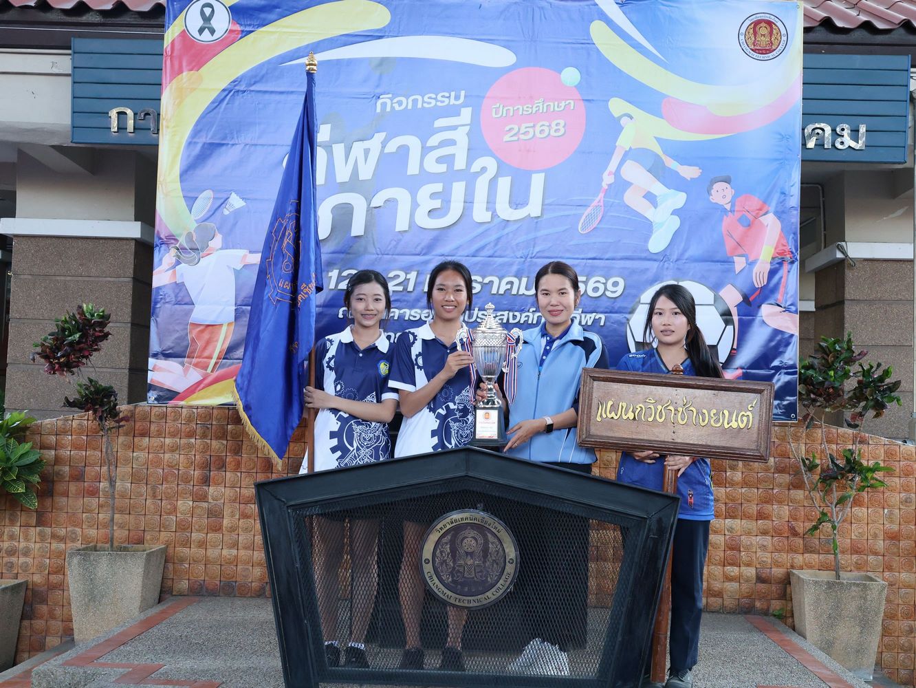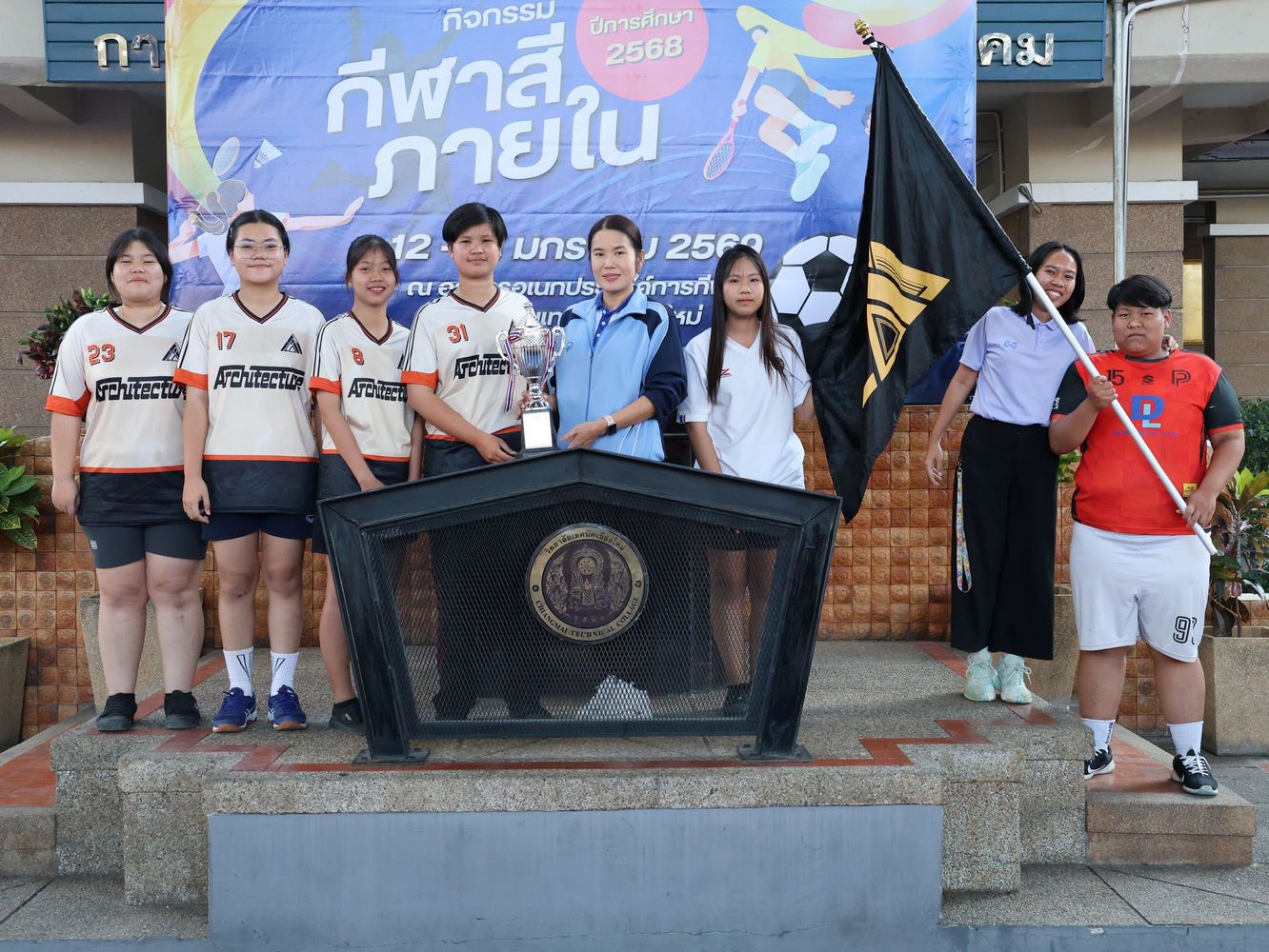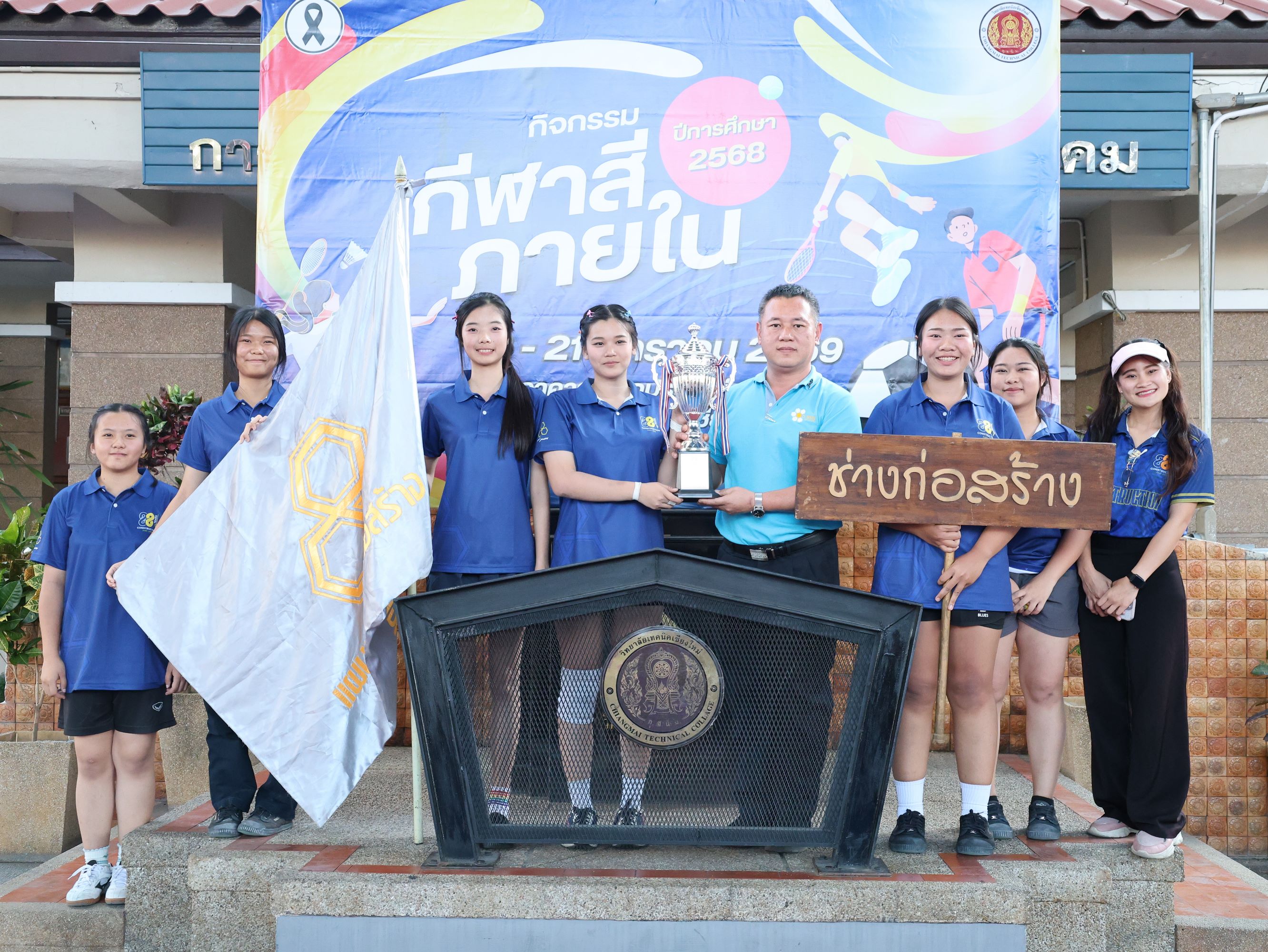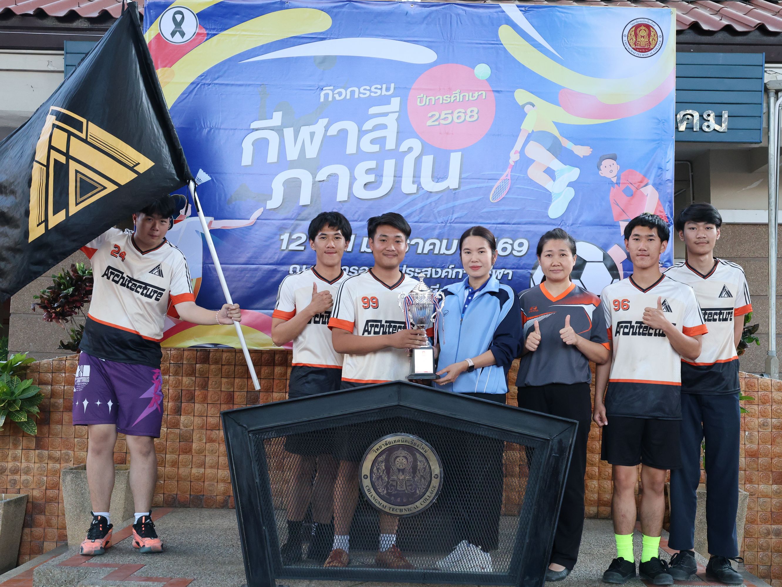ดร.วัชรพงศ์ ฝั้นติ๊บ ผู้อำนวยการวิทยาลัยเทคนิคเชียงใหม่ ปฏิบัติหน้าที่ผู้อำนวยการสำนักงานอาชีวศึกษาจังหวัดเชียงใหม่ และรักษาการในตำแหน่งที่ปรึกษาด้านนโยบายและแผน สำนักงานคณะกรรมการการอาชีวศึกษา มอบหมายให้ นายชรันต์ยุทธ์ บุญยง รองผู้อำนวยการฝ่ายบริหารทรัพยากร เป็นประธานในพิธีปิด การแข่งขันกีฬาสีภายใน ต้านยาเสพติด ประจำปีการศึกษา 2568 ของวิทยาลัยเทคนิคเชียงใหม่ โดยมีนายสุจินต์ วังใหม่ รองผู้อำนวยการ ฝ่ายพัฒนากิจการนักเรียน นักศึกษา และนางศศิกาญจน์ เรือนศาสตร์ รองผู้อำนวยการฝ่ายแผนงานและความร่วมมือ ร่วมมอบโล่รางวัล พร้อมด้วยคณะครู บุคลากรทางการศึกษา ตลอดจนนักเรียน นักศึกษา เข้าร่วมในพิธีอย่างพร้อมเพรียง ท่ามกลางบรรยากาศแห่งความคึกคัก สนุกสนาน และเปี่ยมไปด้วยพลังสามัคคี ณ อาคารอเนกประสงค์การกีฬา วิทยาลัยเทคนิคเชียงใหม่