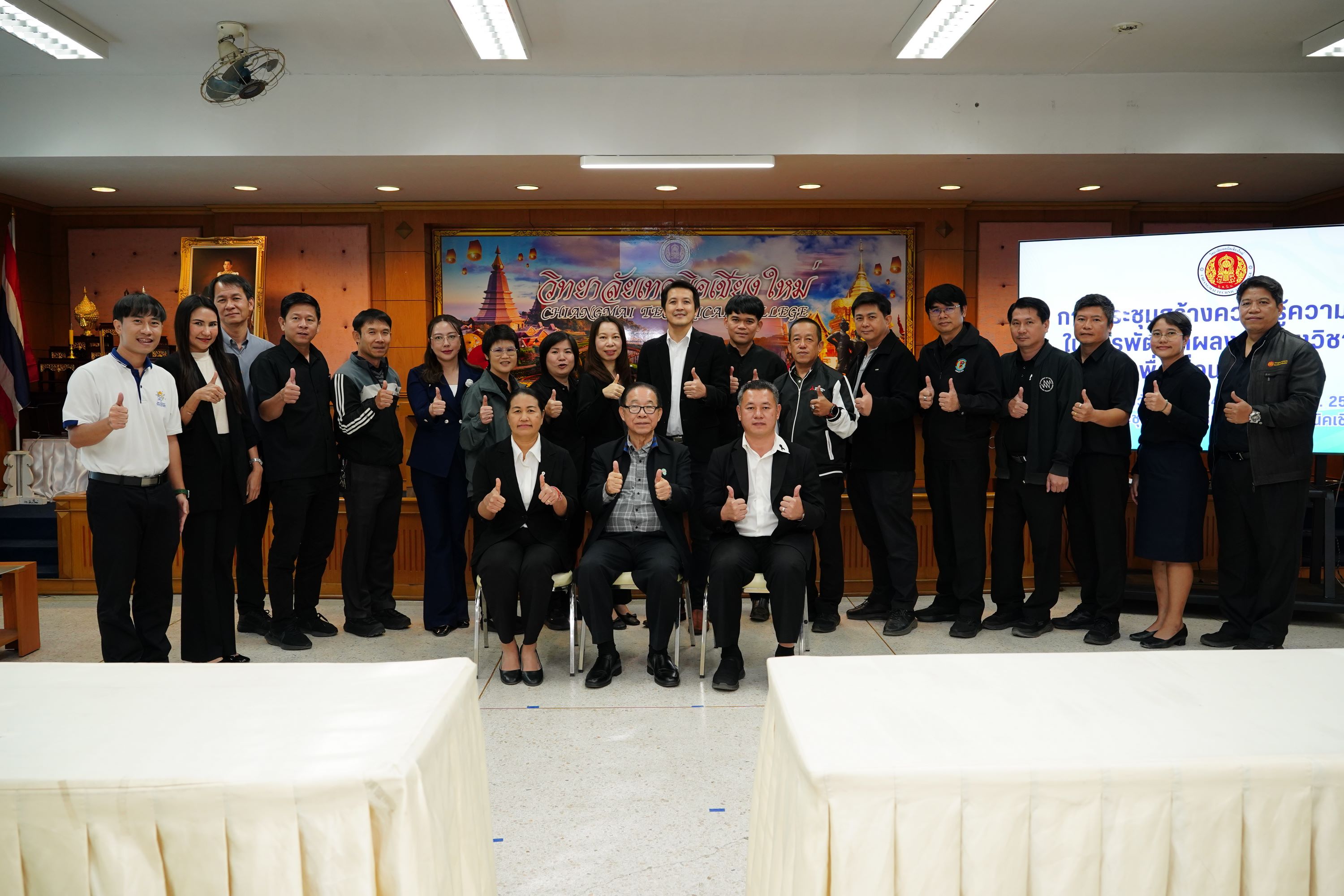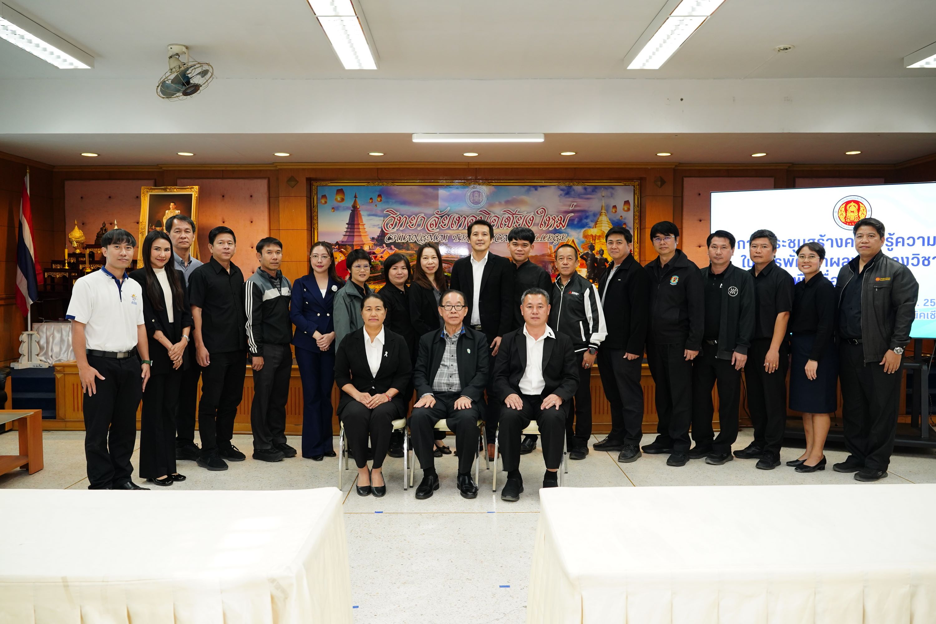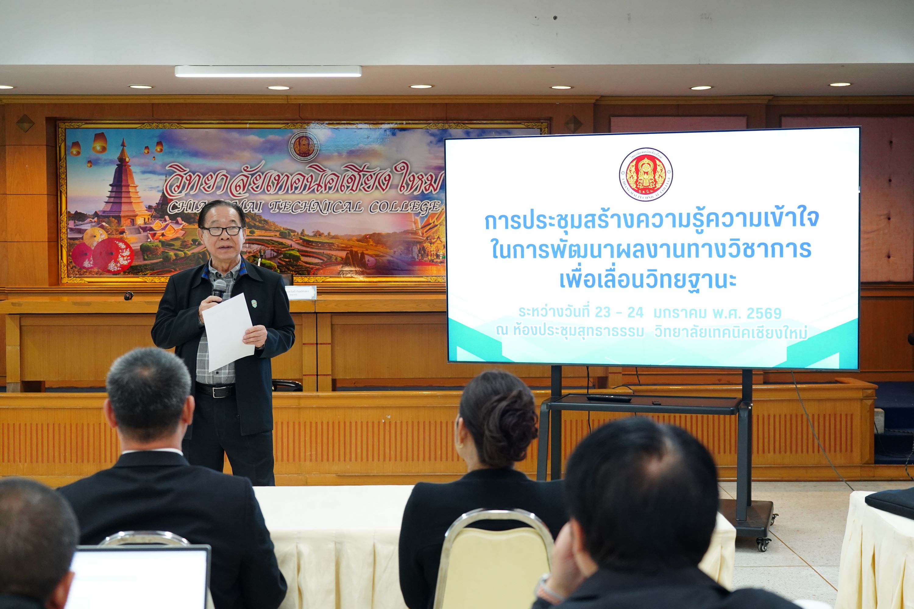 วิทยาลัยเทคนิคเชียงใหม่ จัดการประชุมสร้างความรู้ความเข้าใจในการพัฒนาผลงานทางวิชาการเพื่อเลื่อนวิทยฐานะ นำโดย ดร.วัชรพงศ์ ฝั้นติ๊บ ผู้อำนวยการวิทยาลัยเทคนิคเชียงใหม่ ปฏิบัติหน้าที่ผู้อำนวยการสำนักงานอาชีวศึกษาจังหวัดเชียงใหม่ และรักษาการในตำแหน่งที่ปรึกษาด้านนโยบายและแผน สำนักงานคณะกรรมการการอาชีวศึกษา พร้อมด้วยคณะผู้บริหาร และคณะครู ที่เกี่ยวข้อง เข้าร่วมการประชุมอย่างพร้อมเพรียง เพื่อเสริมสร้างองค์ความรู้ ความเข้าใจ และแนวทางการจัดทำผลงานทางวิชาการให้มีคุณภาพและได้มาตรฐาน