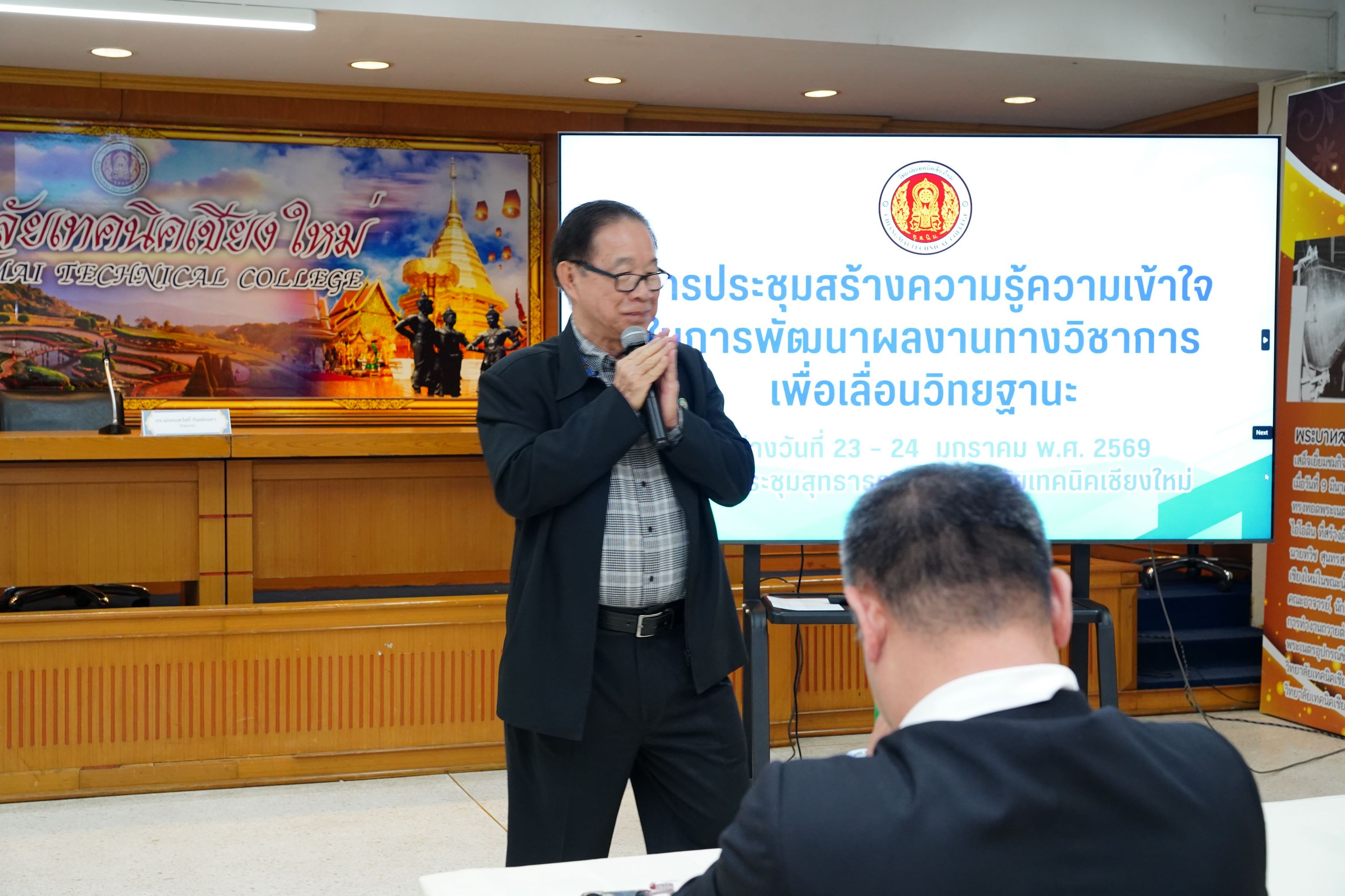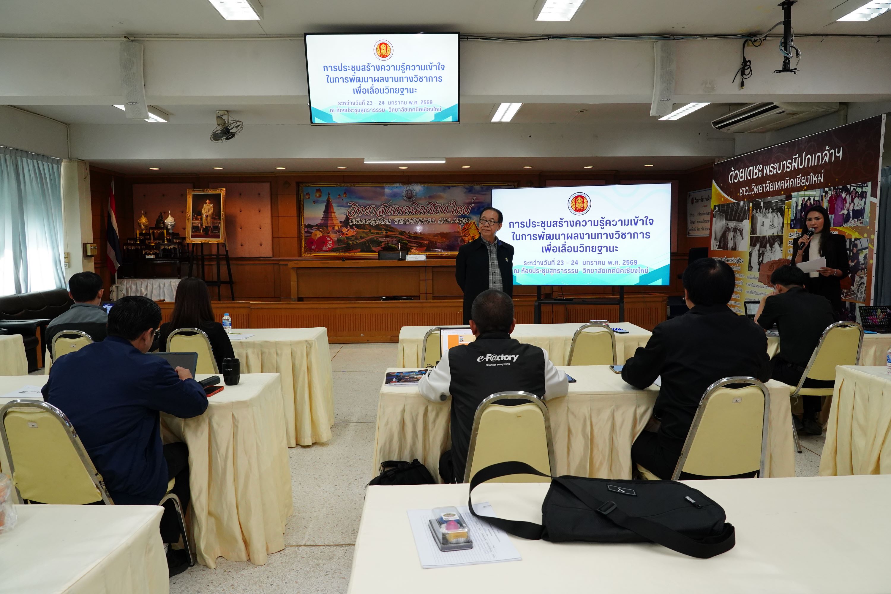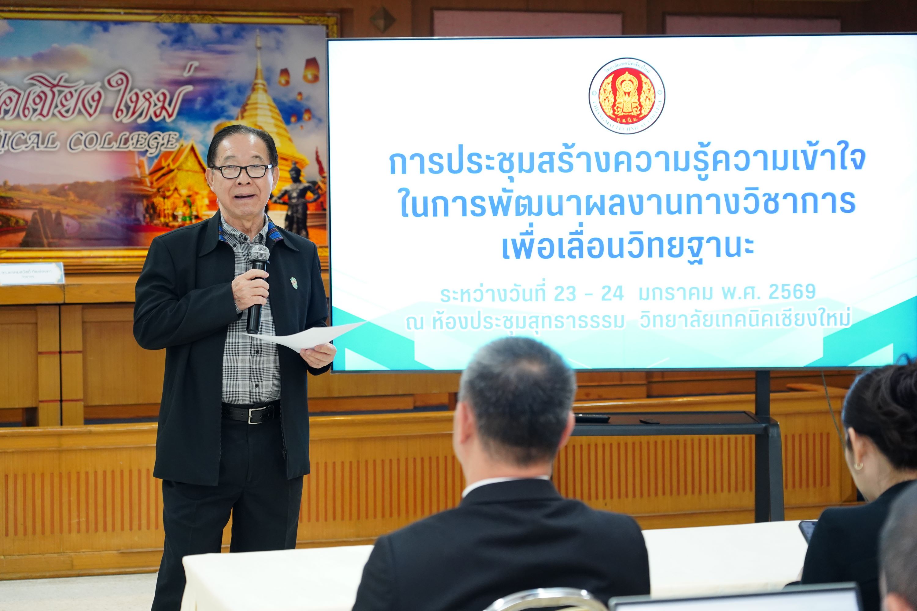วิทยาลัยเทคนิคเชียงใหม่ จัดการประชุมสร้างความรู้ความเข้าใจในการพัฒนาผลงานทางวิชาการเพื่อเลื่อนวิทยฐานะ นำโดย ดร.วัชรพงศ์ ฝั้นติ๊บ ผู้อำนวยการวิทยาลัยเทคนิคเชียงใหม่ ปฏิบัติหน้าที่ผู้อำนวยการสำนักงานอาชีวศึกษาจังหวัดเชียงใหม่ และรักษาการในตำแหน่งที่ปรึกษาด้านนโยบายและแผน สำนักงานคณะกรรมการการอาชีวศึกษา พร้อมด้วยคณะผู้บริหาร และคณะครู ที่เกี่ยวข้อง เข้าร่วมการประชุมอย่างพร้อมเพรียง เพื่อเสริมสร้างองค์ความรู้ ความเข้าใจ และแนวทางการจัดทำผลงานทางวิชาการให้มีคุณภาพและได้มาตรฐาน